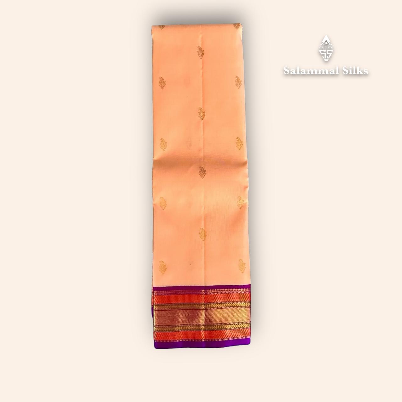 Salammal is known for its handloom sarees. In some sarees, there is cross-weaving between the body and the pallu, which is a sign of pure handloom sarees. This can be seen in Kanchipuram embossed sarees.