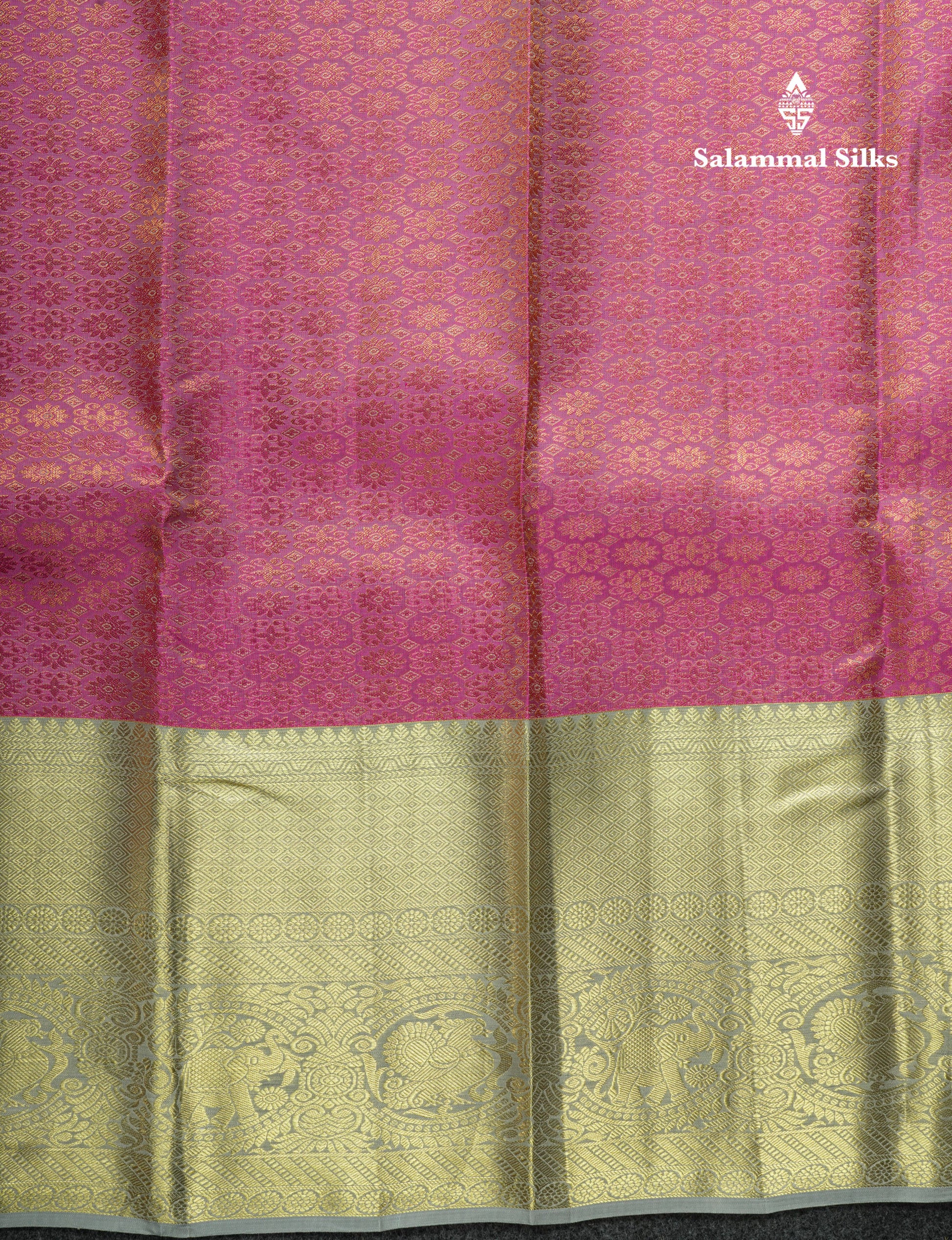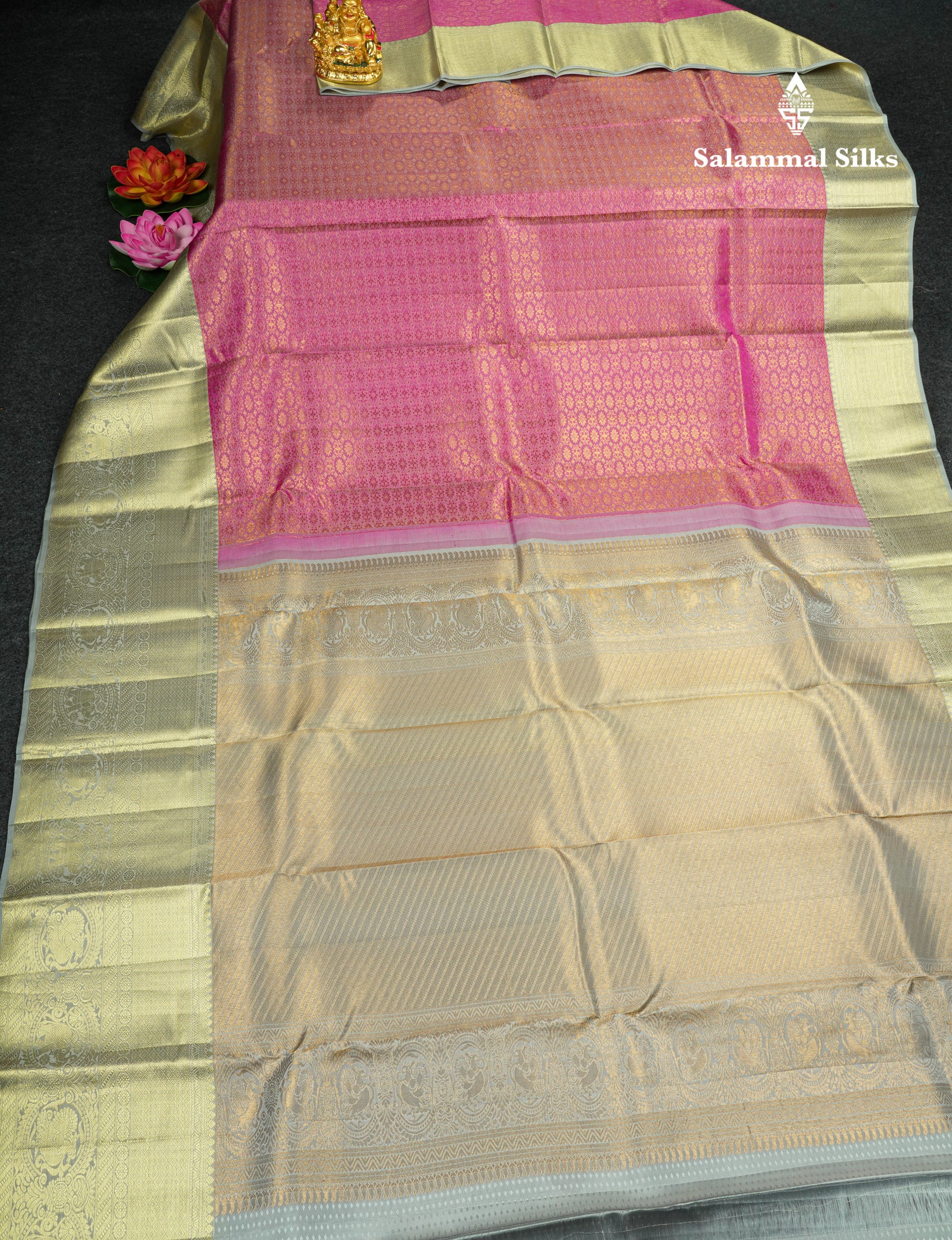 Light Pink Bridal Pure Kanjivaram Silk Saree With Contrast Grey Border