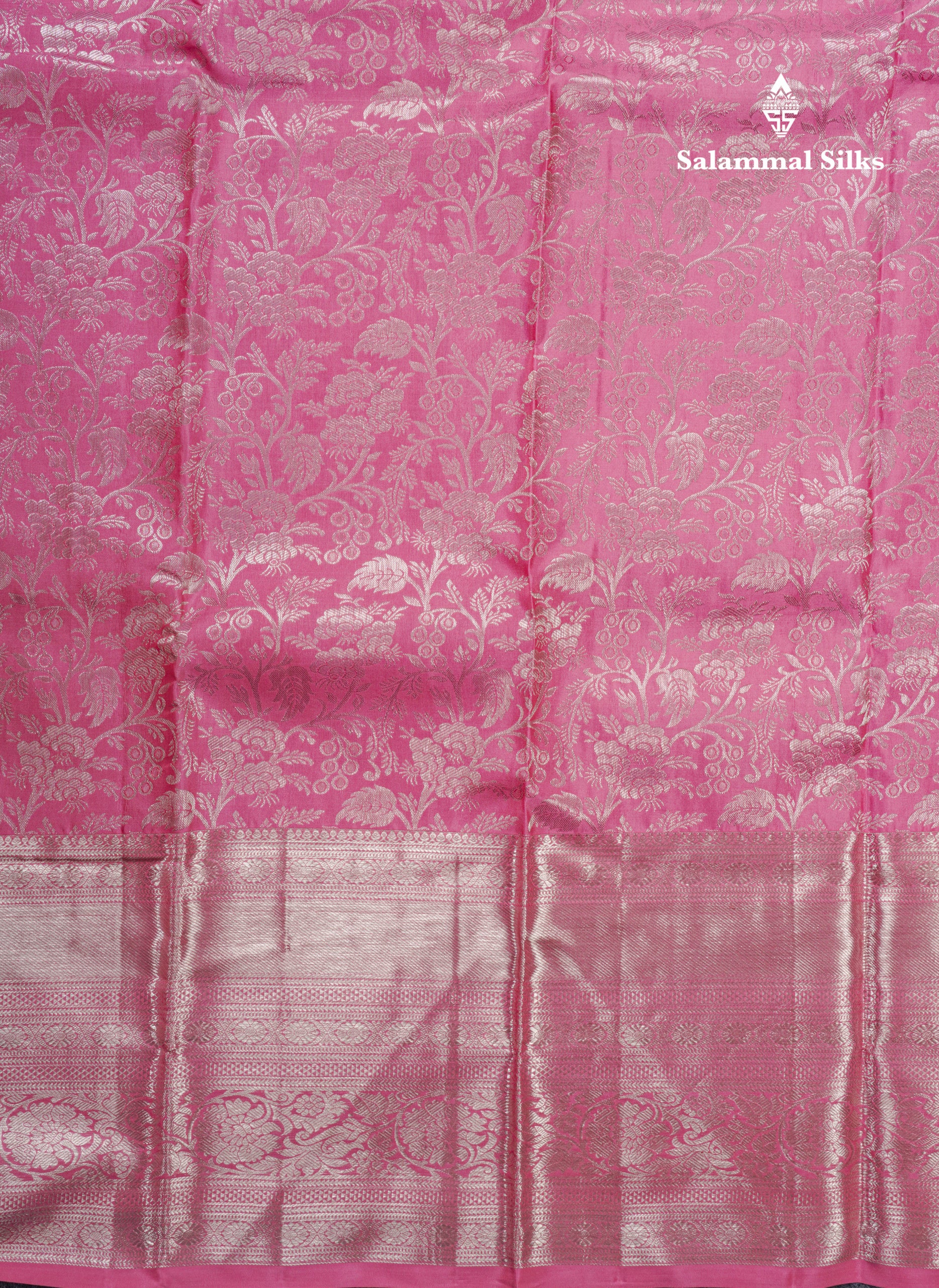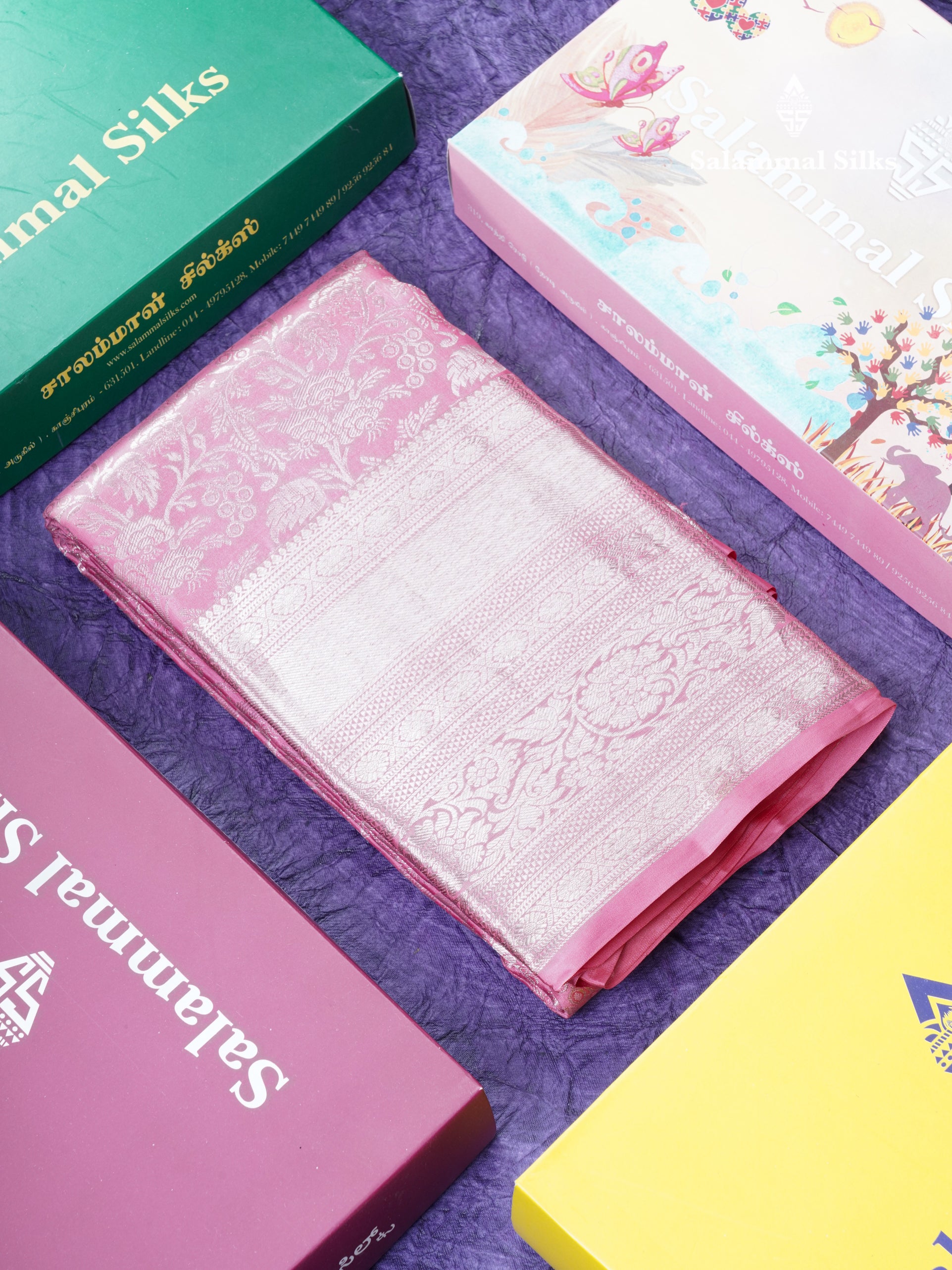 Light Pink Grand Beautiful Bridal Pure Kanjivaram Silk Saree With Silver Zari Evening Morning Border