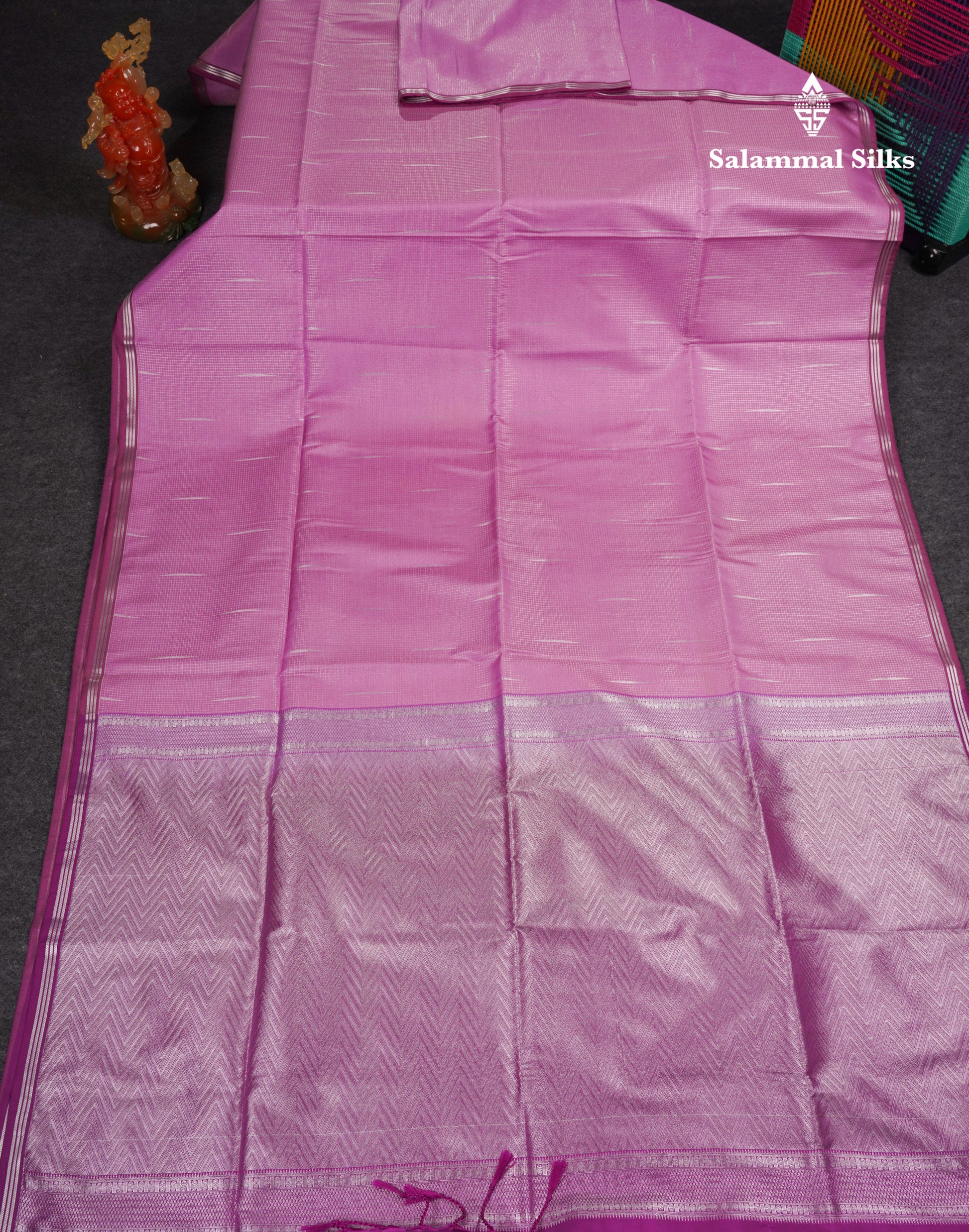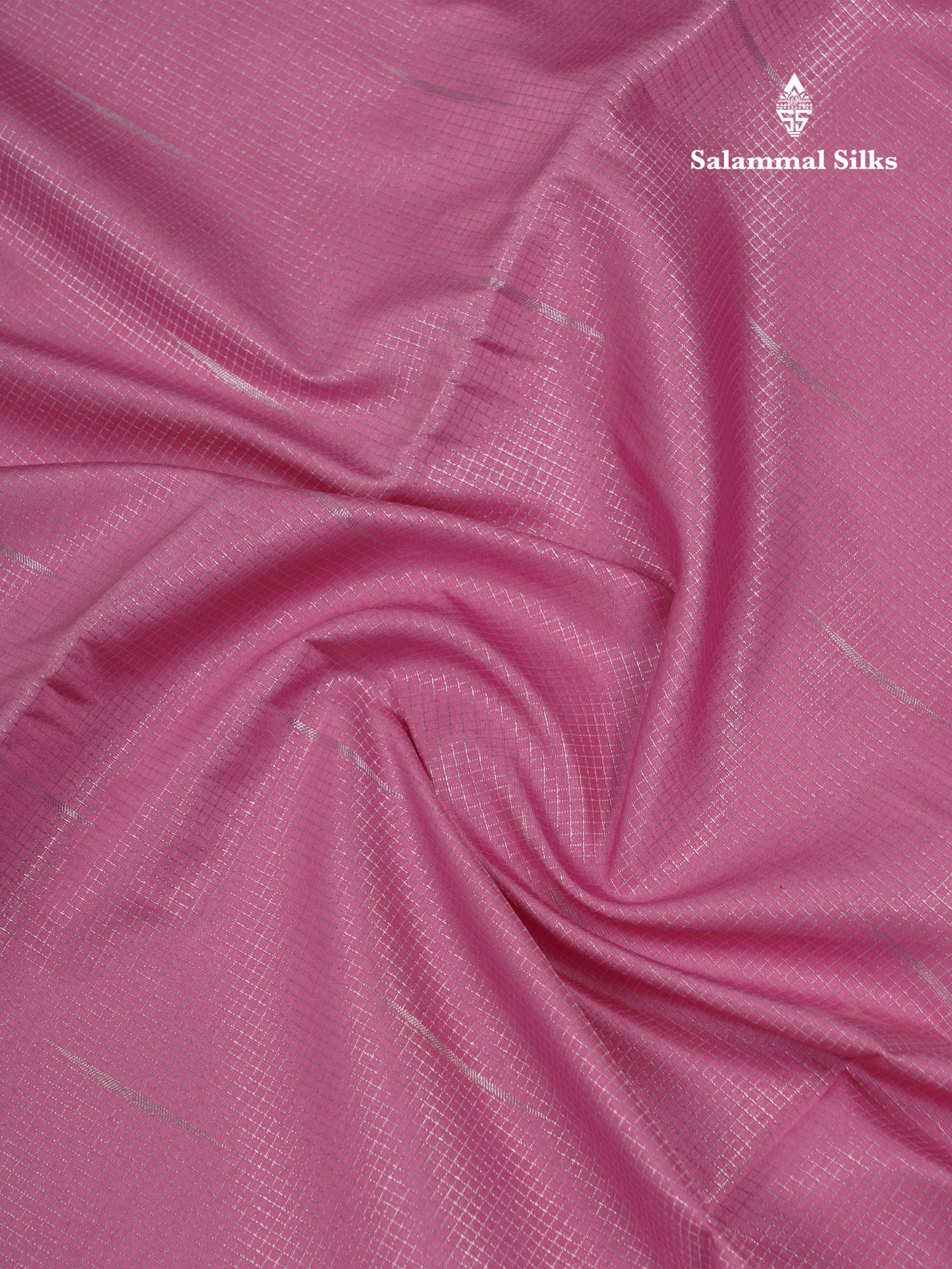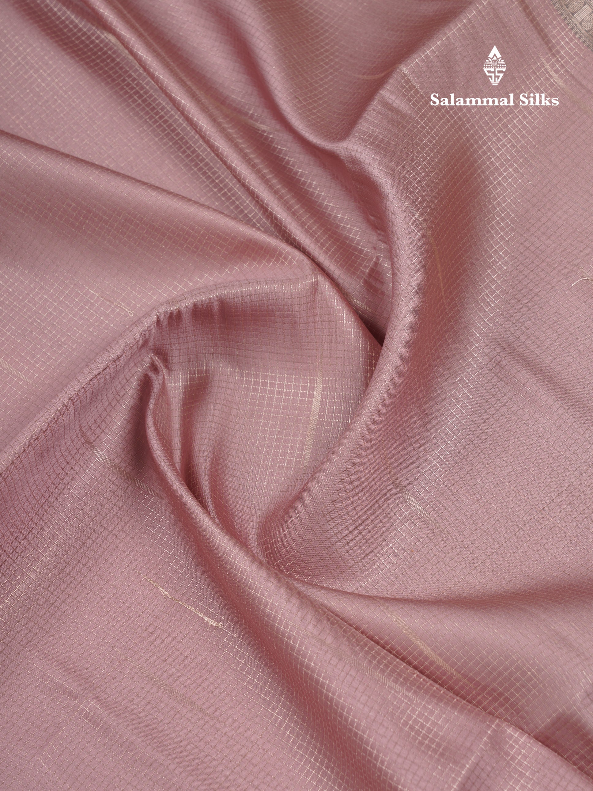 Light Pink Tiny Zari Checks With Malli Moggu Butta Semi Soft Silk Saree With Contrast Small Purple Border