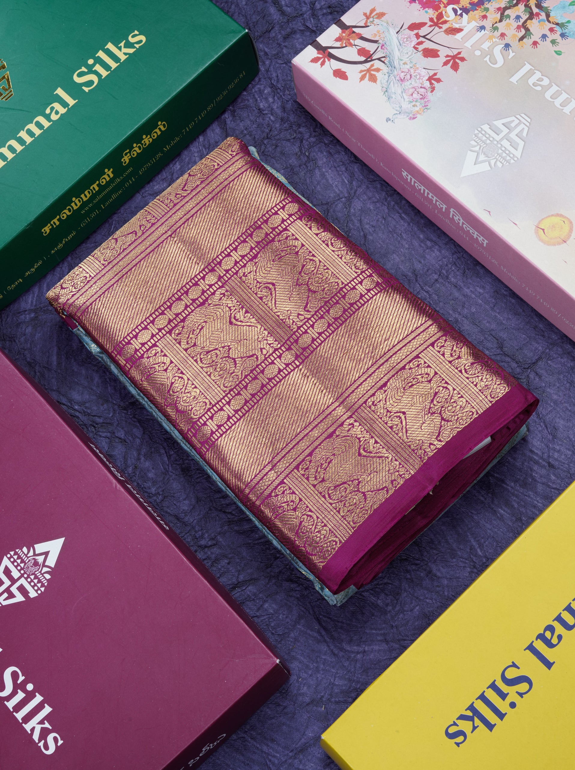 Light Ramar Blue Bridal Pure Kanjivaram Silk Saree 2G Zari With Magenta Traditional Long Border