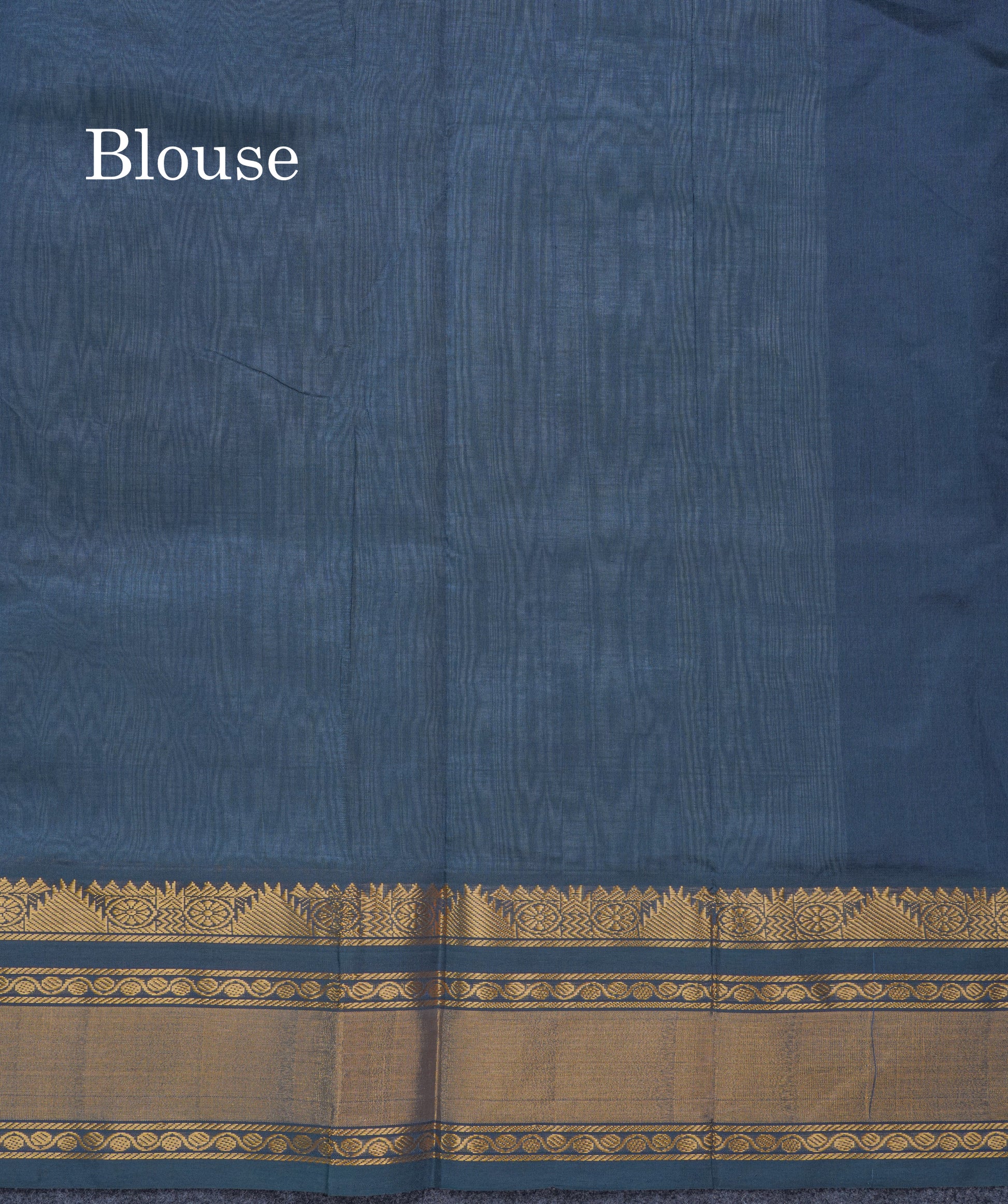 Light Rexona Checks Semi Silk Cotton Saree With Contrast Blue Shade Traditional Border