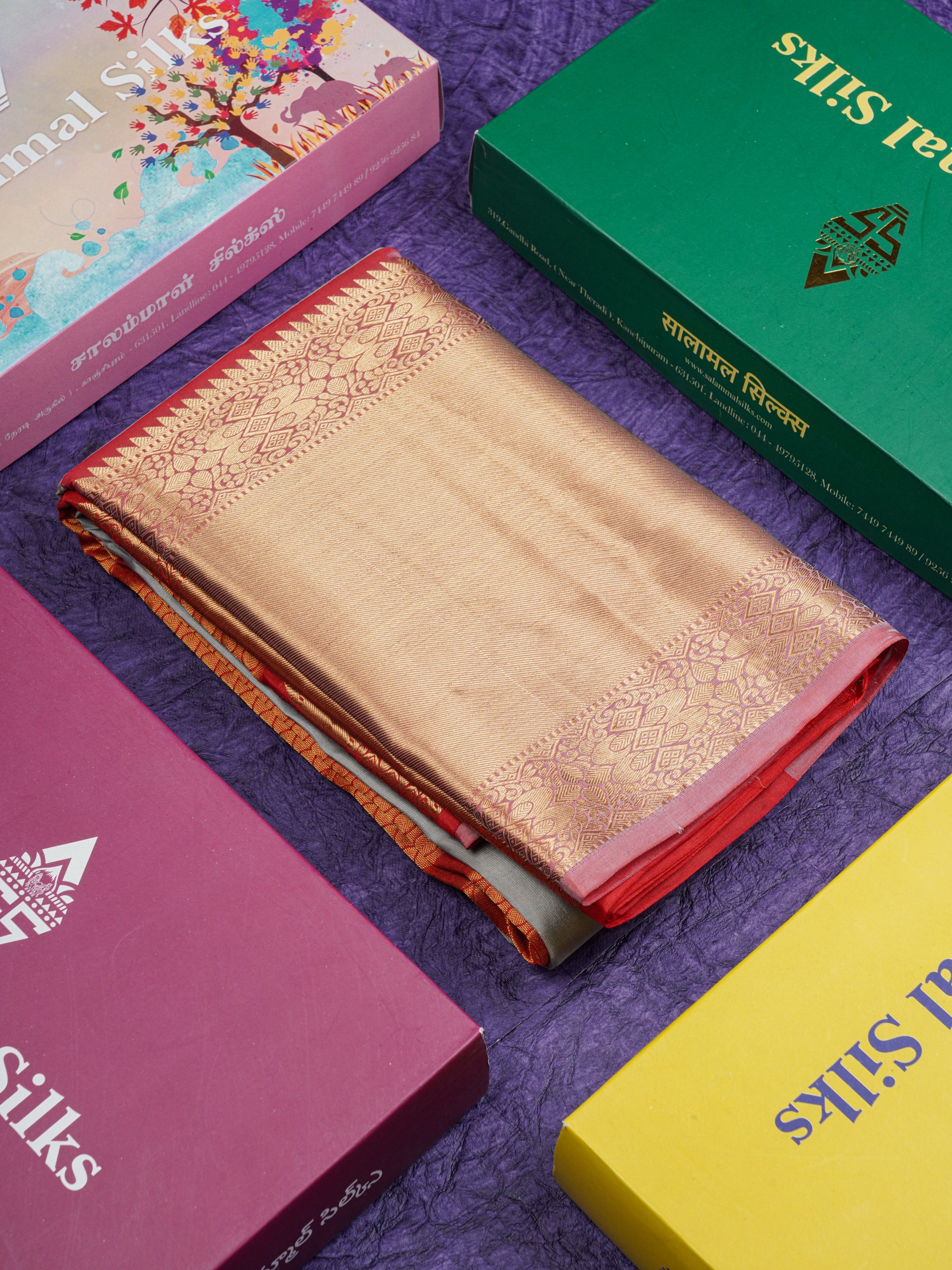 Light Rexona Pure Kanjivaram Silk Saree With Contrast Chilly Red Blouse