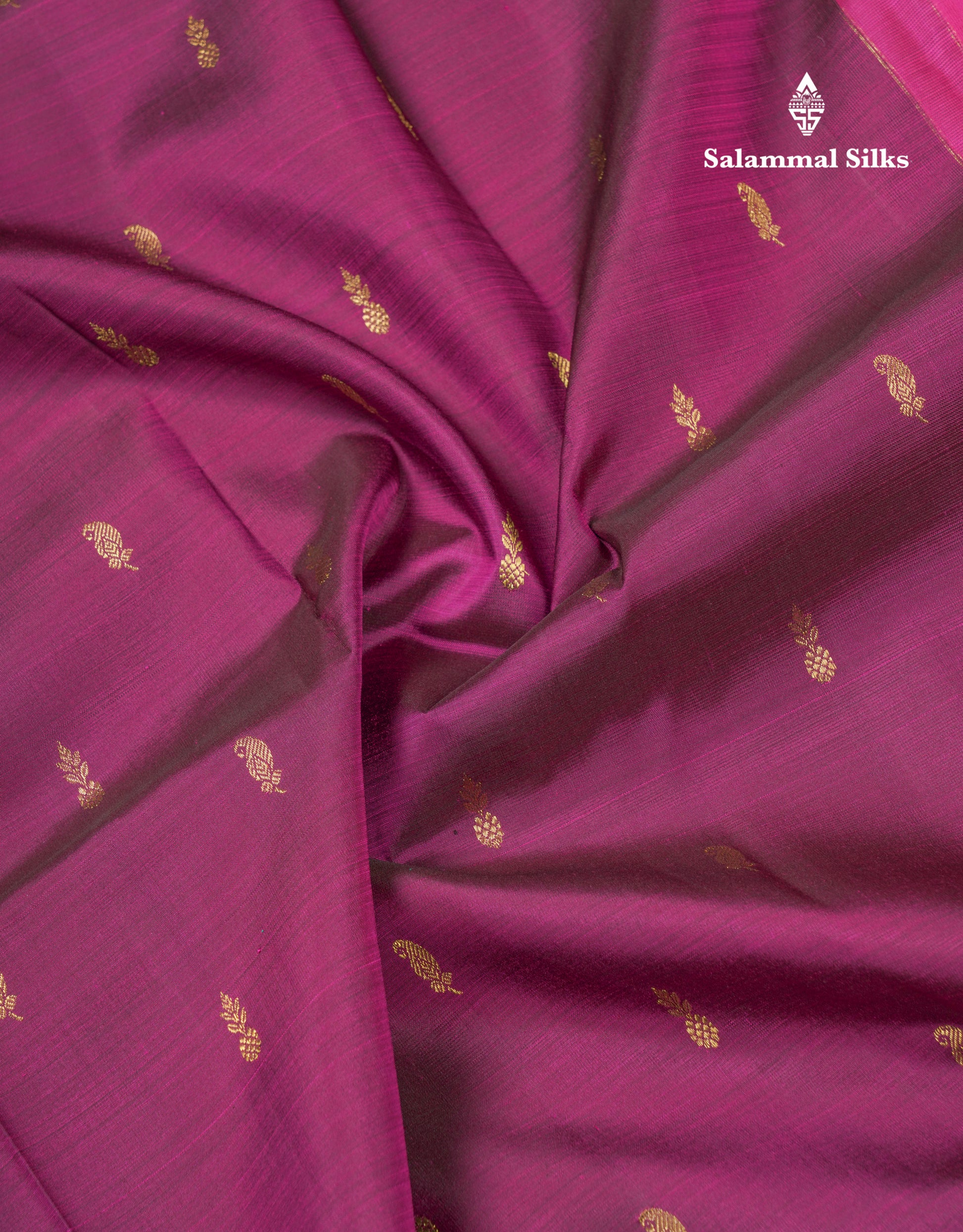 Salammal is known for its handloom sarees. In some sarees, there is cross-weaving between the body and the pallu, which is a sign of pure handloom sarees. This can be seen in Kanchipuram embossed sarees.