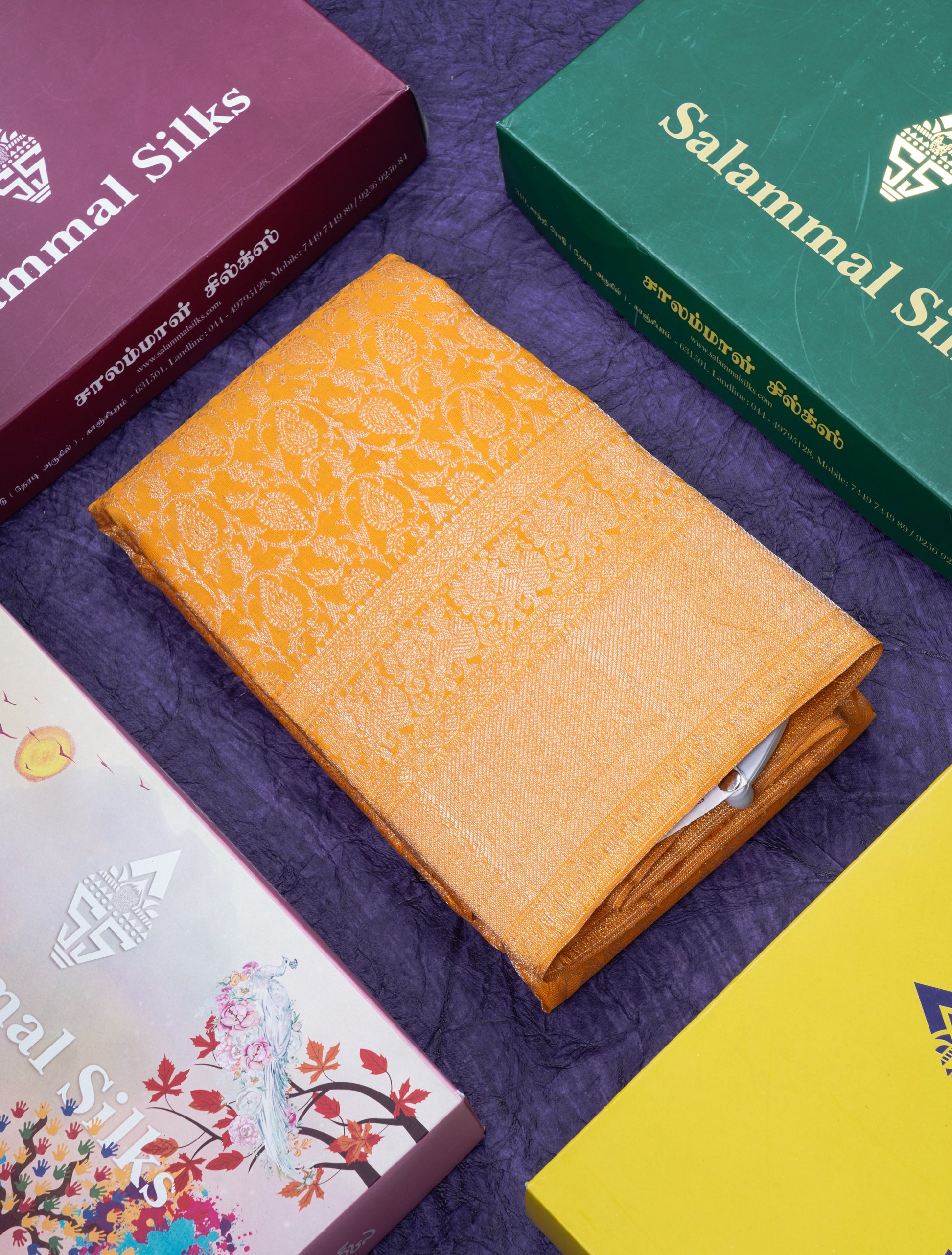 Mango Yellow Bridal Pure Kanjivaram Silk Saree With Self Border