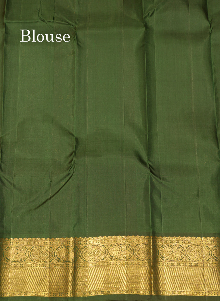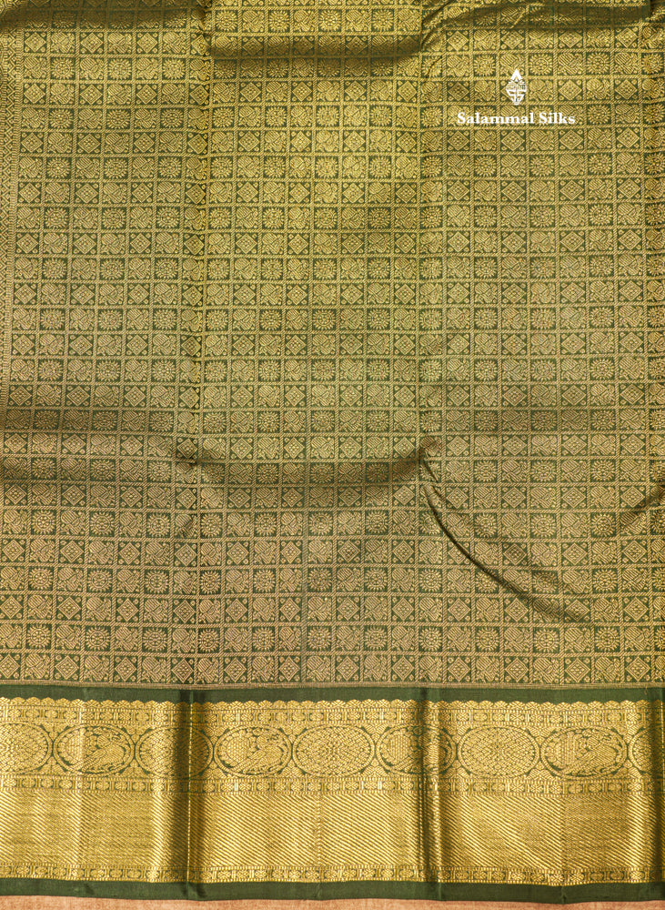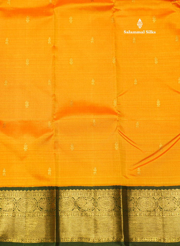 Korvai Mango Yellow Pure Kanjivaram Silk Saree With Contrast Bottle Green Border