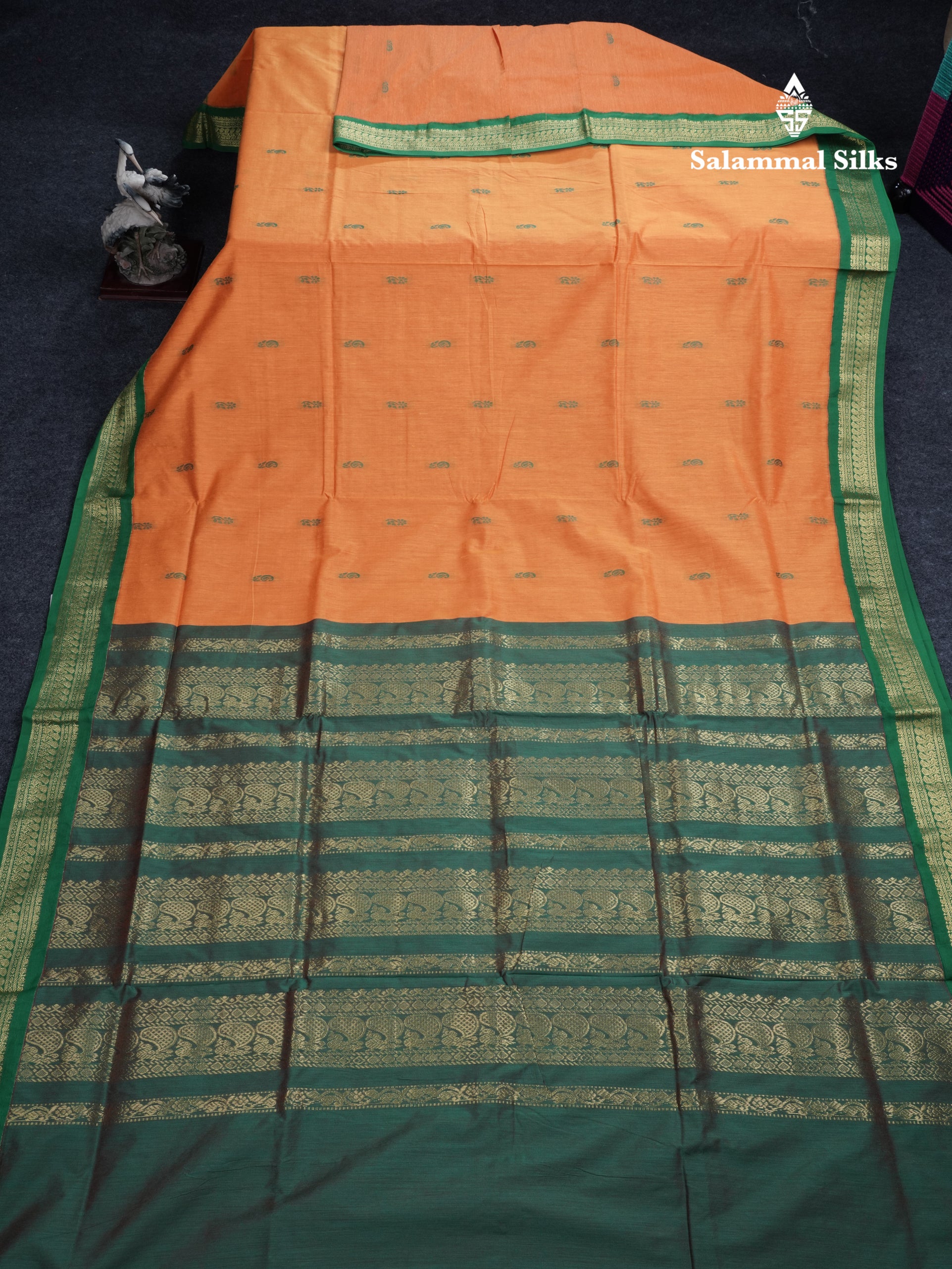 Mango Yellow Kalyani Cotton Saree With Contrast Green Border