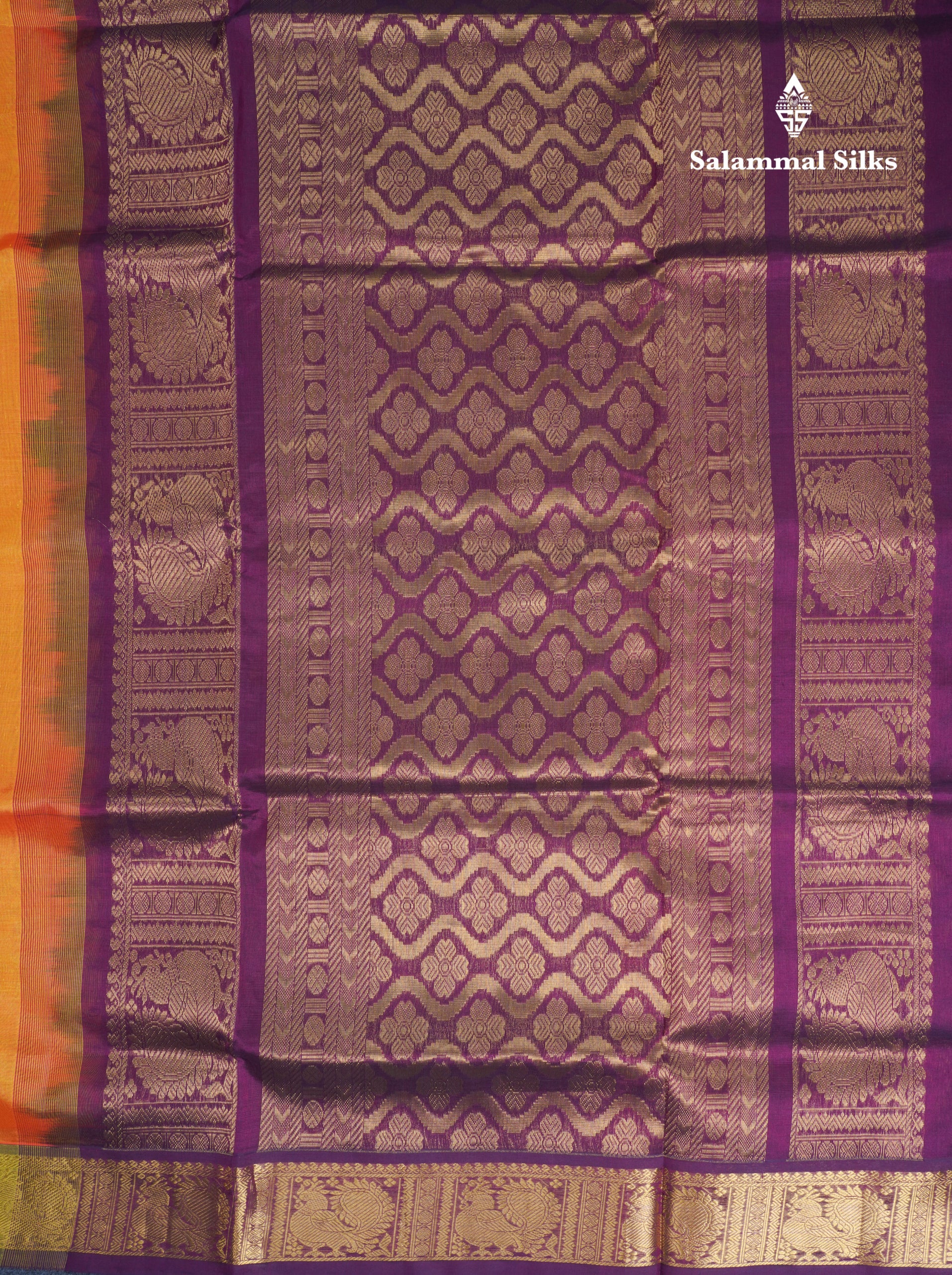 Salammal is known for its handloom sarees. In some sarees, there is cross-weaving between the body and the pallu, which is a sign of pure handloom sarees. This can be seen in Kanchipuram embossed sarees.