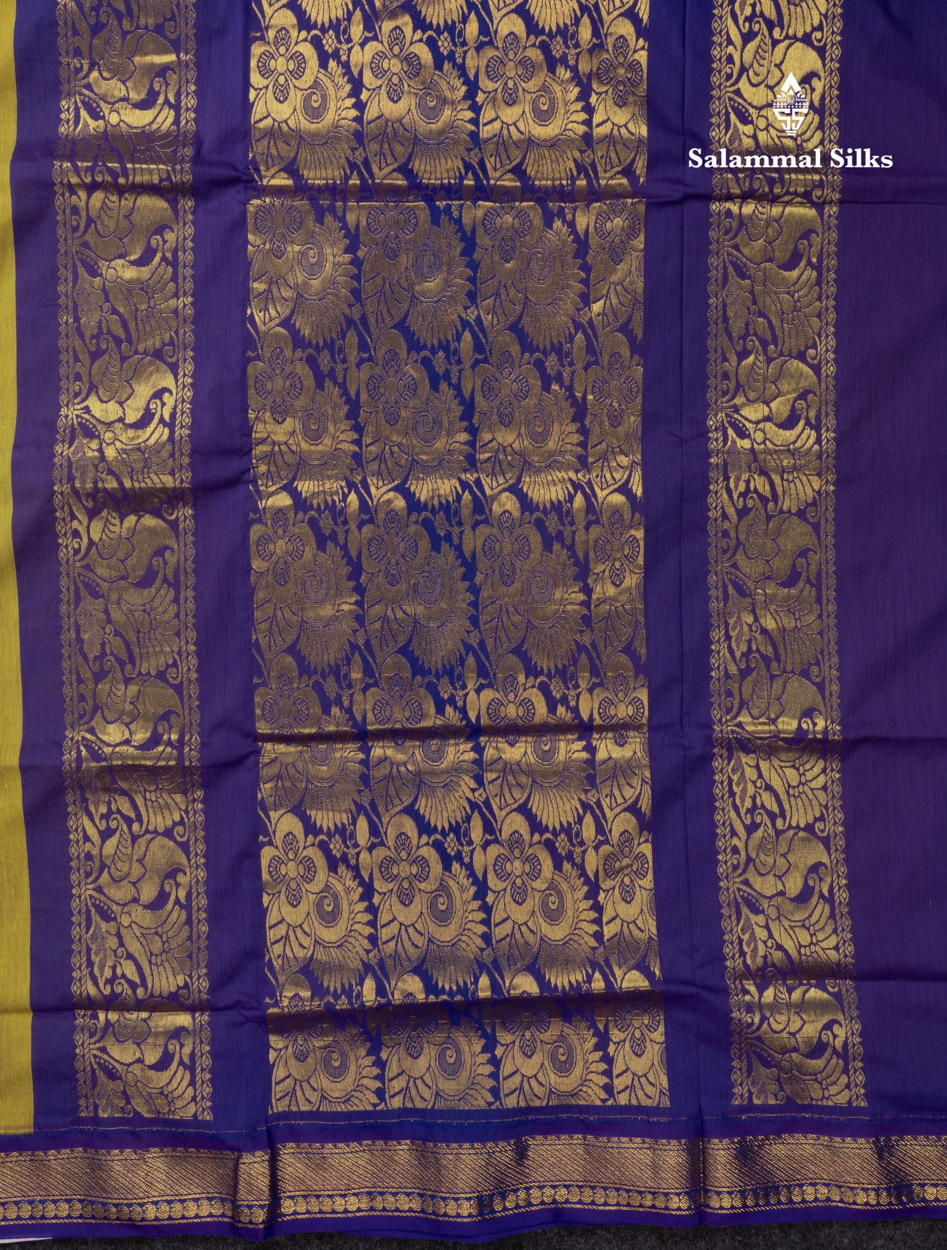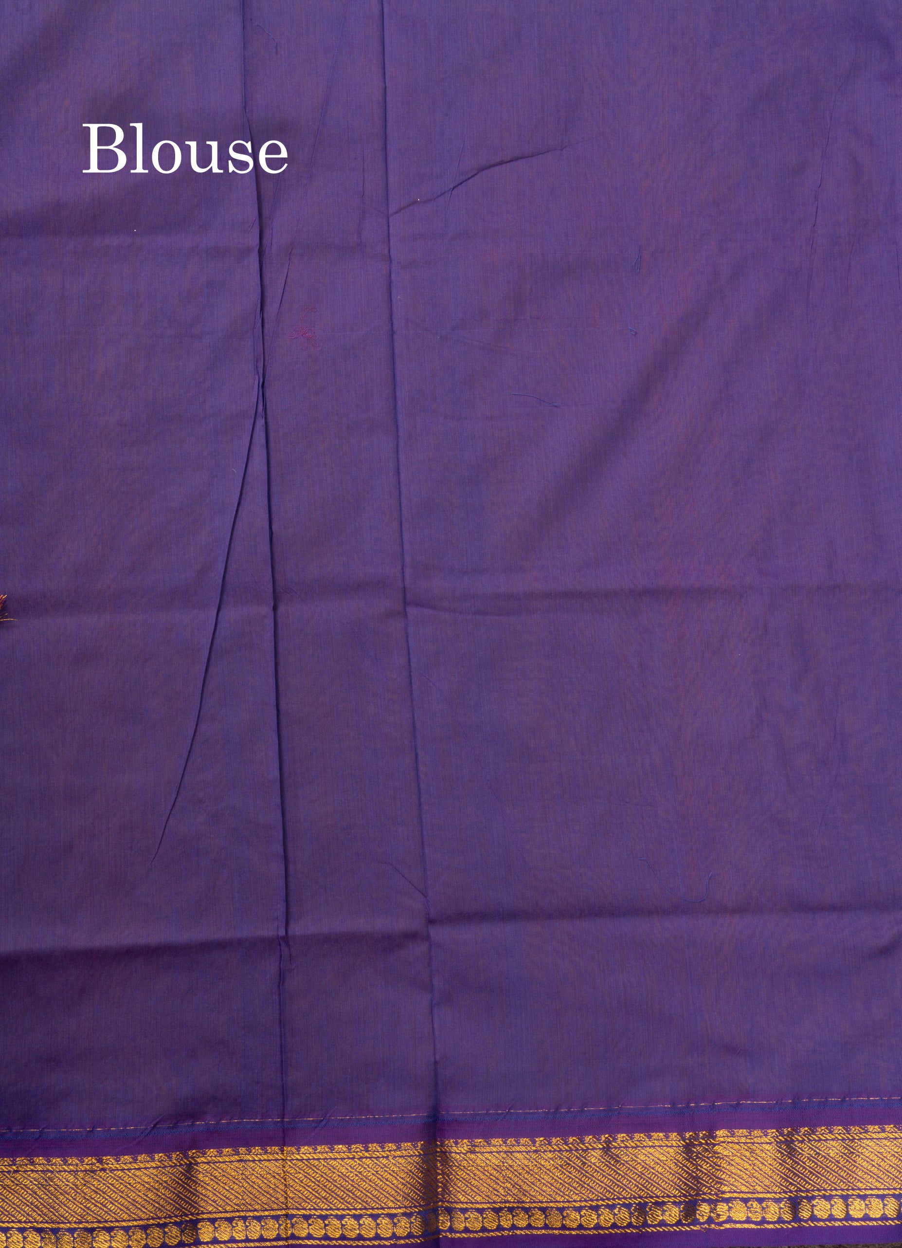 Manthulir Green Kalyani Cotton Saree With Contrast Violet Border