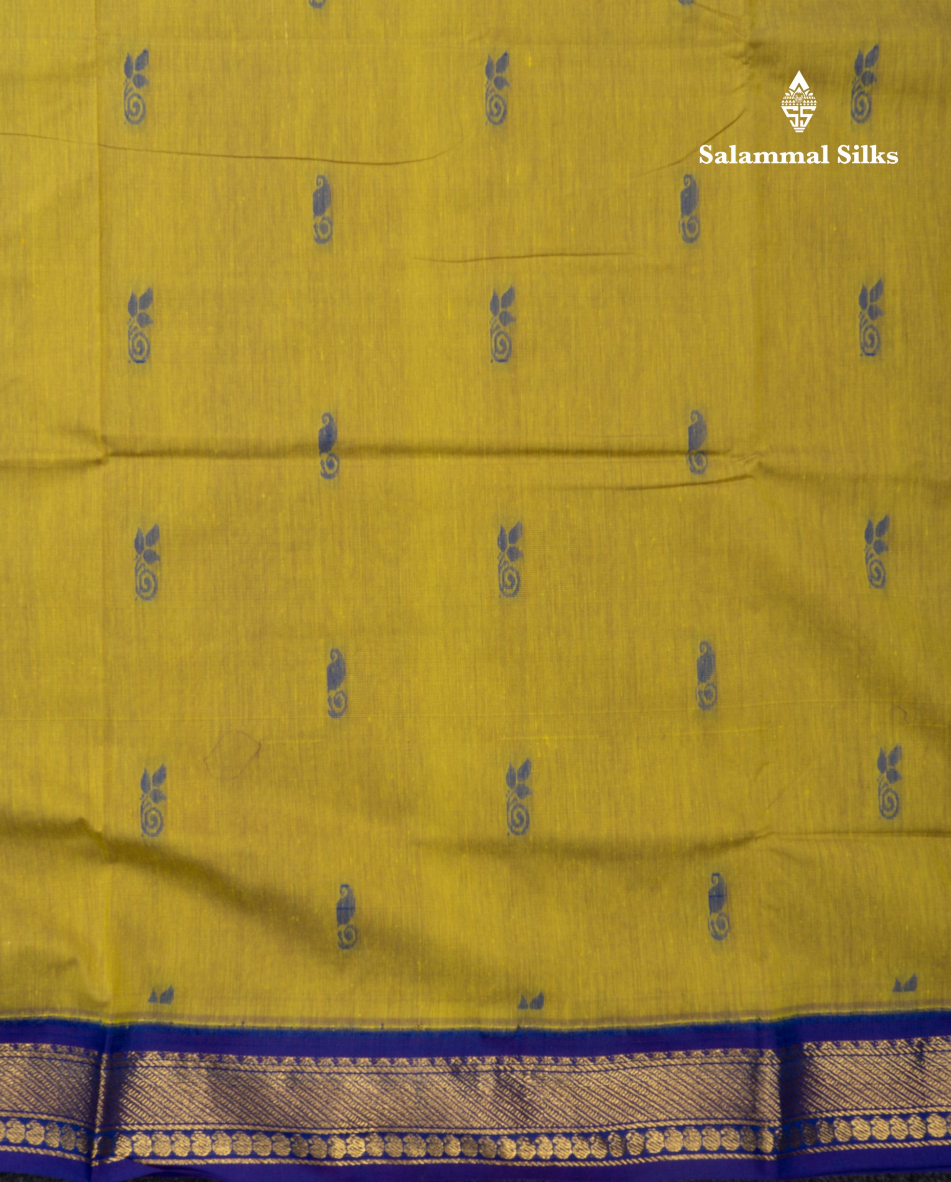 Salammal is known for its handloom sarees. In some sarees, there is cross-weaving between the body and the pallu, which is a sign of pure handloom sarees. This can be seen in Kanchipuram embossed sarees.