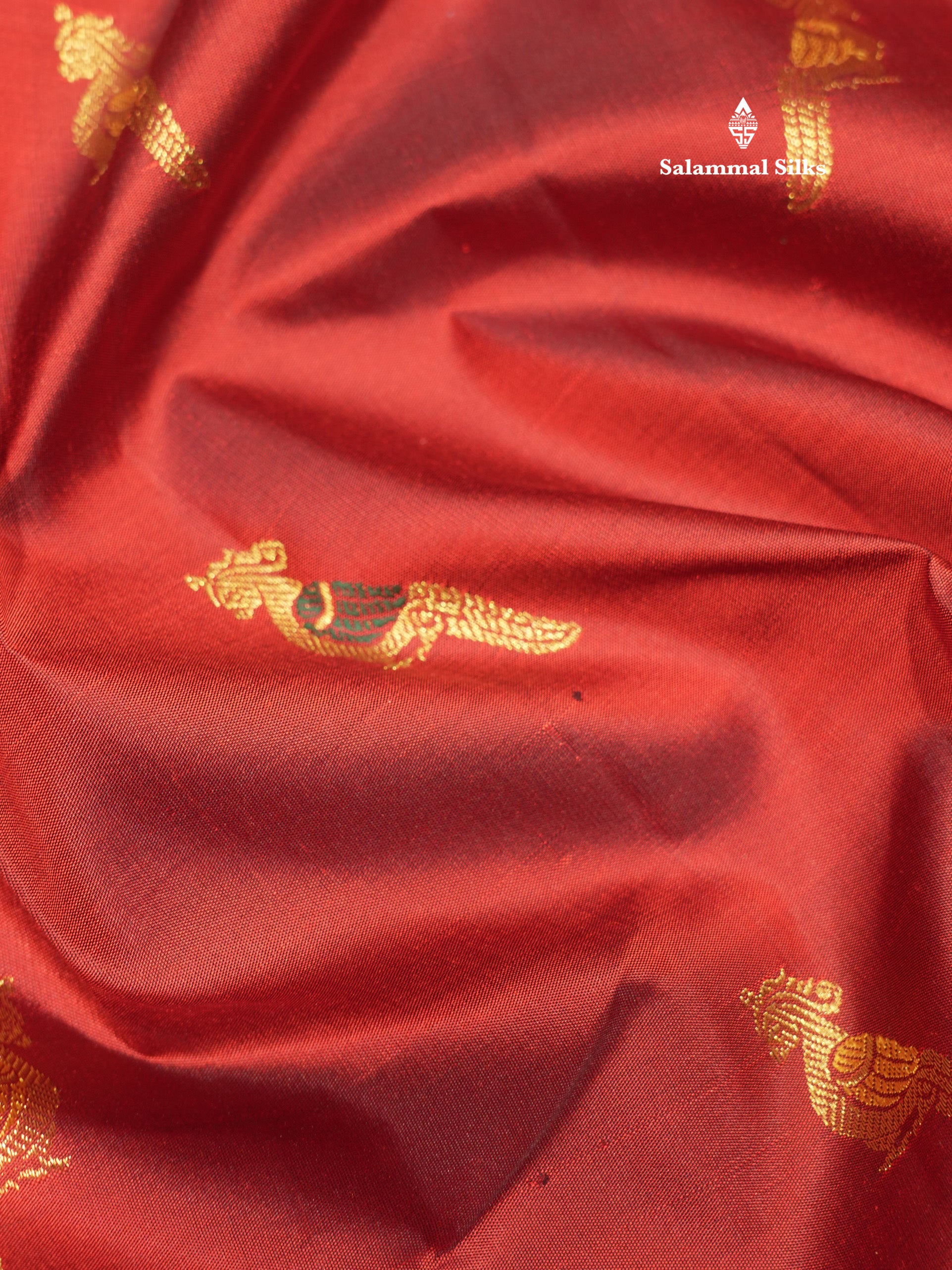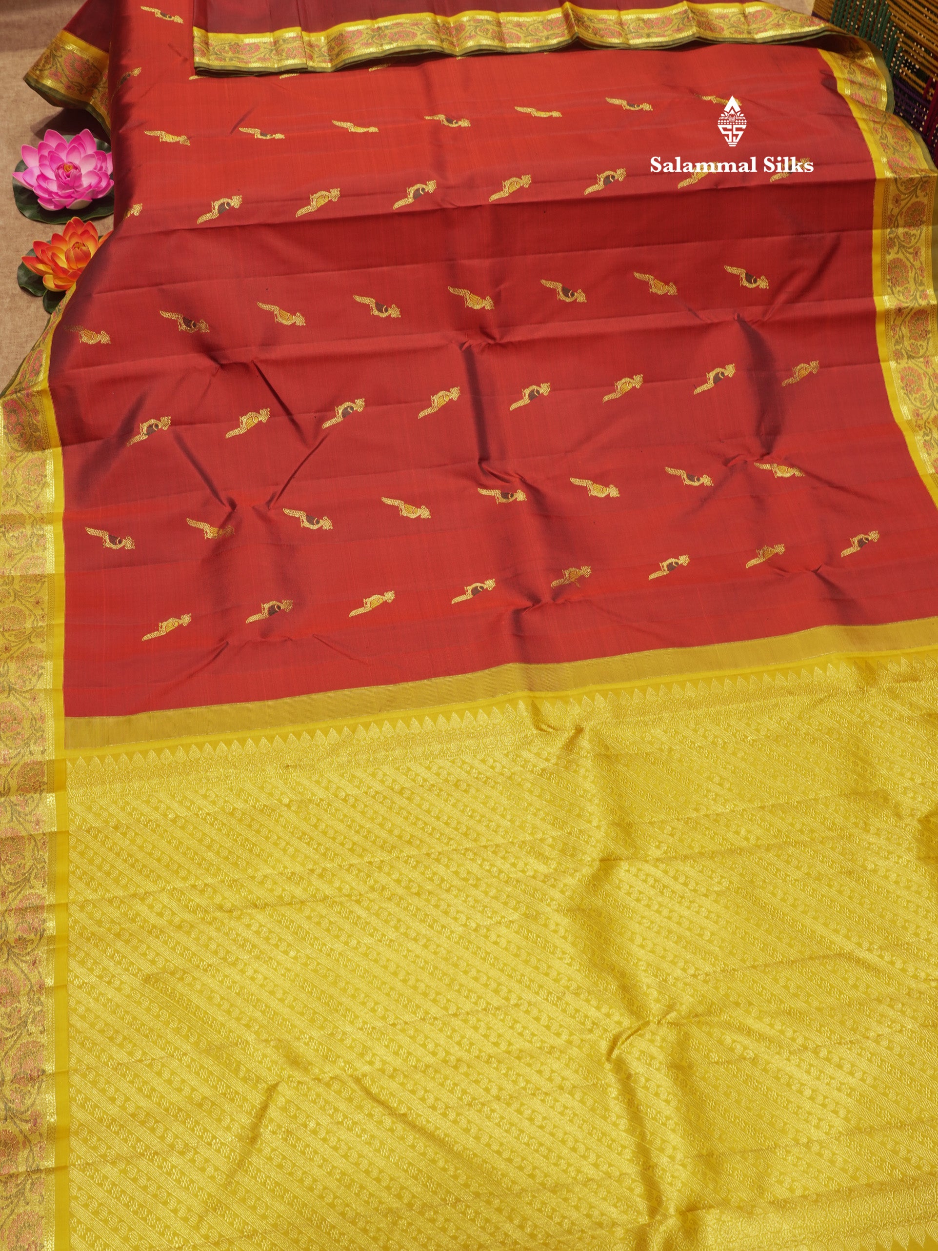 Maroon Colour Pure Kanjivaram Silk Saree With Contrast Mustard Yellow Small Border