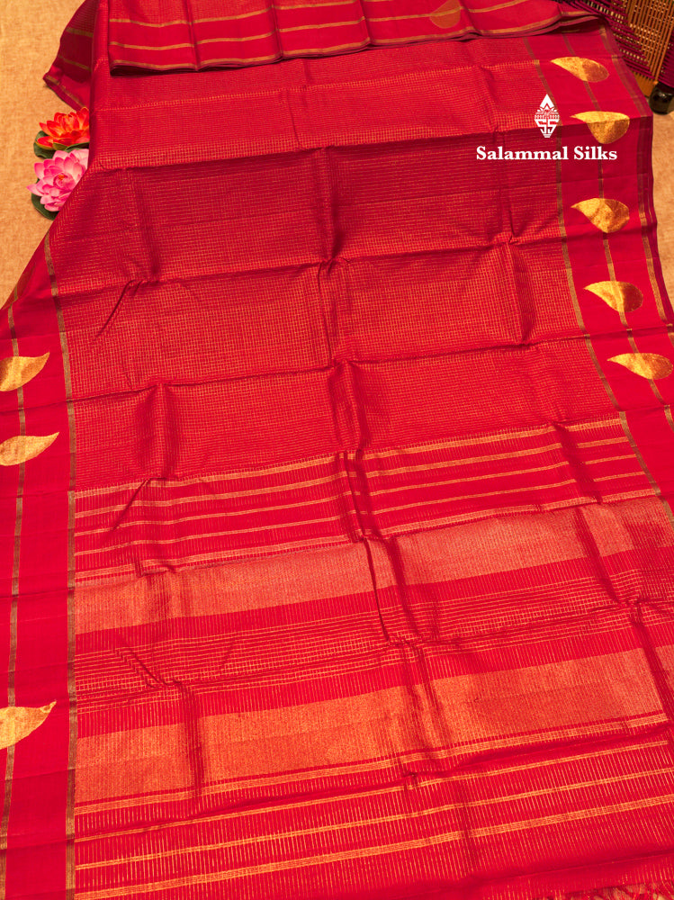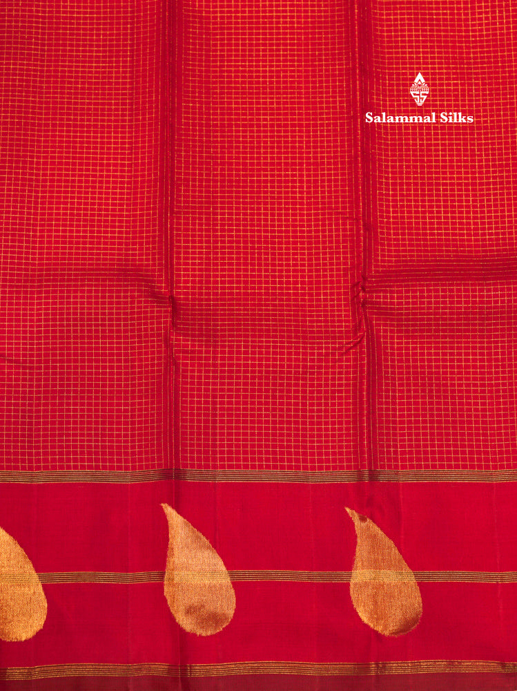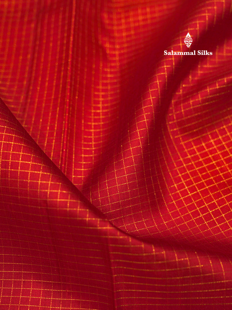 Maroon Colour Small Checks 8 Kol Pure Kanjivaram Silk Saree With Gold Zari Border