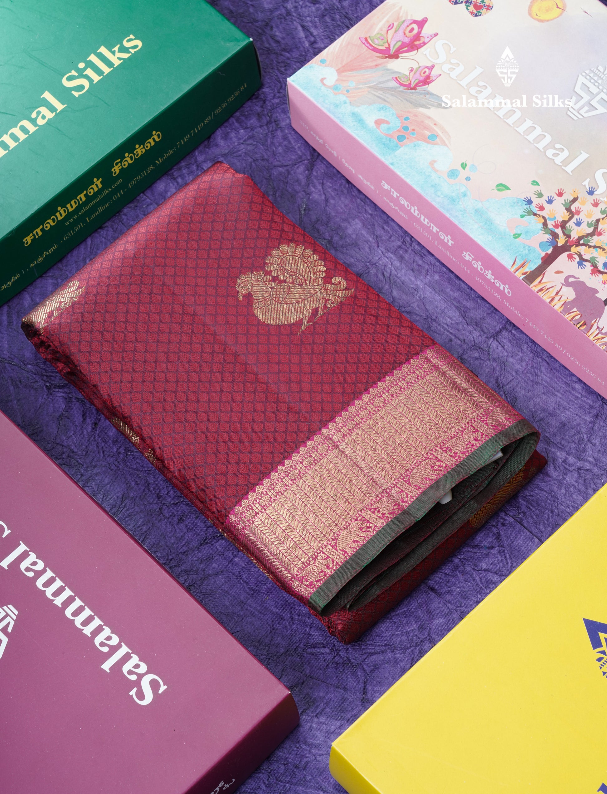 Salammal is known for its handloom sarees. In some sarees, there is cross-weaving between the body and the pallu, which is a sign of pure handloom sarees. This can be seen in Kanchipuram embossed sarees.