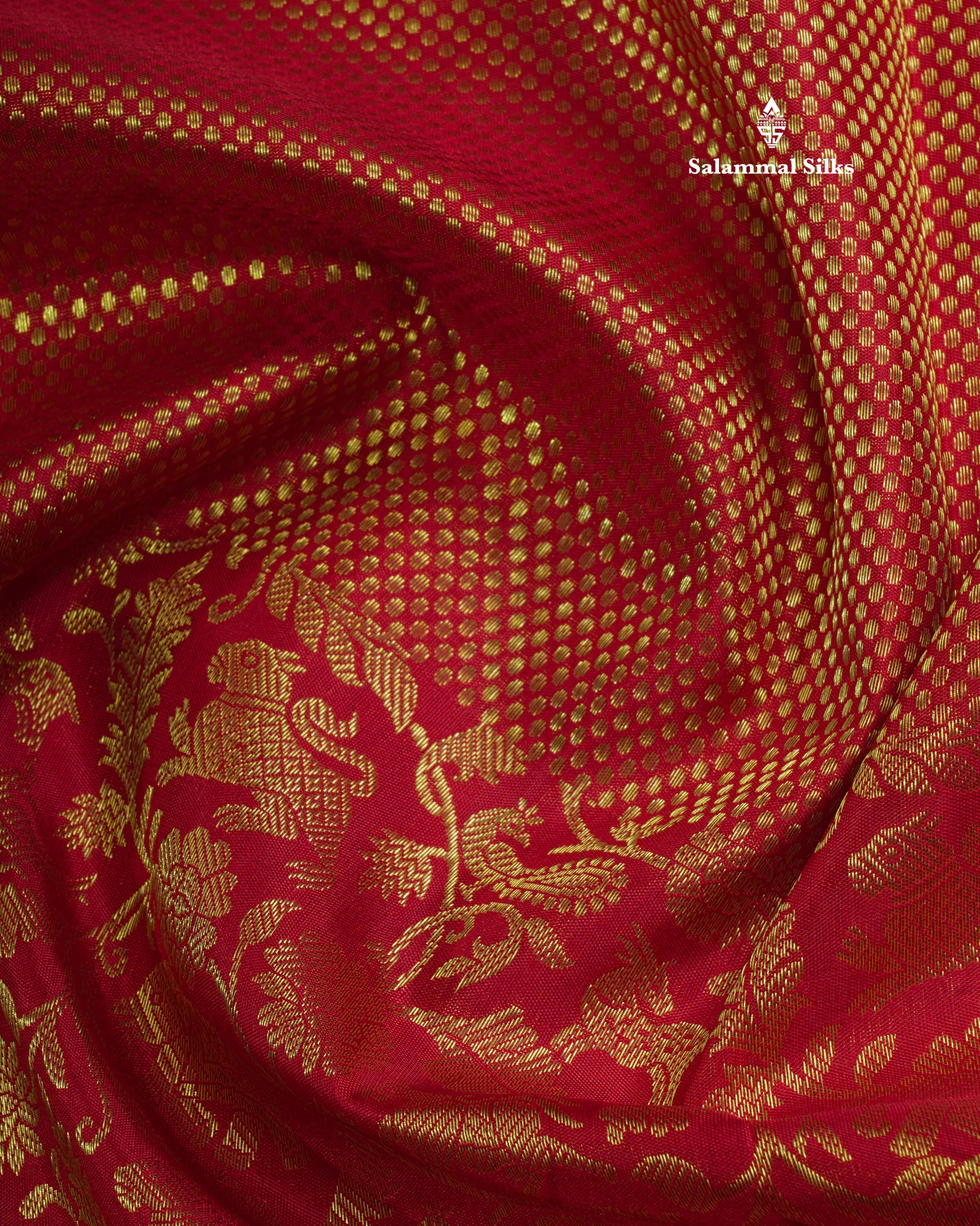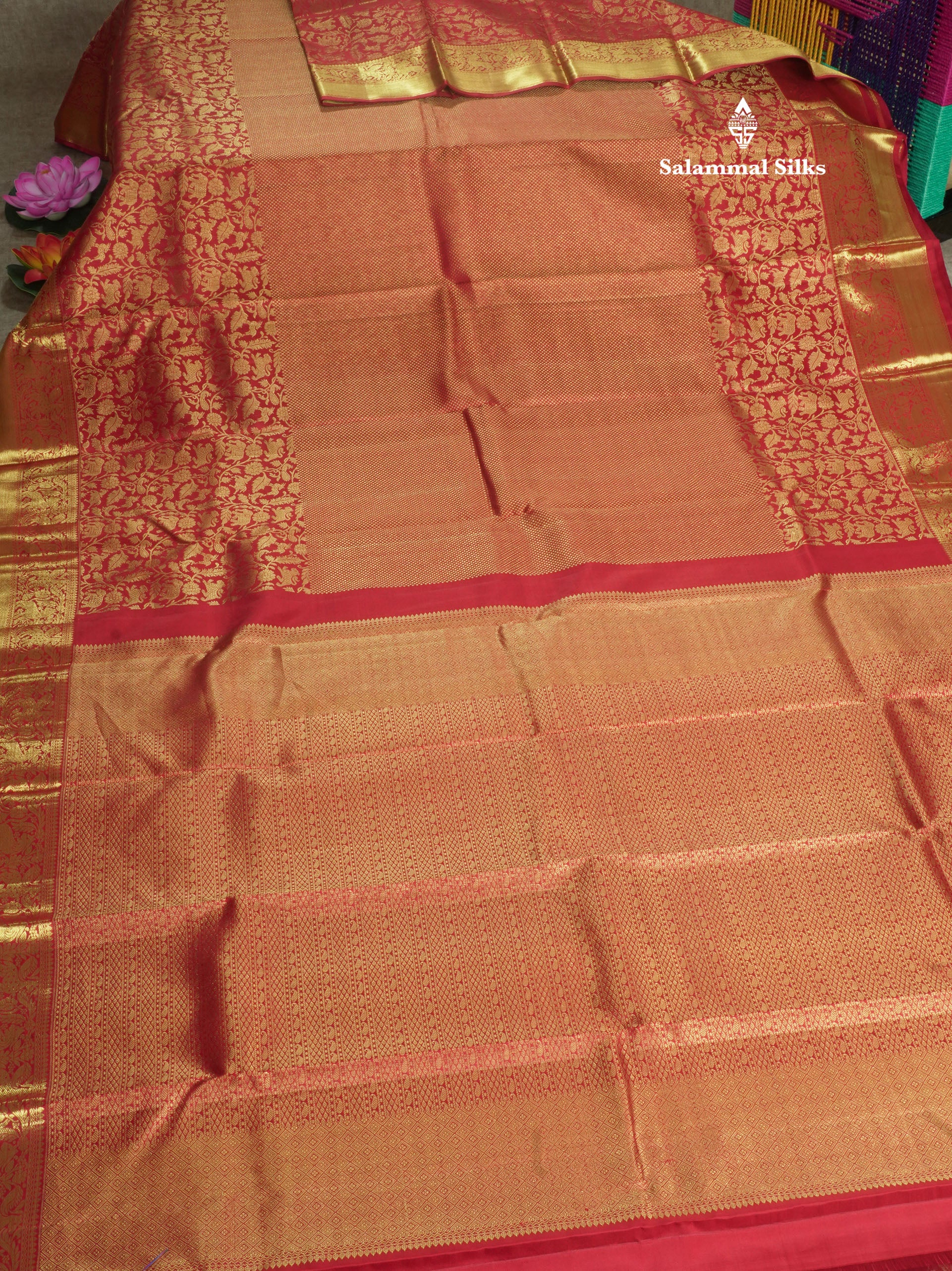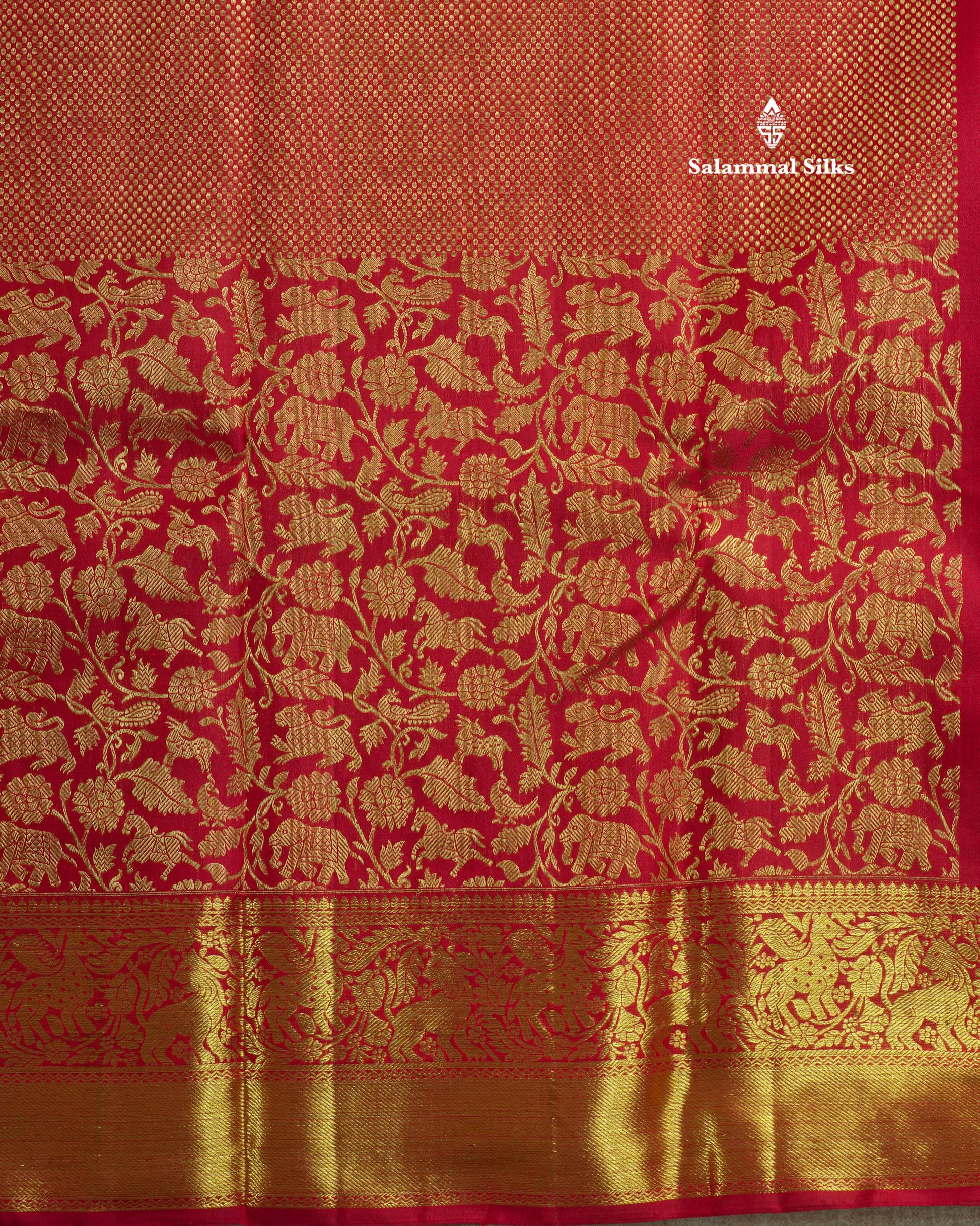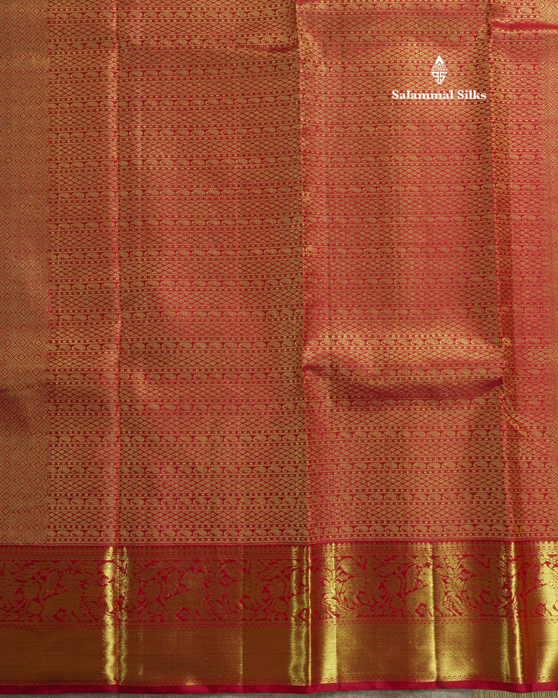 Salammal is known for its handloom sarees. In some sarees, there is cross-weaving between the body and the pallu, which is a sign of pure handloom sarees. This can be seen in Kanchipuram embossed sarees.