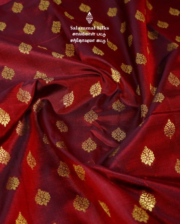 Salammal is known for its handloom sarees. In some sarees, there is cross-weaving between the body and the pallu, which is a sign of pure handloom sarees. This can be seen in Kanchipuram embossed sarees.