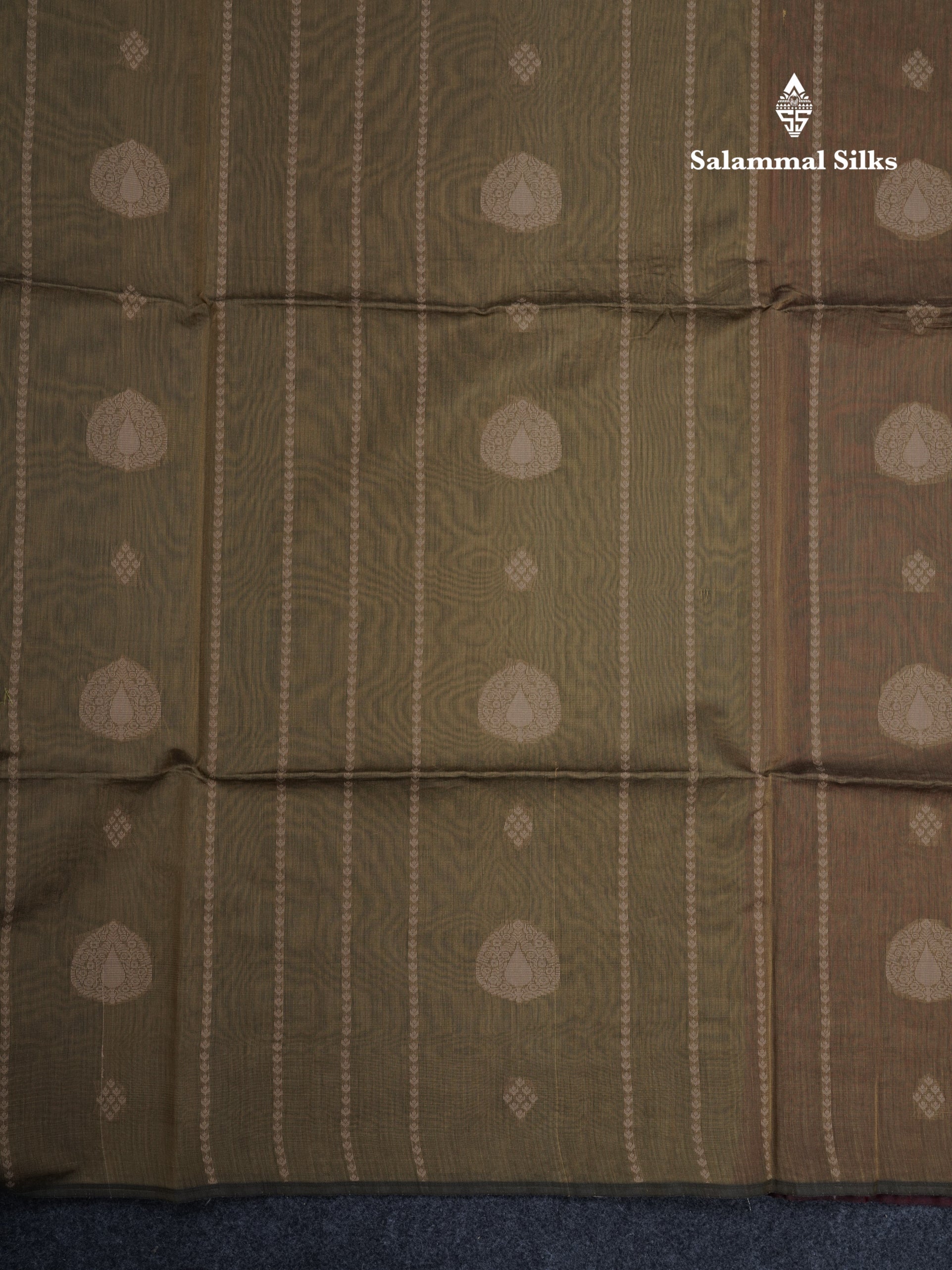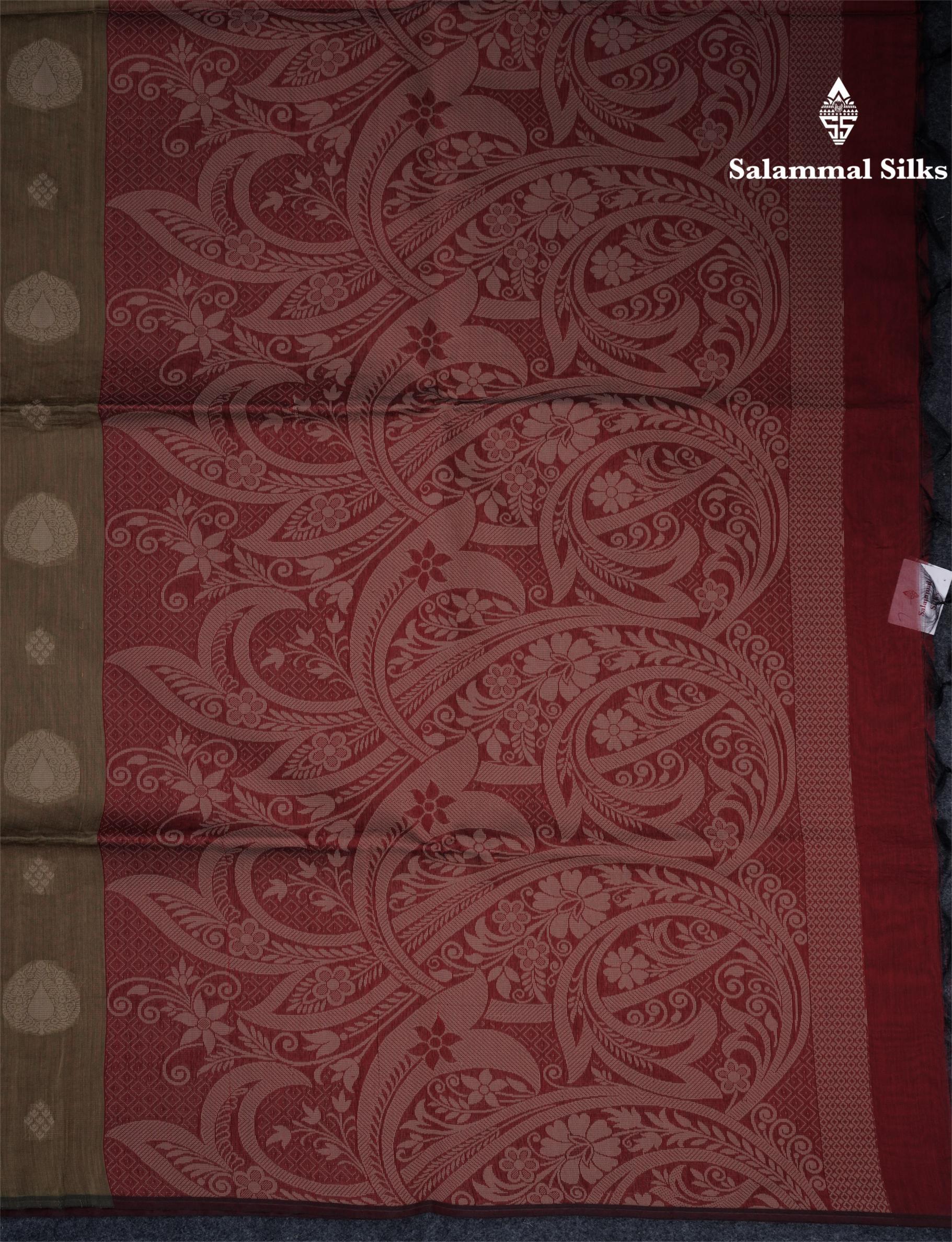 Mehandhi Green Beautiful Fancy Kora Cotton Saree With Contrast Maroon Blouse
