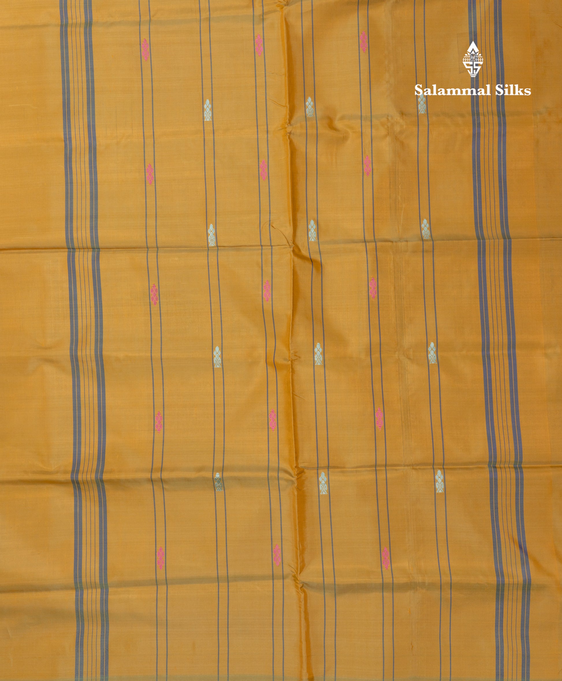 Salammal is known for its handloom sarees. In some sarees, there is cross-weaving between the body and the pallu, which is a sign of pure handloom sarees. This can be seen in Kanchipuram embossed sarees.