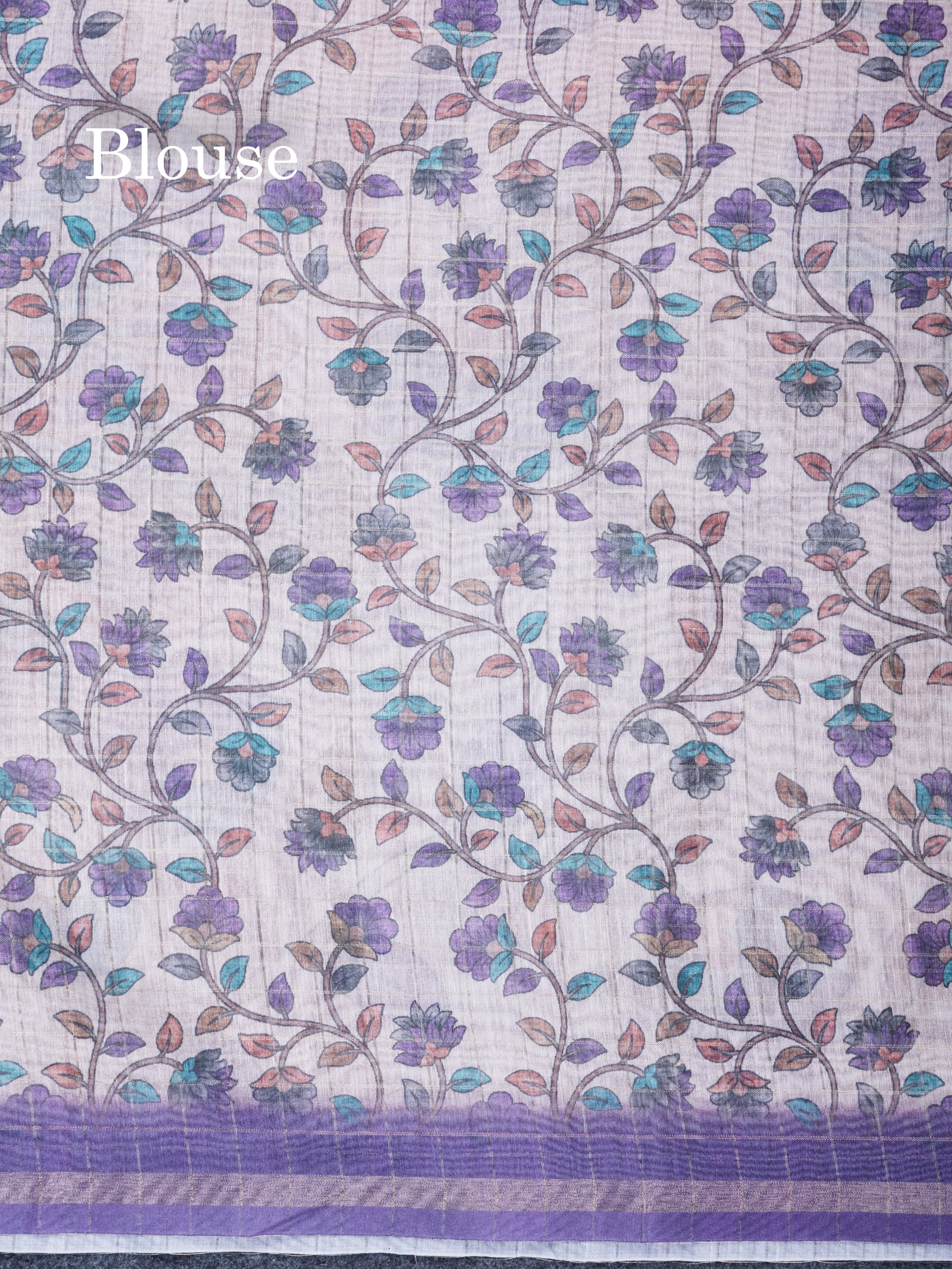 Multicolour Fancy Body Checks Cotton Mix Saree With Floral Kalamkari Blouse