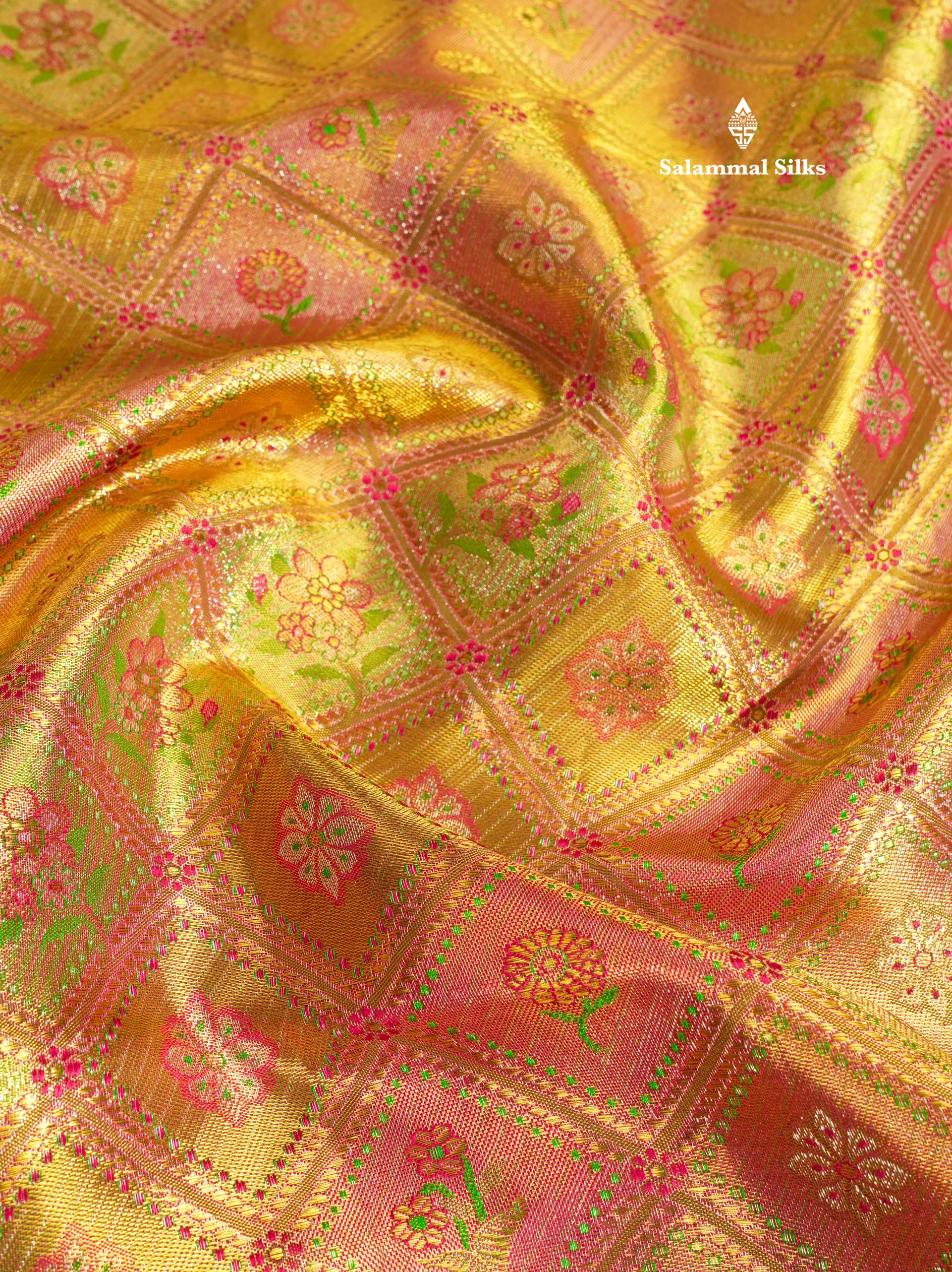 Salammal is known for its handloom sarees. In some sarees, there is cross-weaving between the body and the pallu, which is a sign of pure handloom sarees. This can be seen in Kanchipuram embossed sarees.