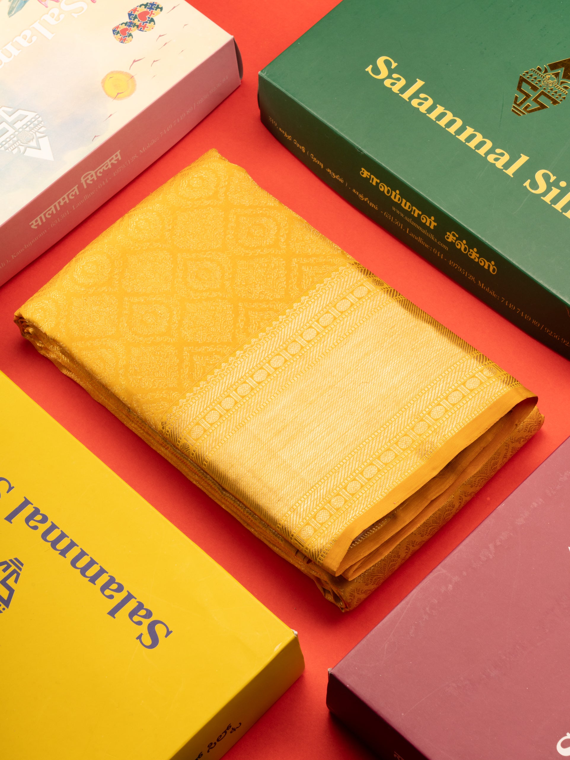 Mustard Yellow Bridal Pure Kanjivaram Silk Saree With Traditional Border