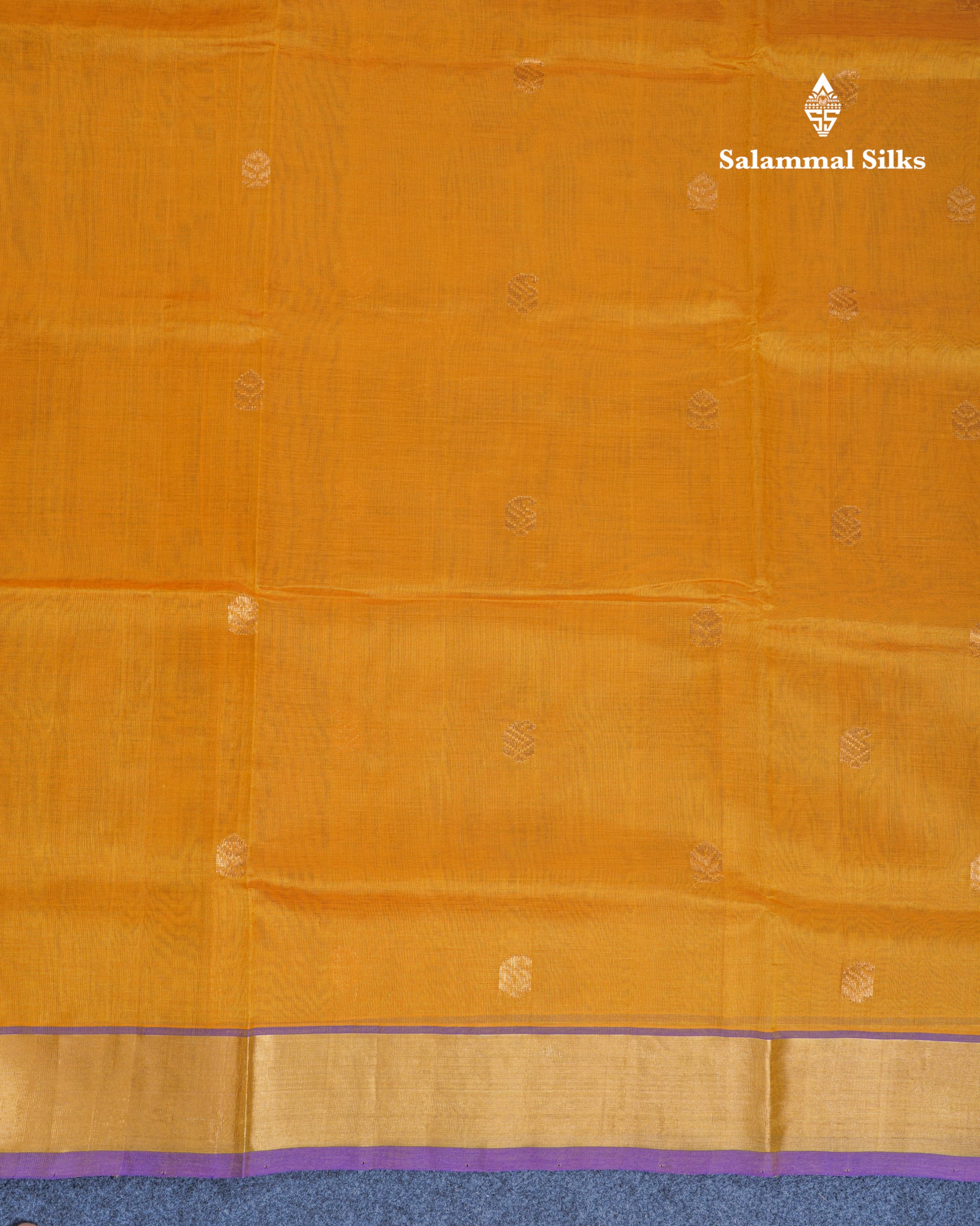 Mustard Yellow Pure Silk Cotton Saree With Contrast Violet Blouse