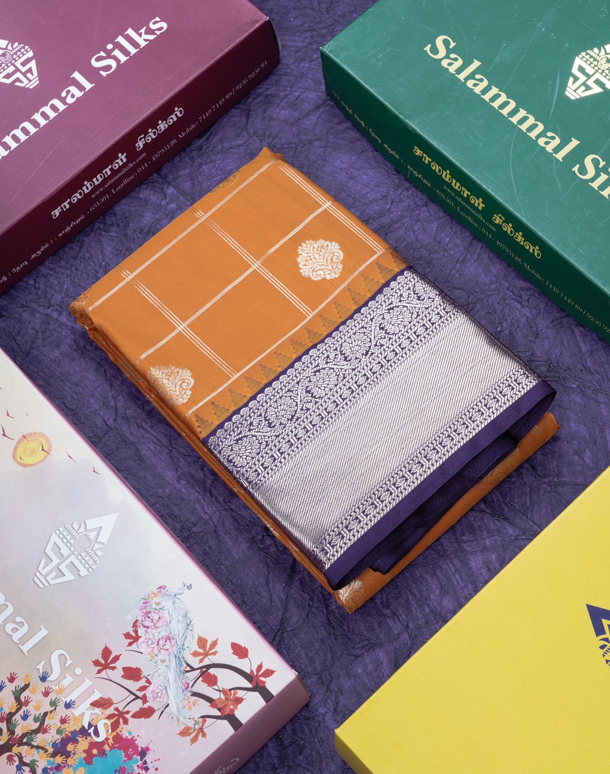 Salammal is known for its handloom sarees. In some sarees, there is cross-weaving between the body and the pallu, which is a sign of pure handloom sarees. This can be seen in Kanchipuram embossed sarees.