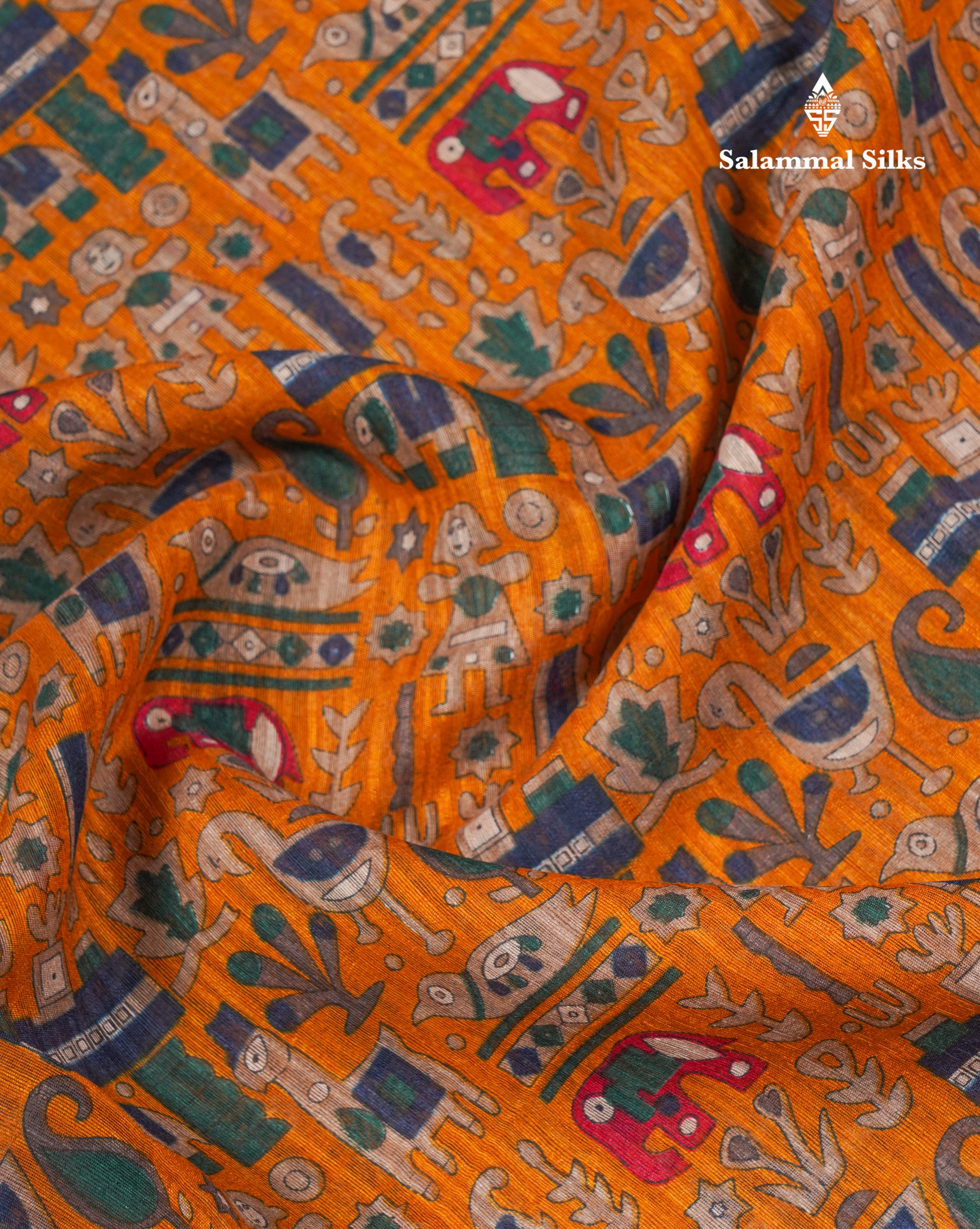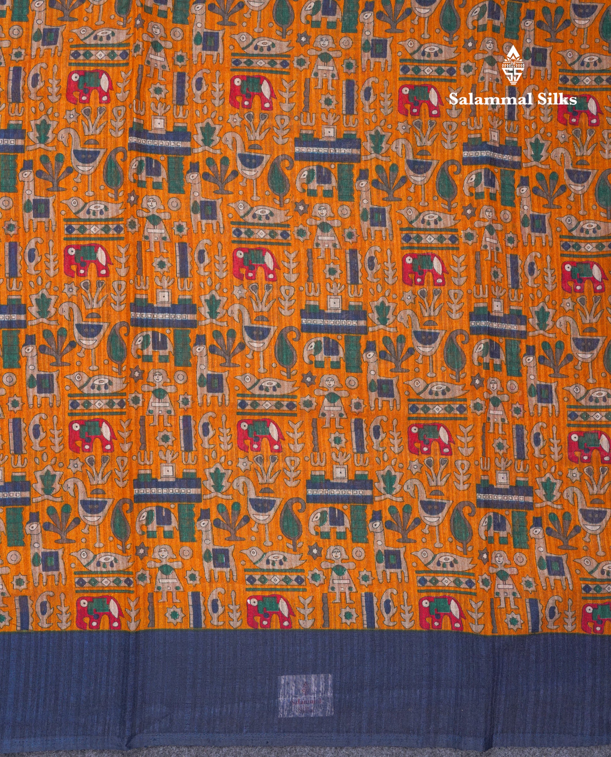Mustard Yellow Semi Tussar Fancy Saree With Contrast Navy Blue Blouse