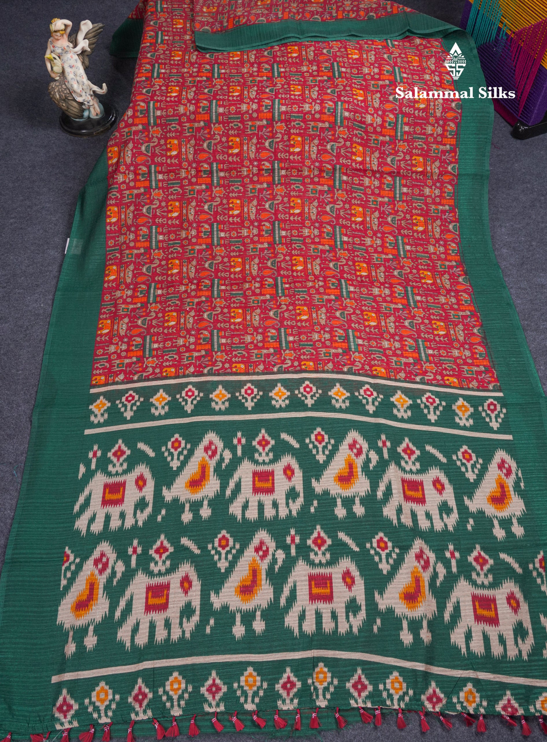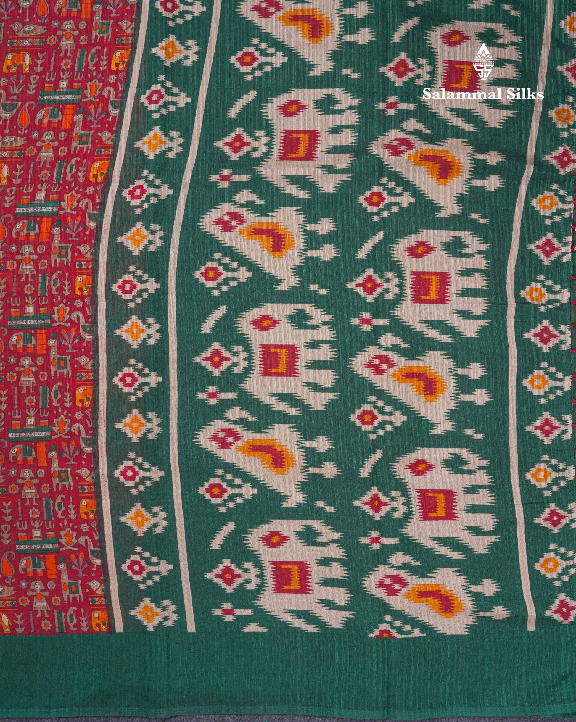 Salammal is known for its handloom sarees. In some sarees, there is cross-weaving between the body and the pallu, which is a sign of pure handloom sarees. This can be seen in Kanchipuram embossed sarees.