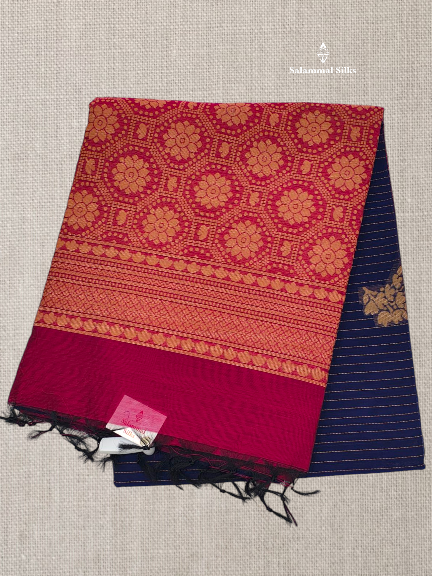 Navy Blue Beautiful Fancy Kora Cotton Saree With Blouse