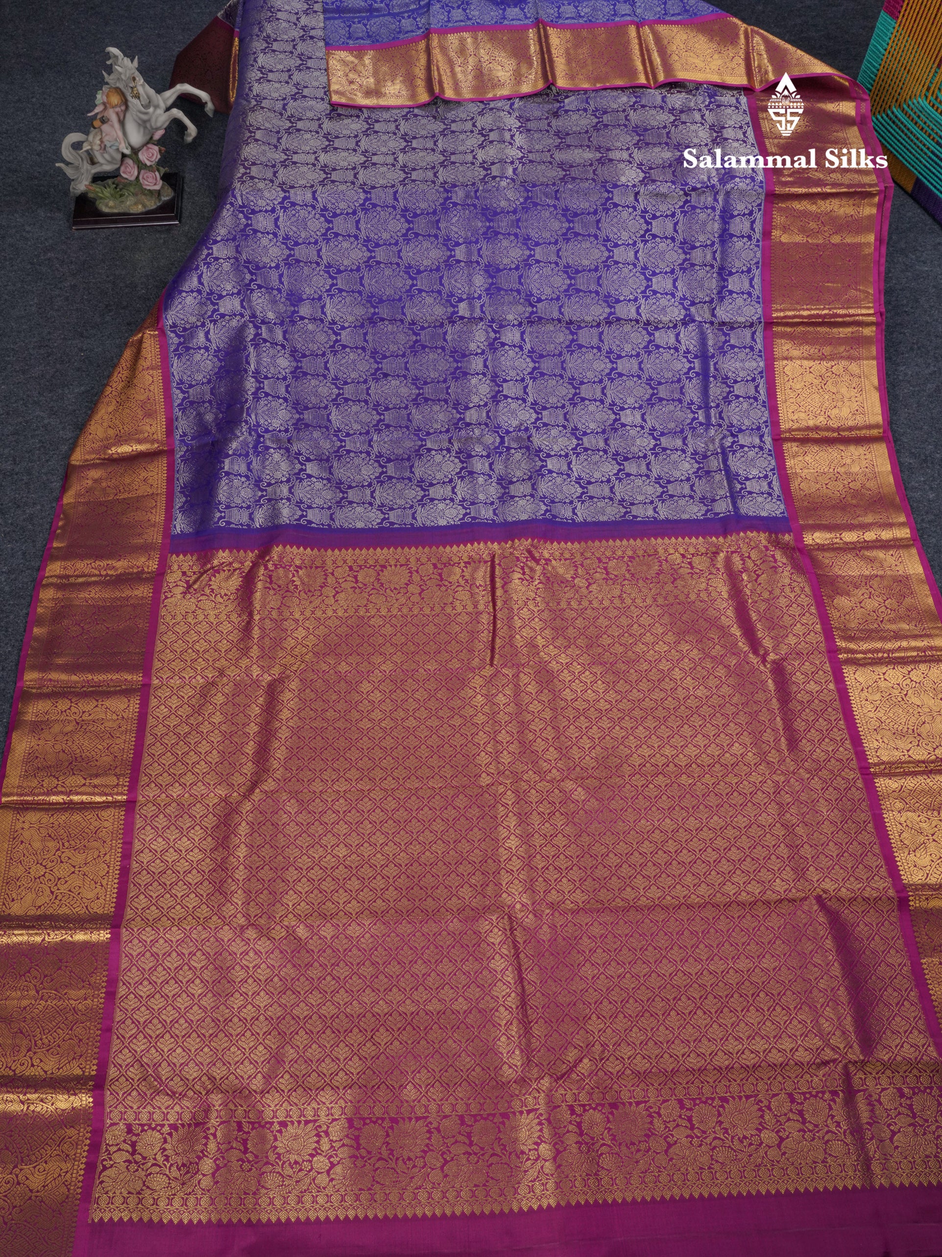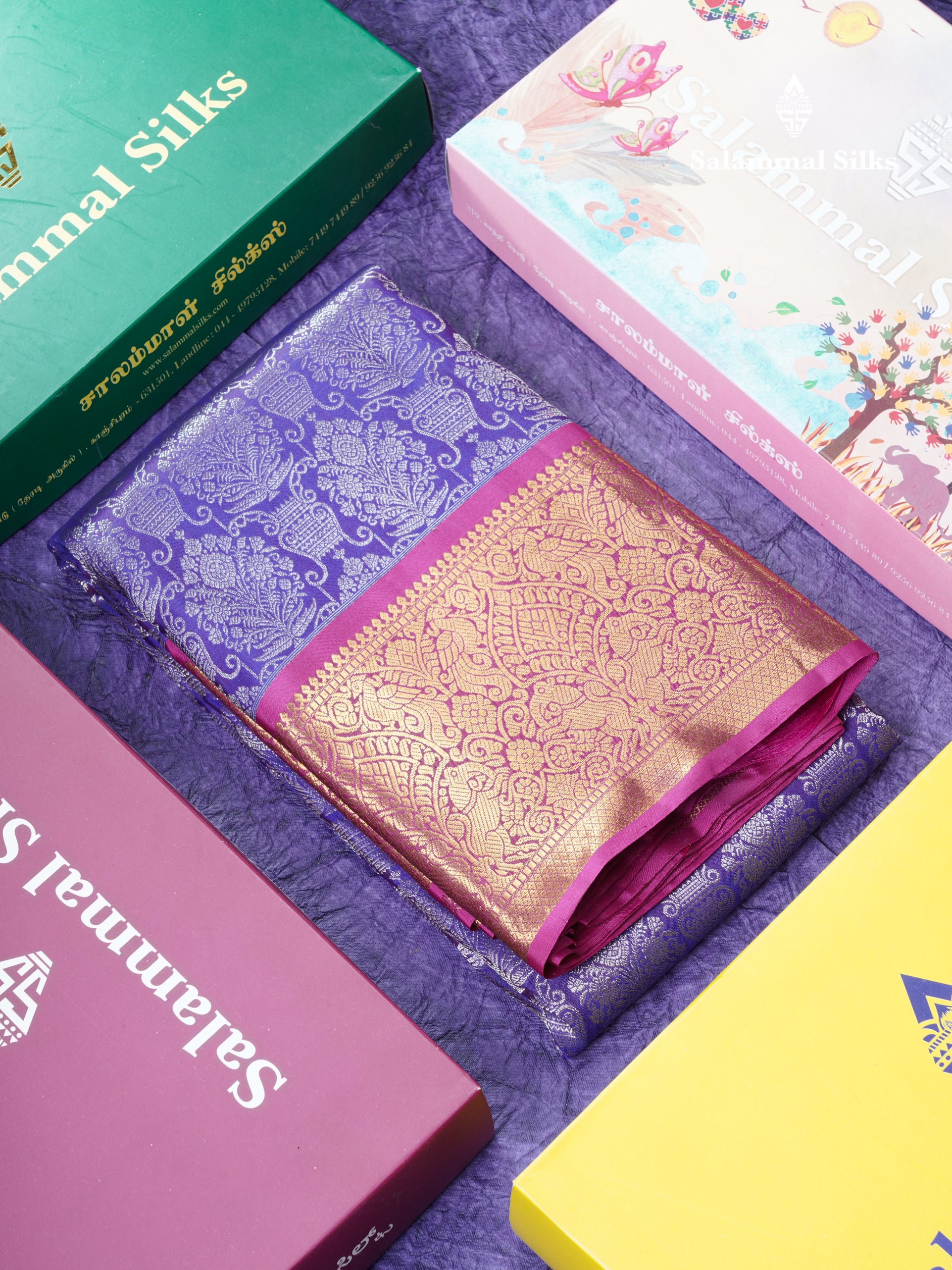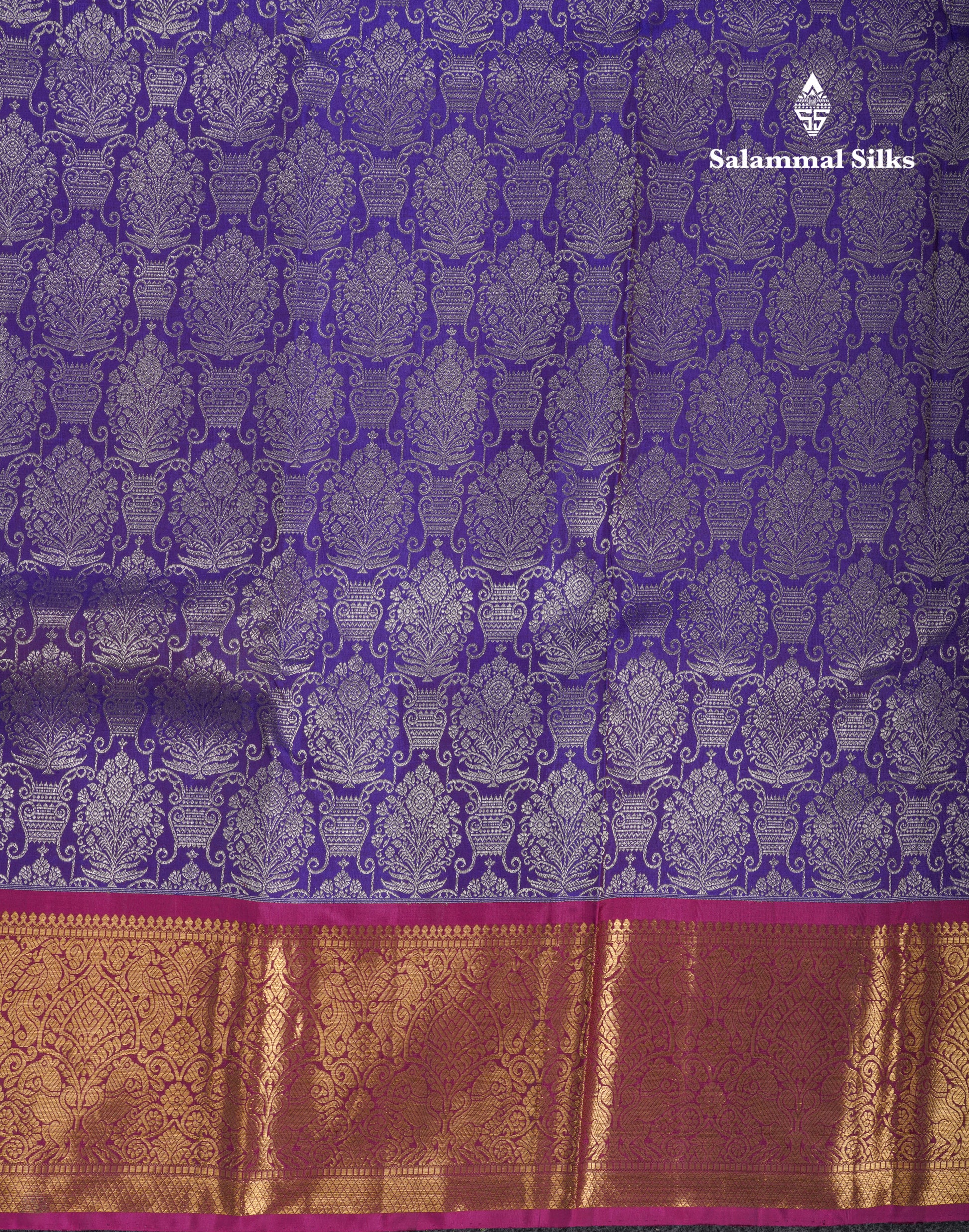 Navy Blue Bridal Pure Kanjivaram Silk Saree With Magenta Border