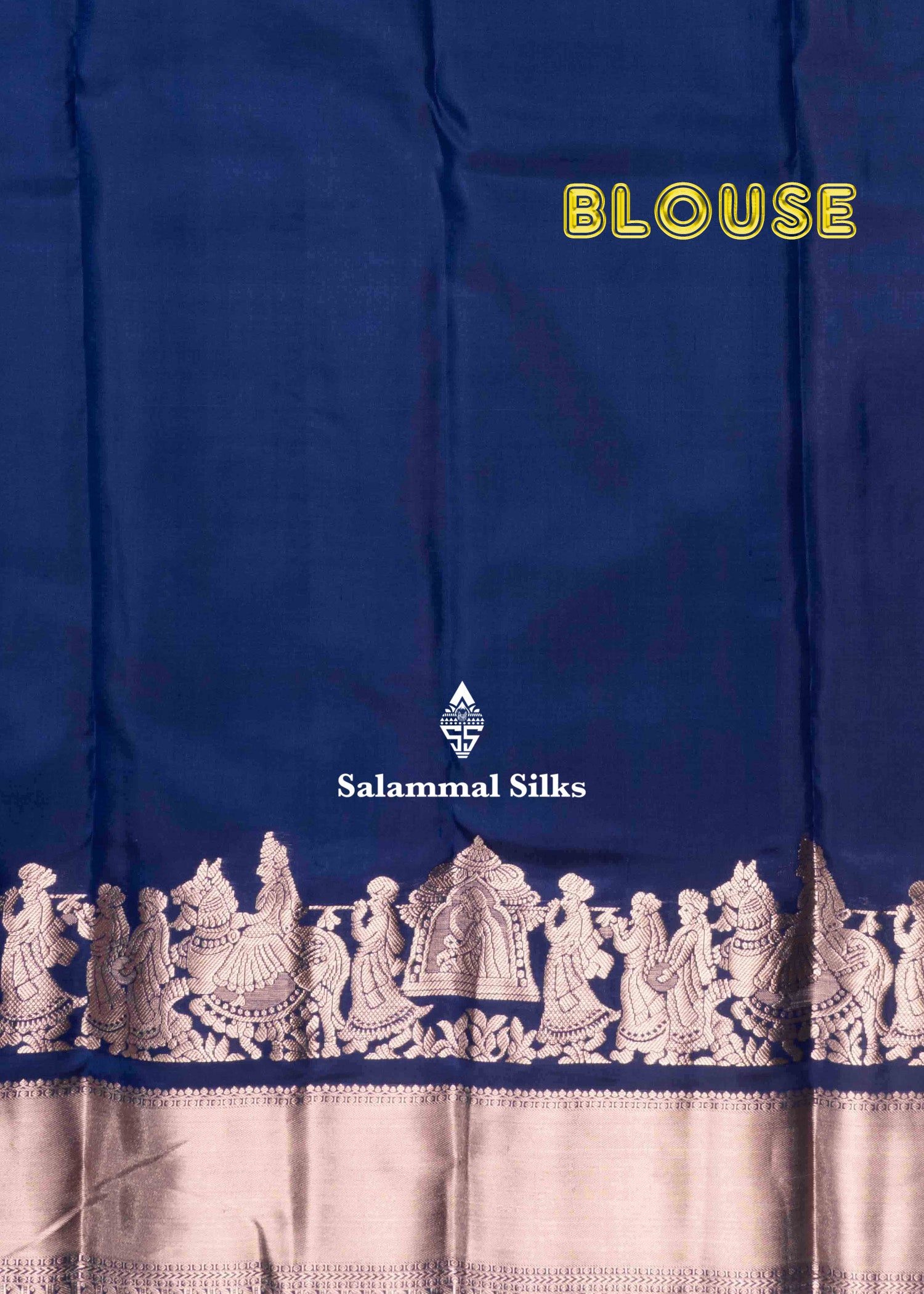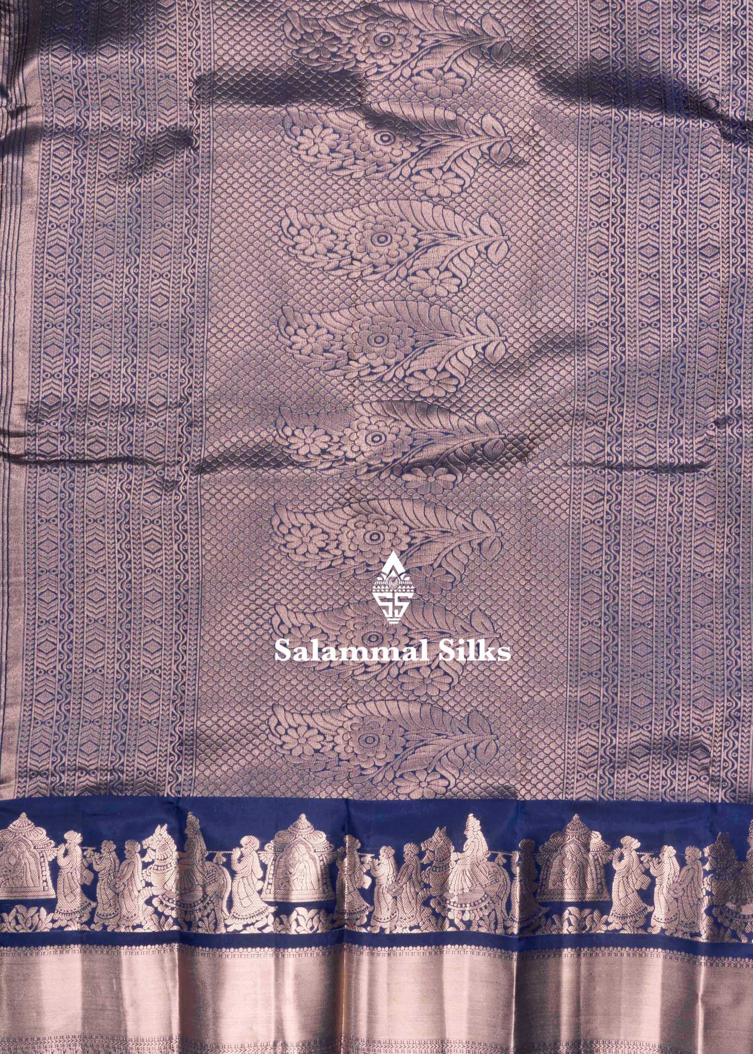 Navy Blue Pure Kanjivaram Silk Saree Pallakku and Fancy Border and with Blouse