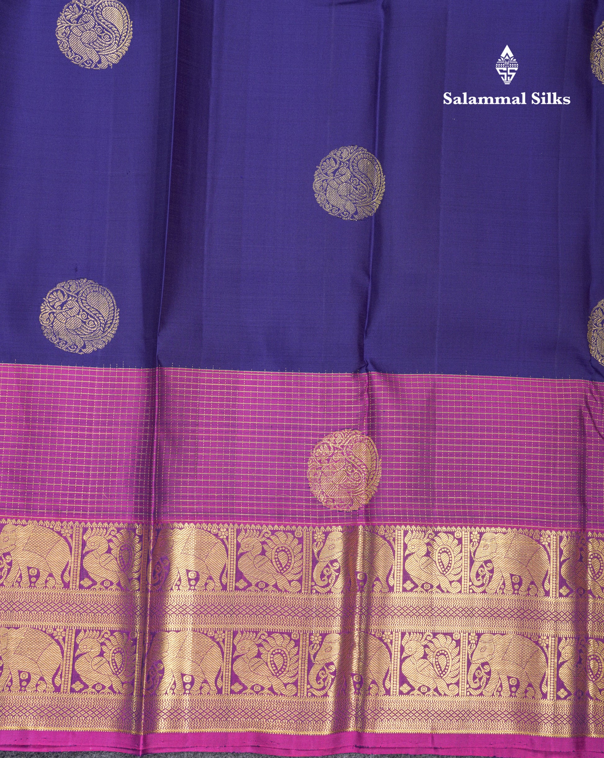 Salammal is known for its handloom sarees. In some sarees, there is cross-weaving between the body and the pallu, which is a sign of pure handloom sarees. This can be seen in Kanchipuram embossed sarees.