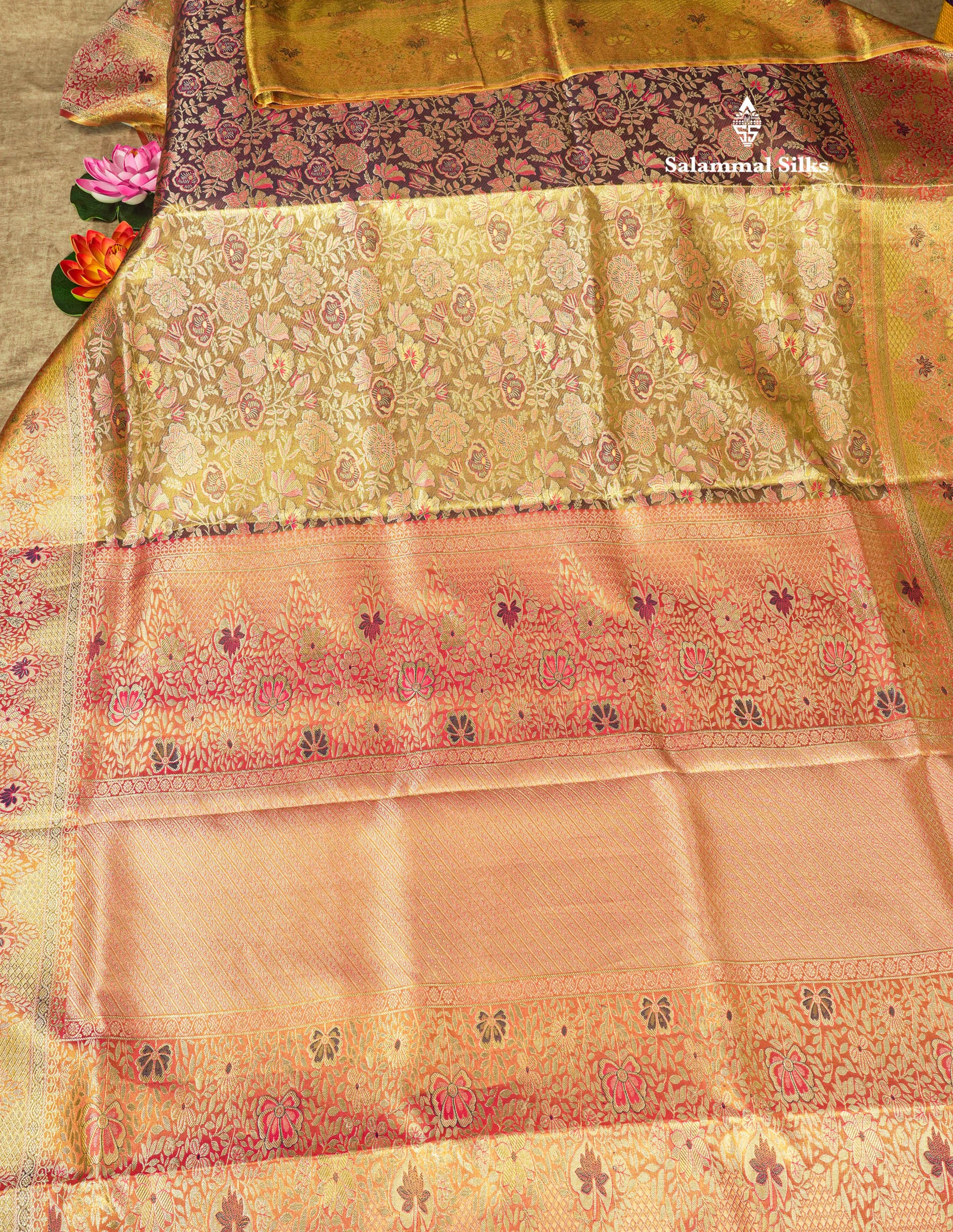 Salammal is known for its handloom sarees. In some sarees, there is cross-weaving between the body and the pallu, which is a sign of pure handloom sarees. This can be seen in Kanchipuram embossed sarees.