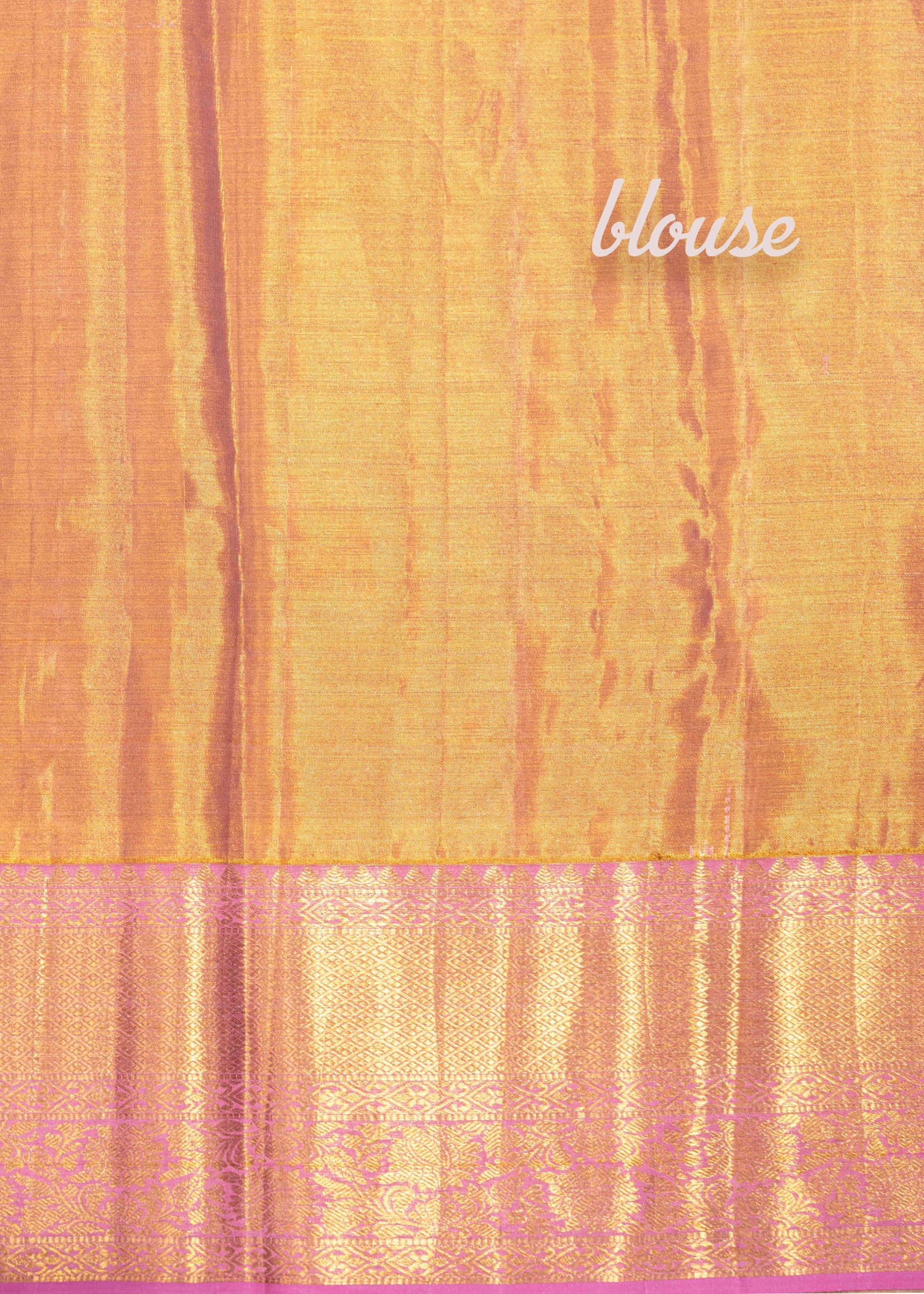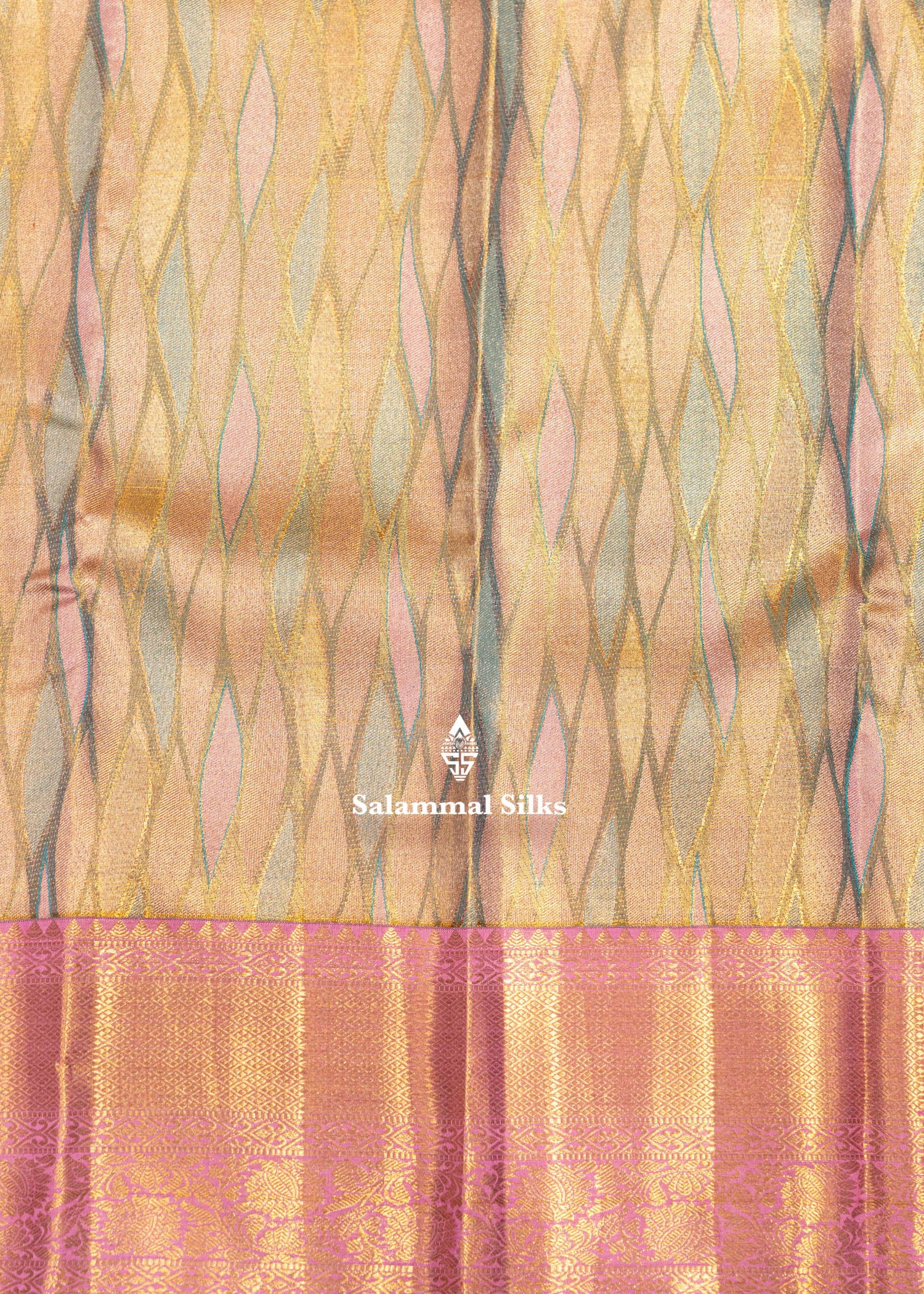 Multicolor Kanjivaram Pure Tissue Silk Saree with Baby Pink Border