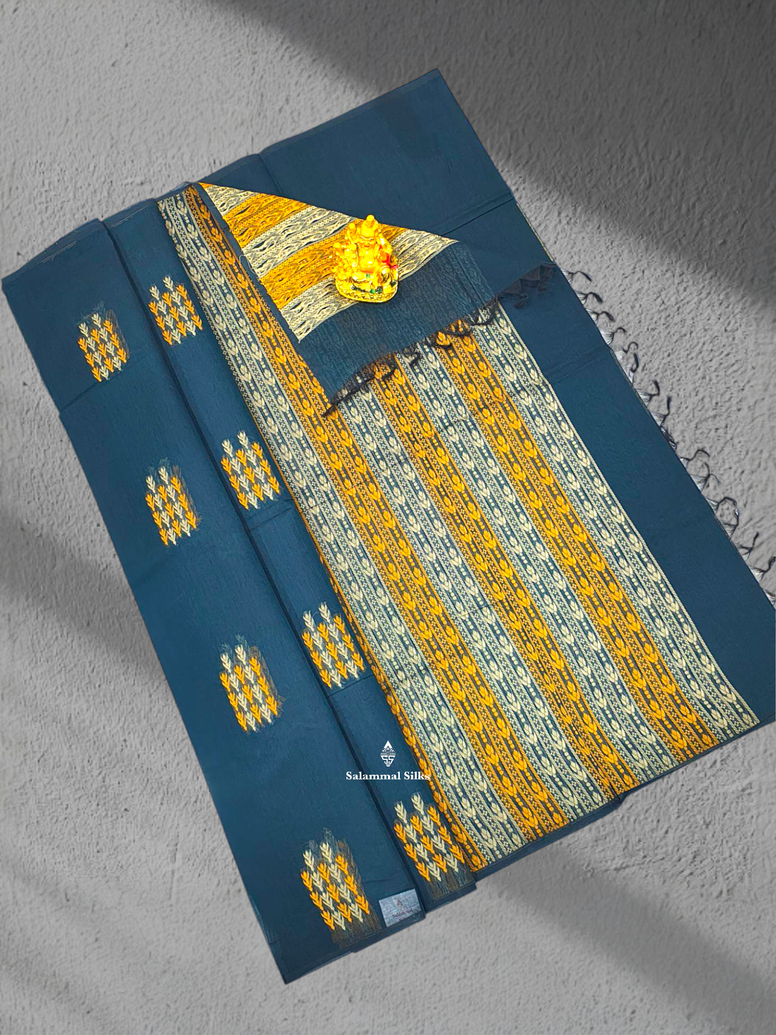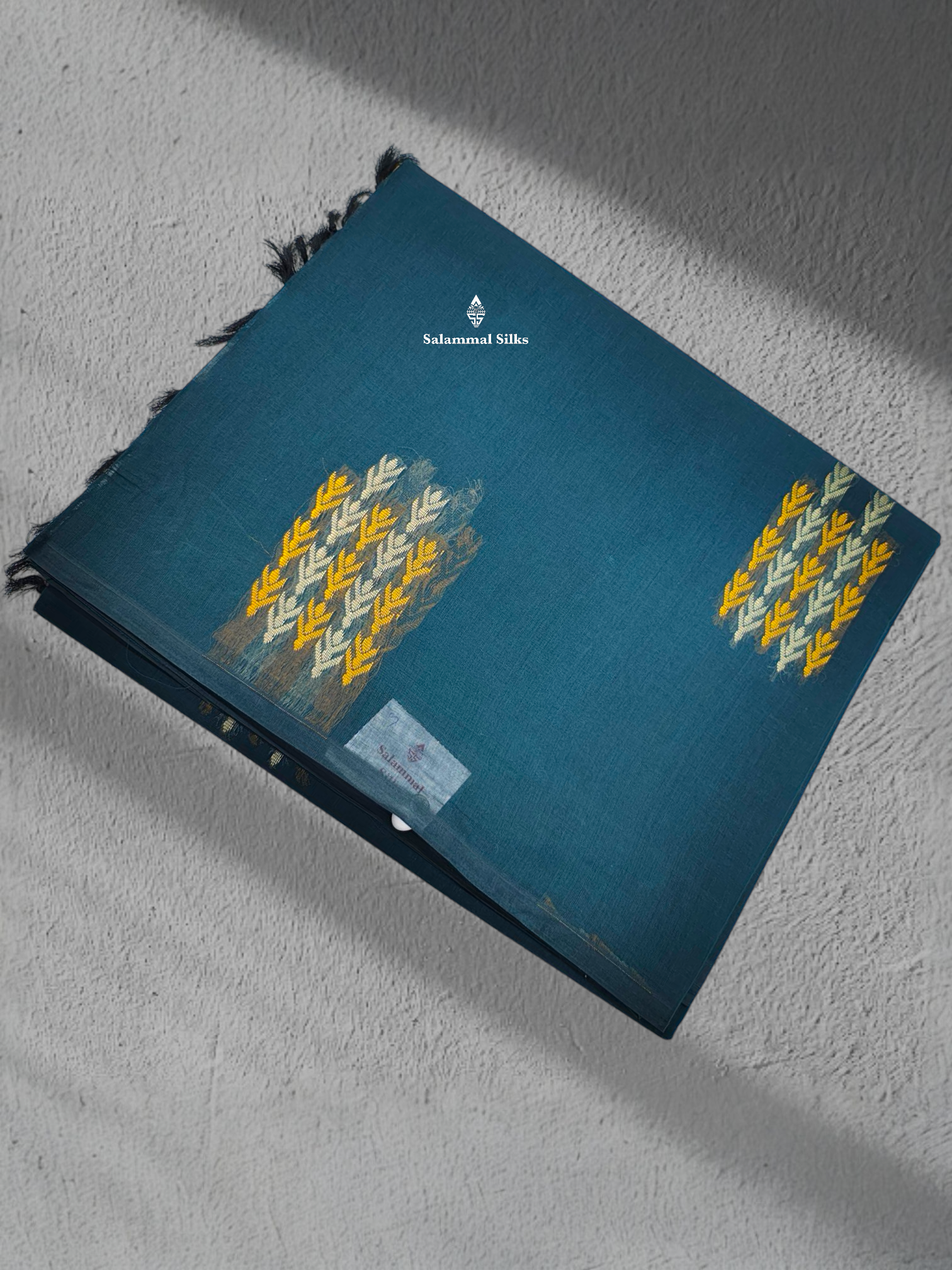 Olive Blue Beautiful Fancy Pure Cotton Saree With Border