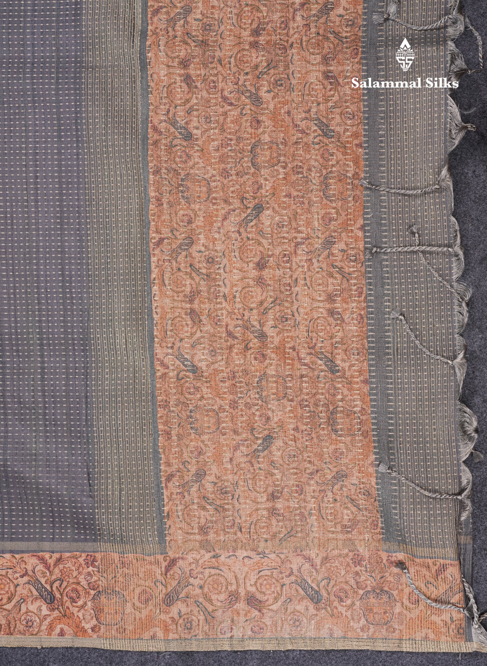 Salammal is known for its handloom sarees. In some sarees, there is cross-weaving between the body and the pallu, which is a sign of pure handloom sarees. This can be seen in Kanchipuram embossed sarees.