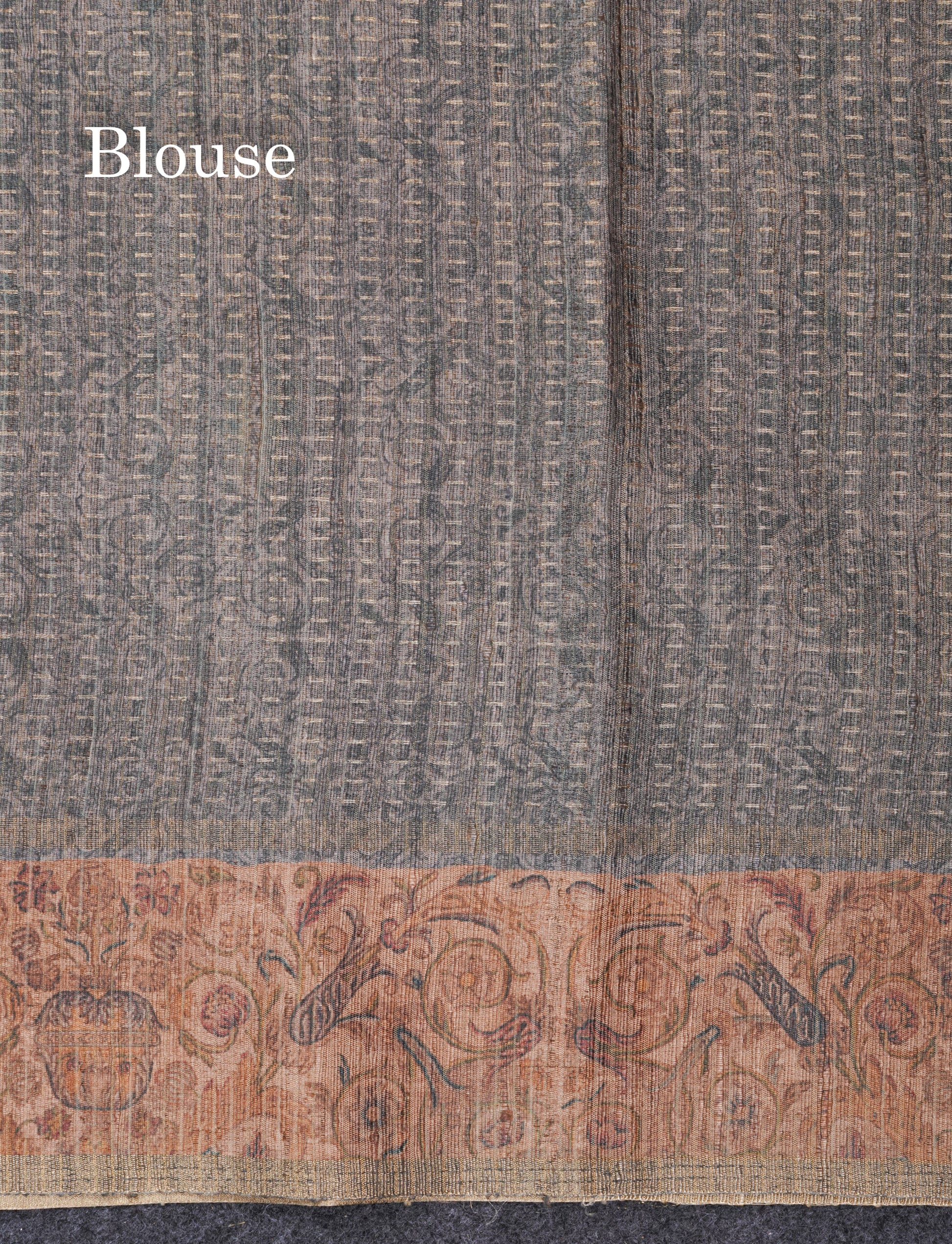 Olive Green Semi Tussar Fancy Saree With Contrast Sandal Floral Print Border