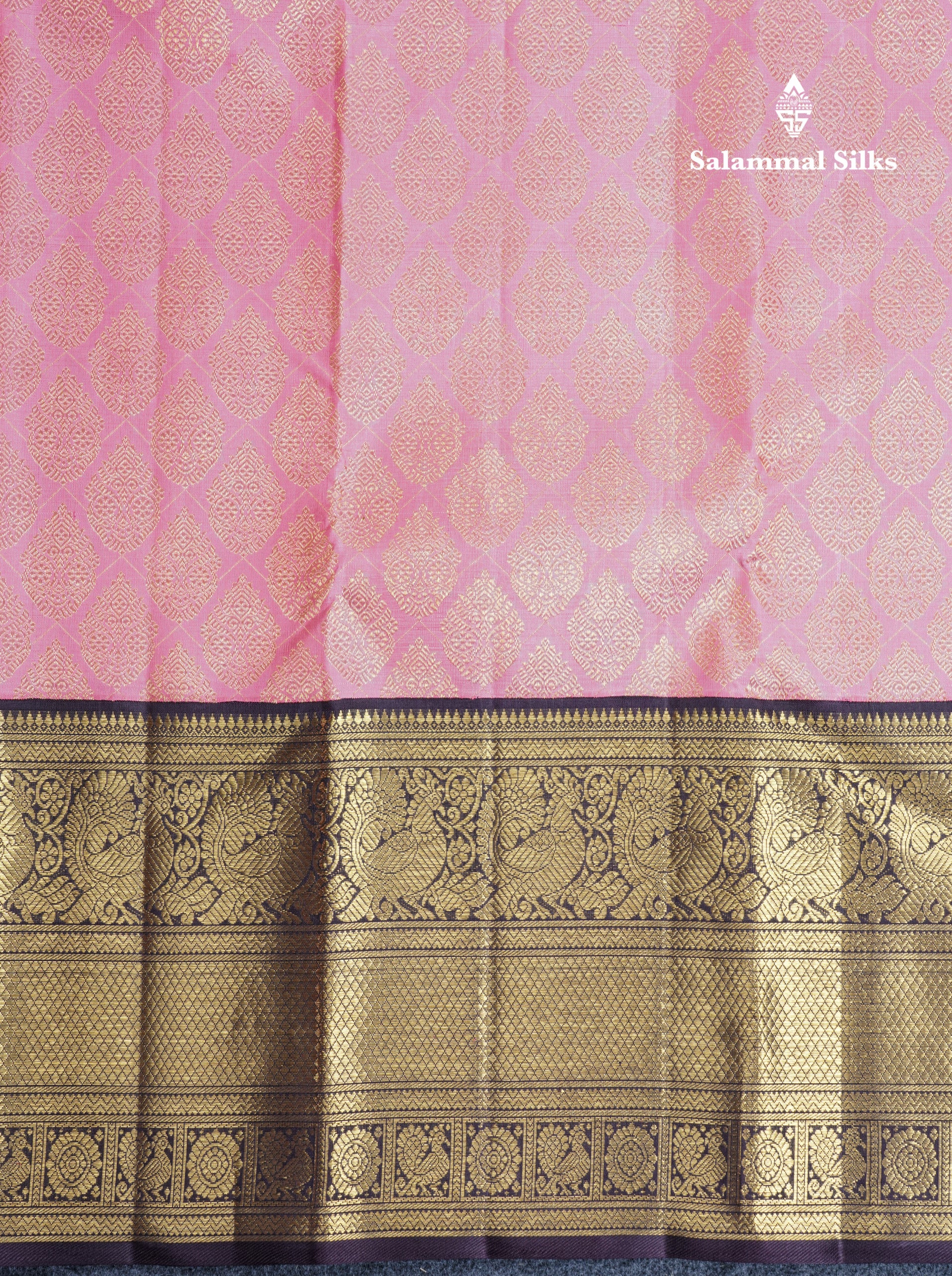Salammal is known for its handloom sarees. In some sarees, there is cross-weaving between the body and the pallu, which is a sign of pure handloom sarees. This can be seen in Kanchipuram embossed sarees.