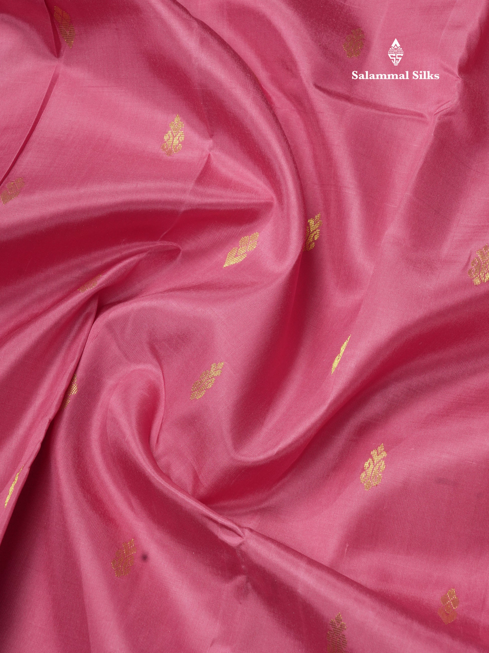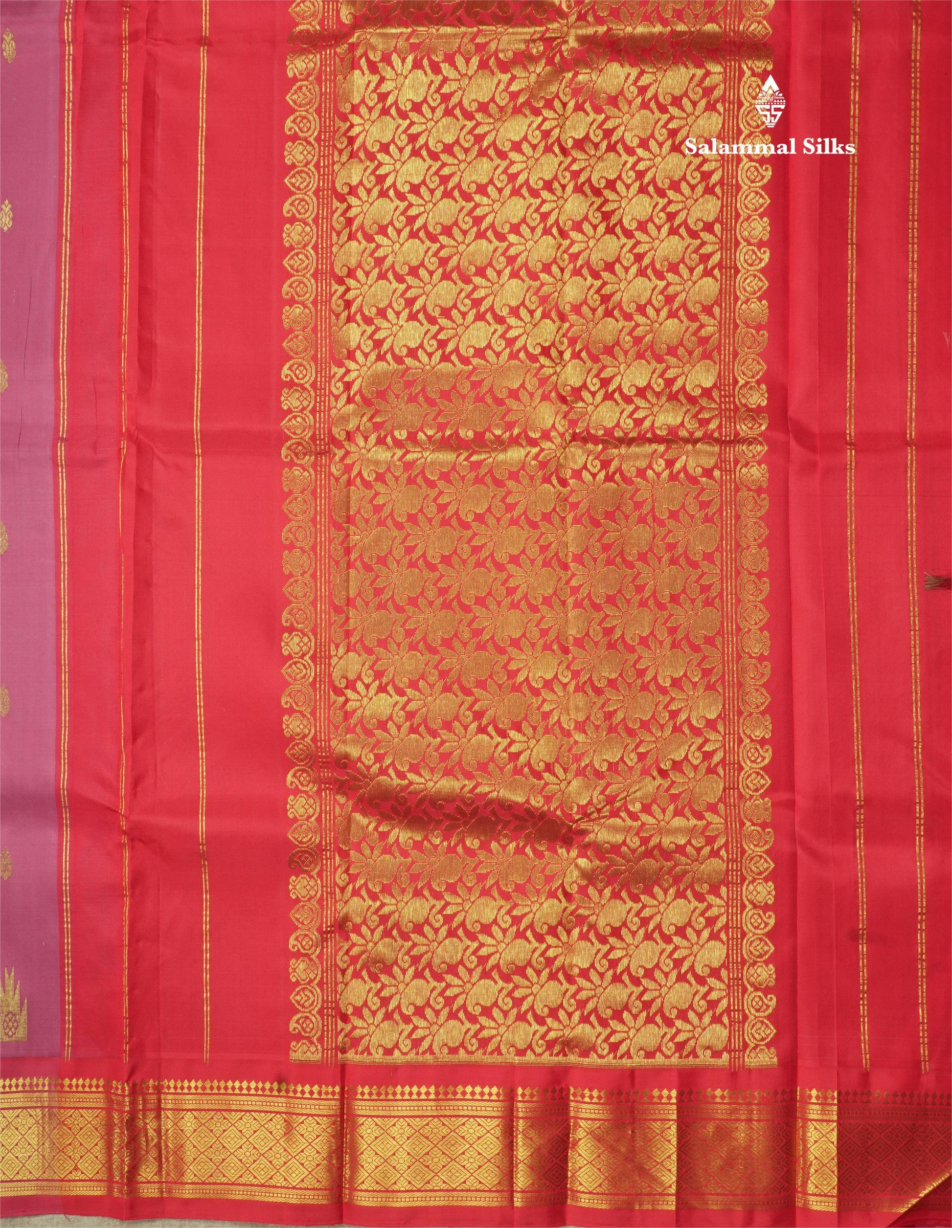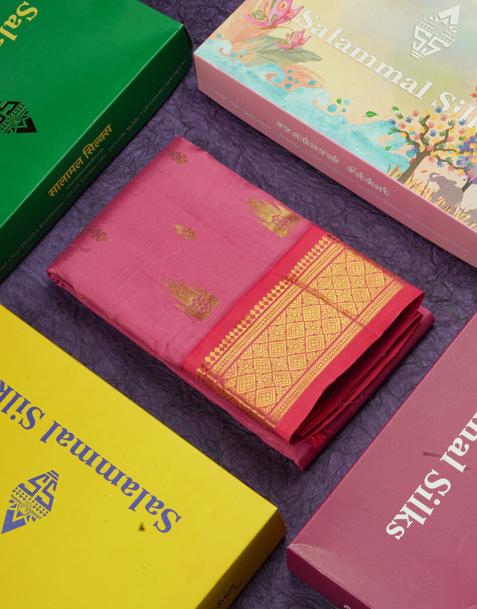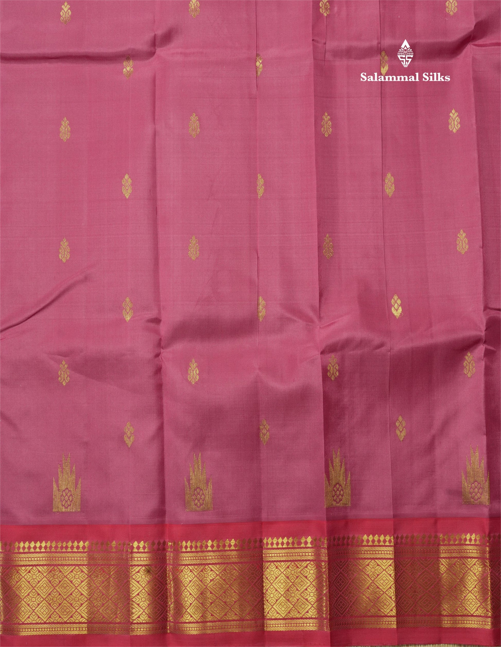 Onion Pink Pure Kanjivaram Silk Saree With One Side Contrast Tomato Red Border