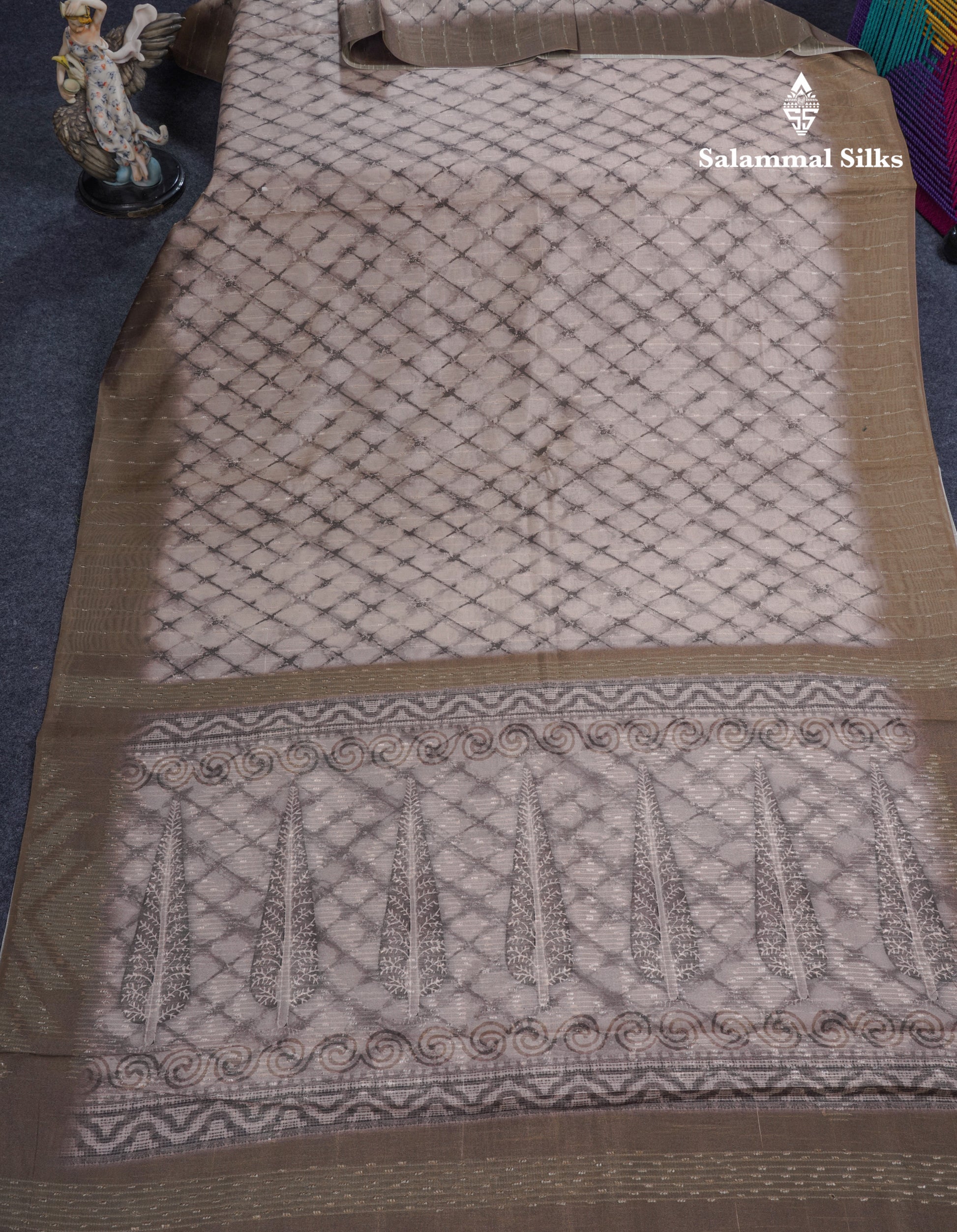 Salammal is known for its handloom sarees. In some sarees, there is cross-weaving between the body and the pallu, which is a sign of pure handloom sarees. This can be seen in Kanchipuram embossed sarees.