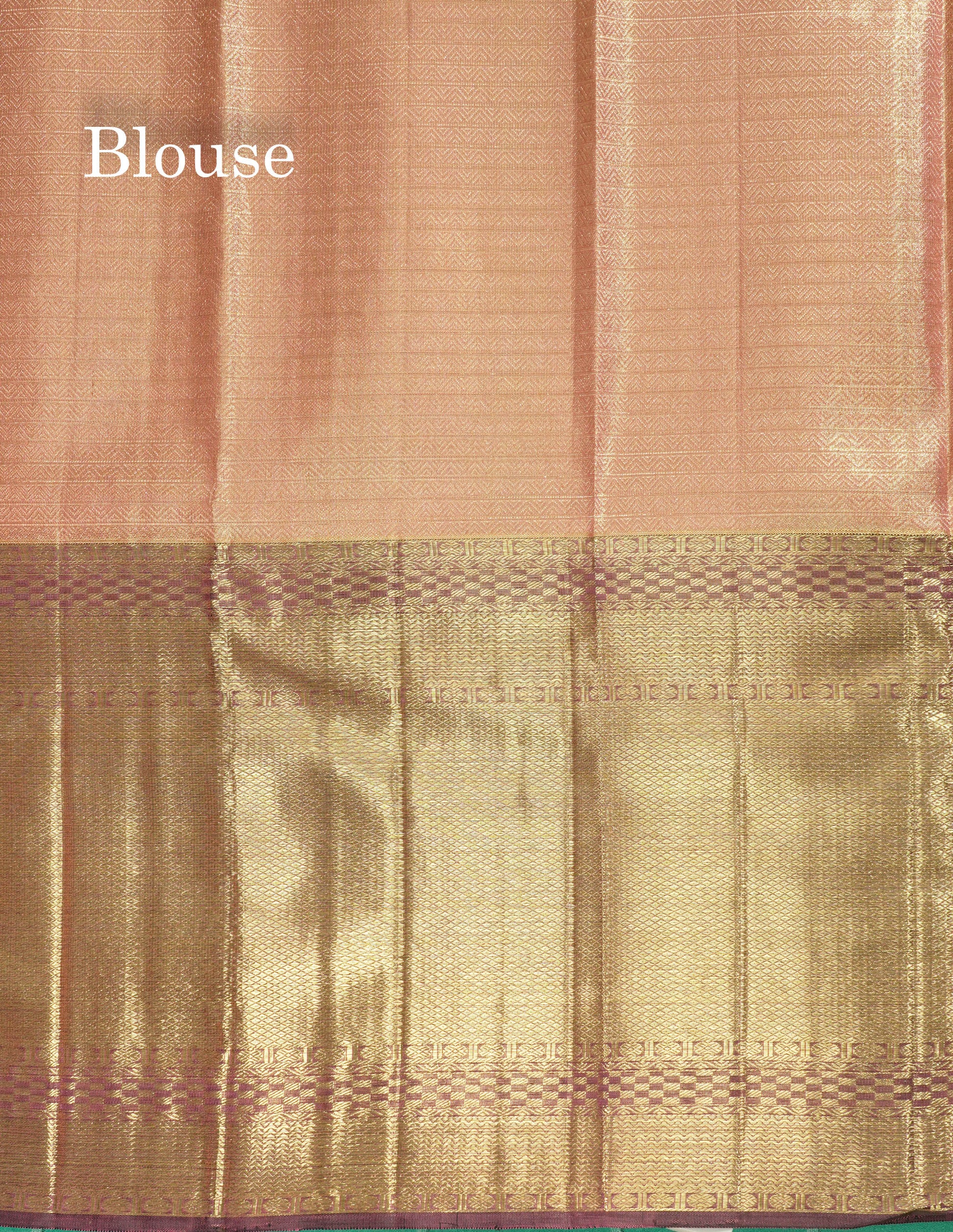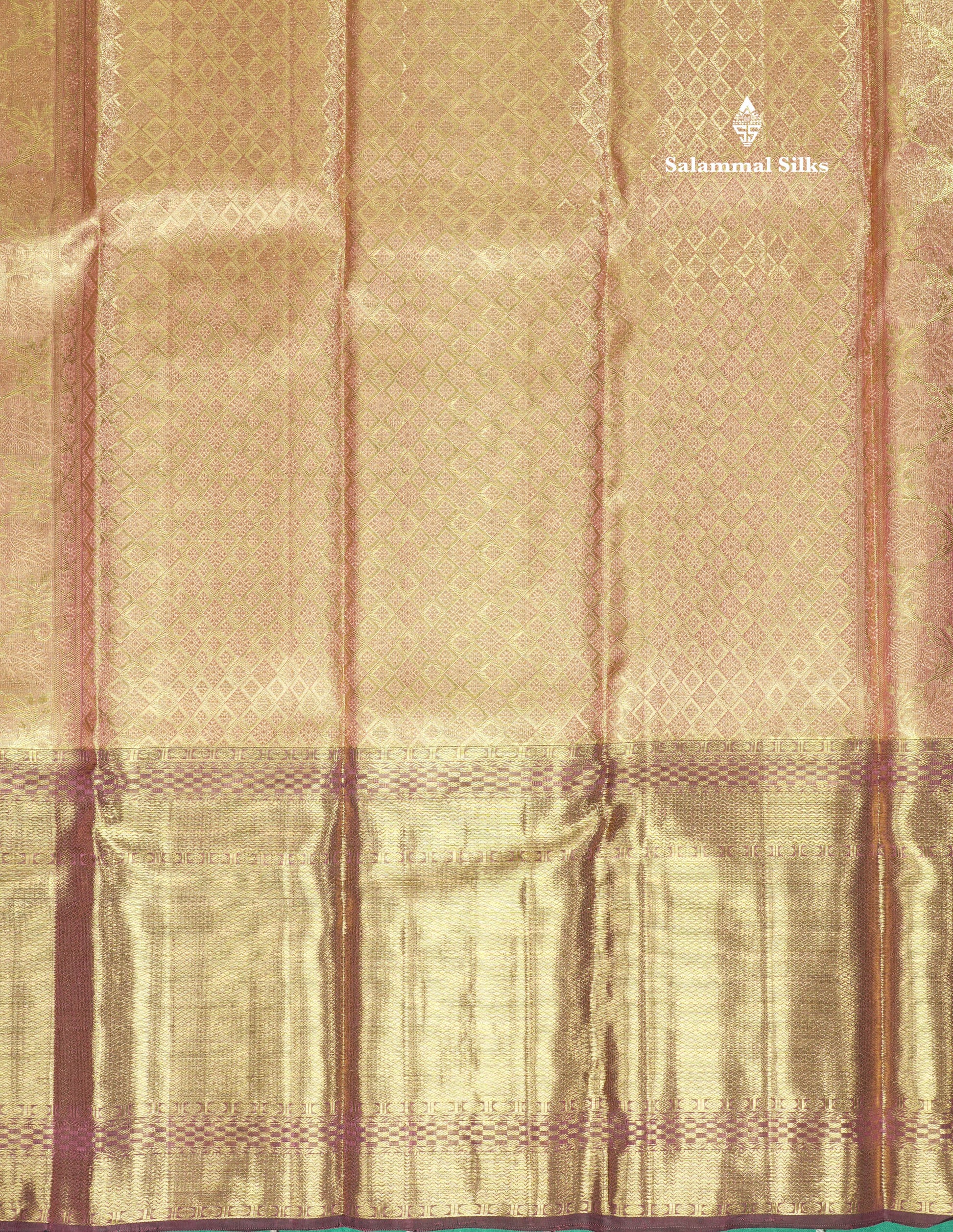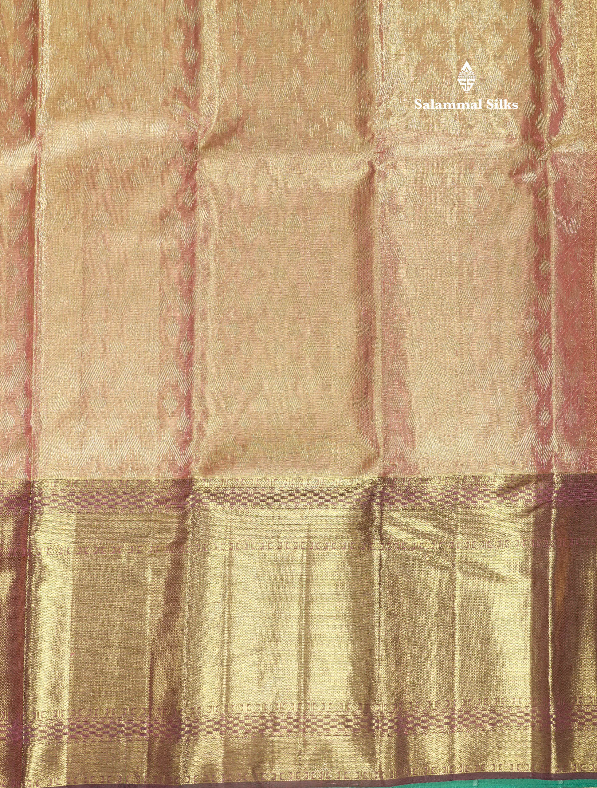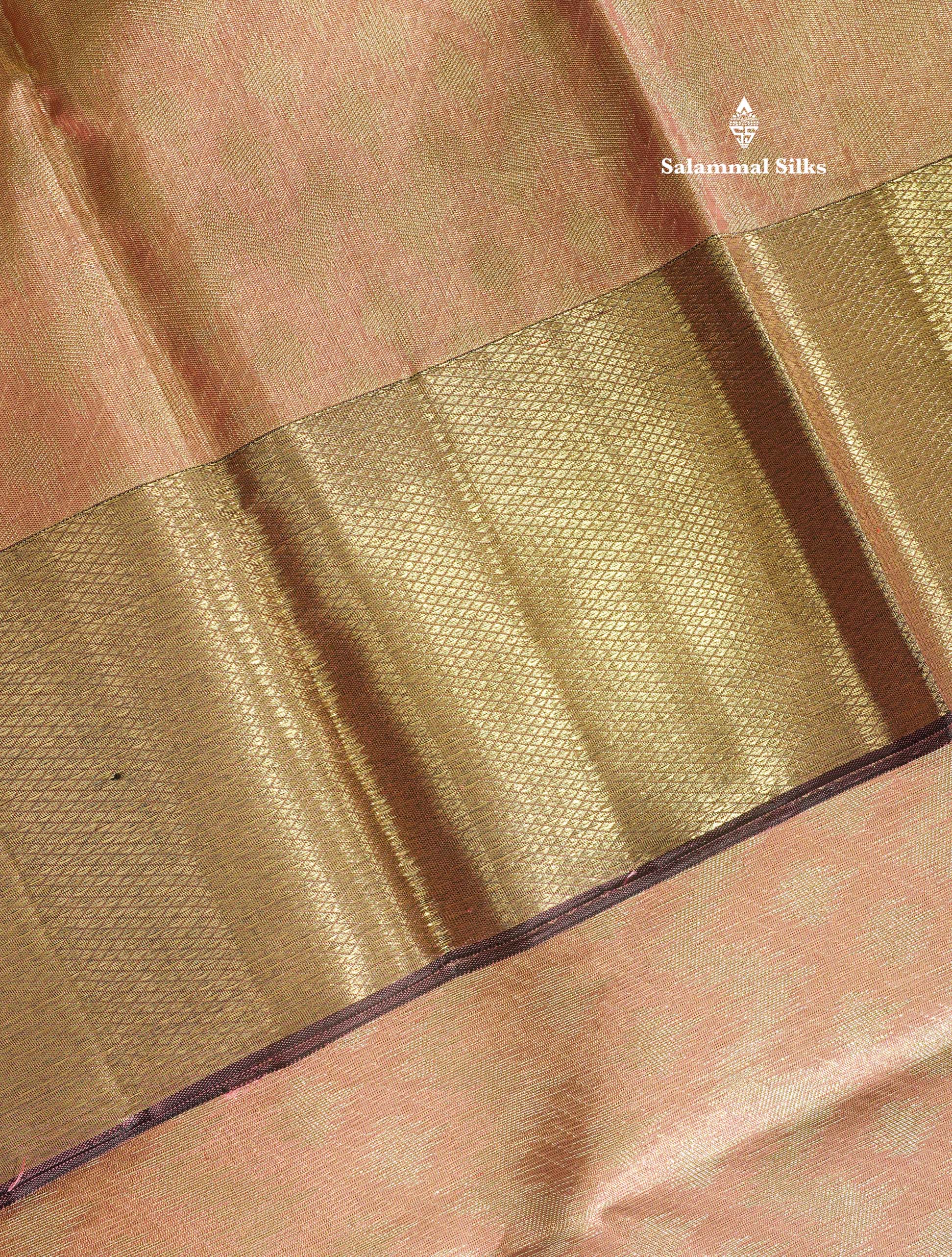 Onion Pink Tissue Pure Kanjivaram Silk Saree (2G) Zari With Contrast Long Brown Border