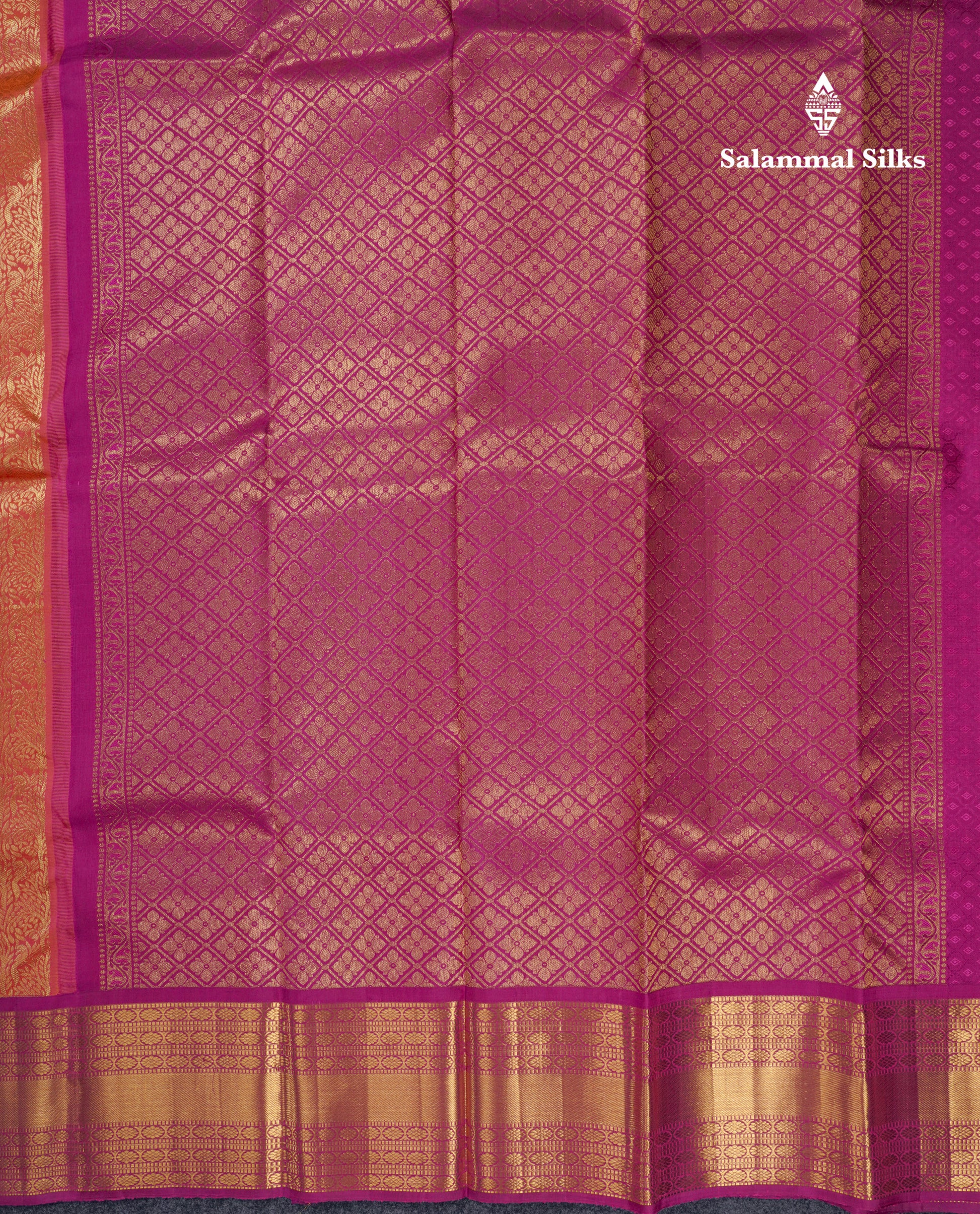 Salammal is known for its handloom sarees. In some sarees, there is cross-weaving between the body and the pallu, which is a sign of pure handloom sarees. This can be seen in Kanchipuram embossed sarees.