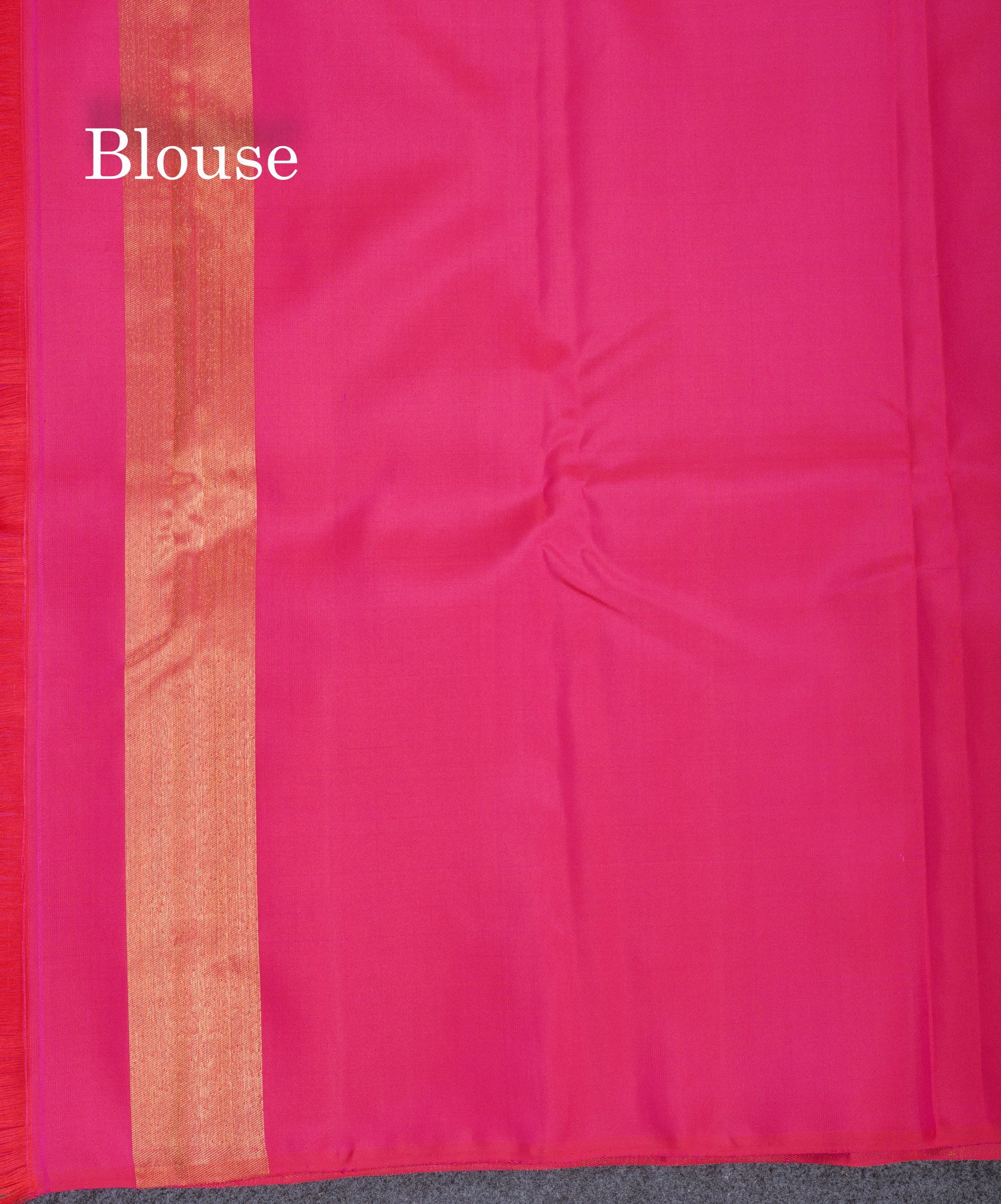 Orange Pure Kanjivaram Silk Saree With Contrast Pink 8 Kol Temple Border