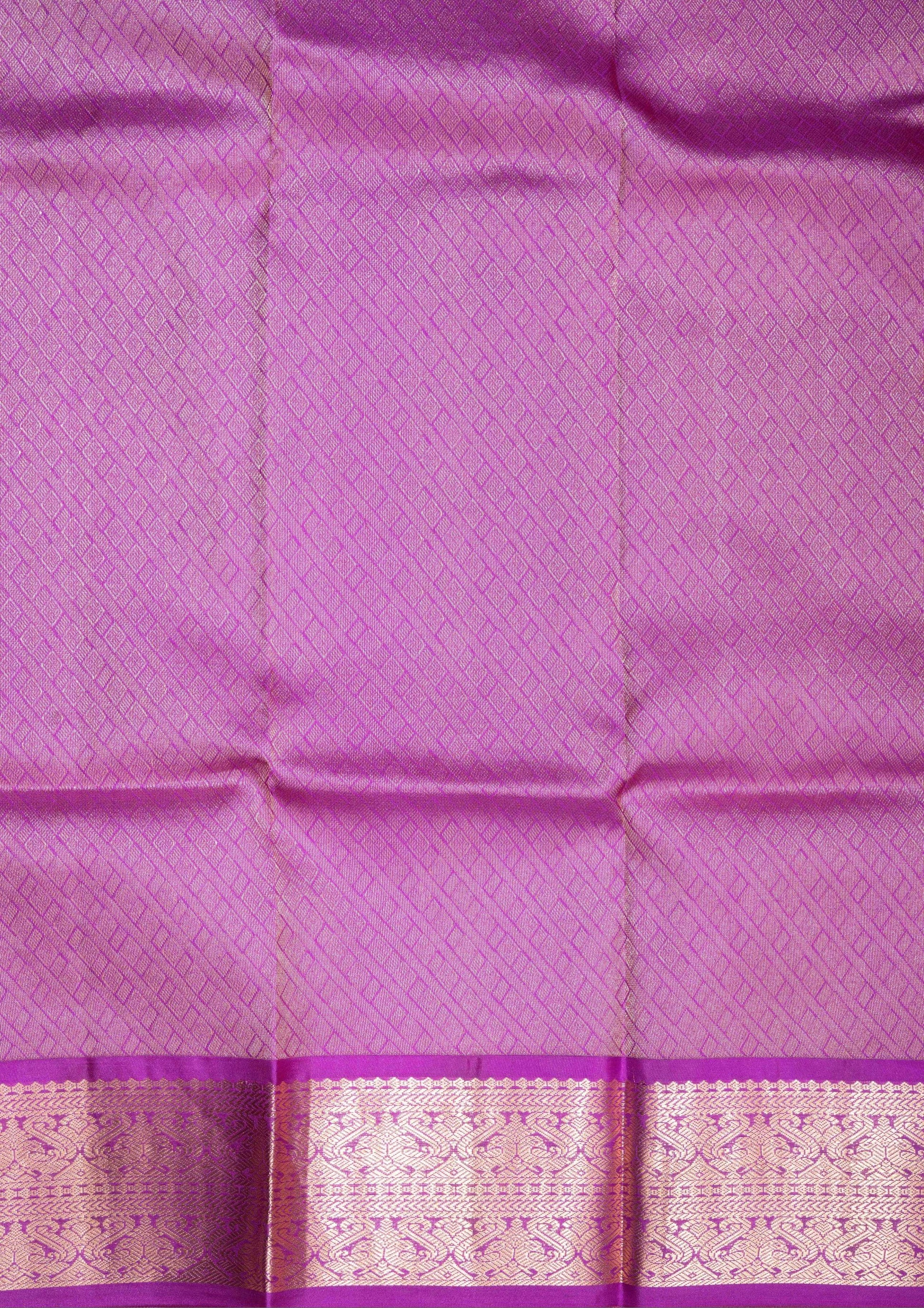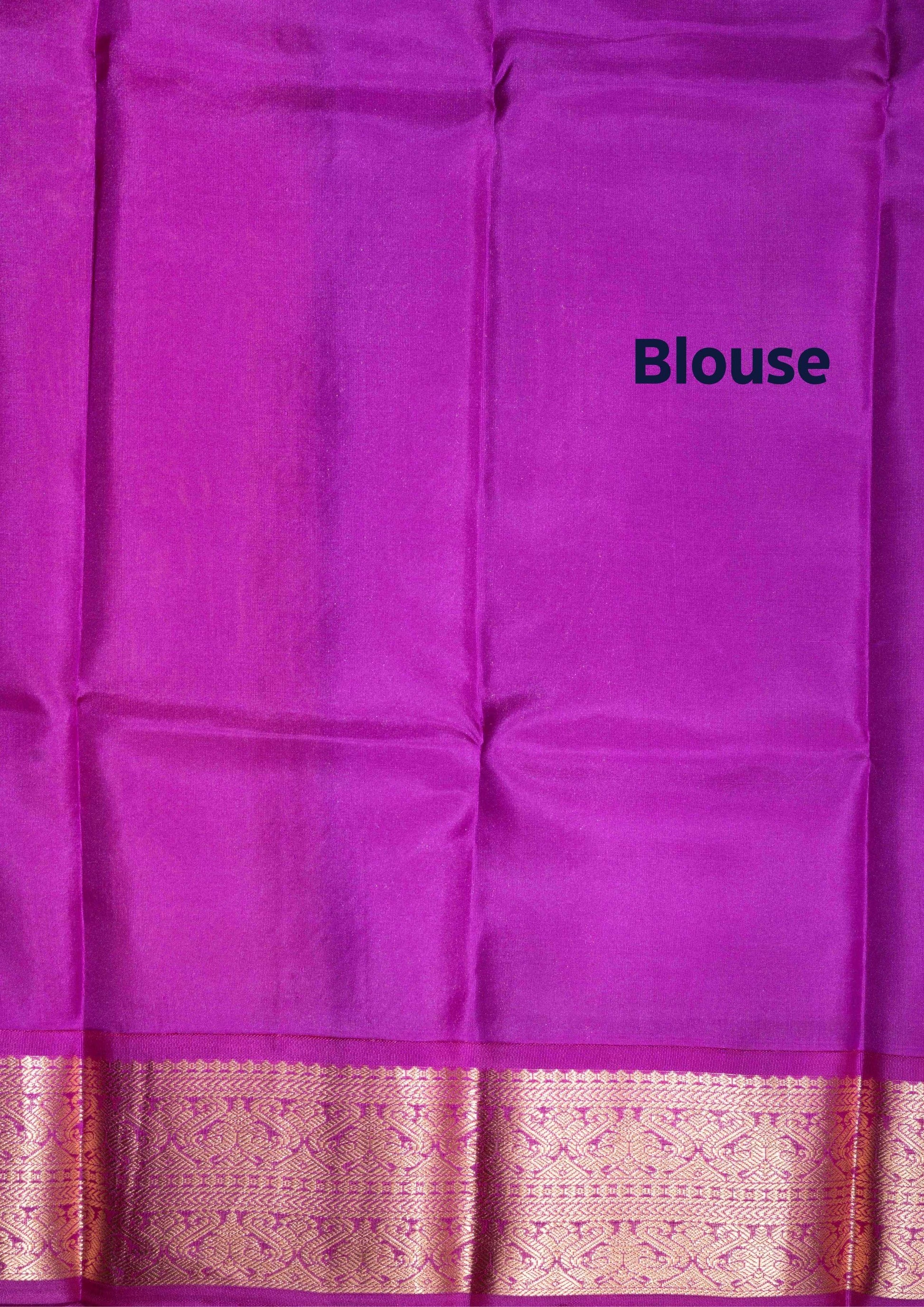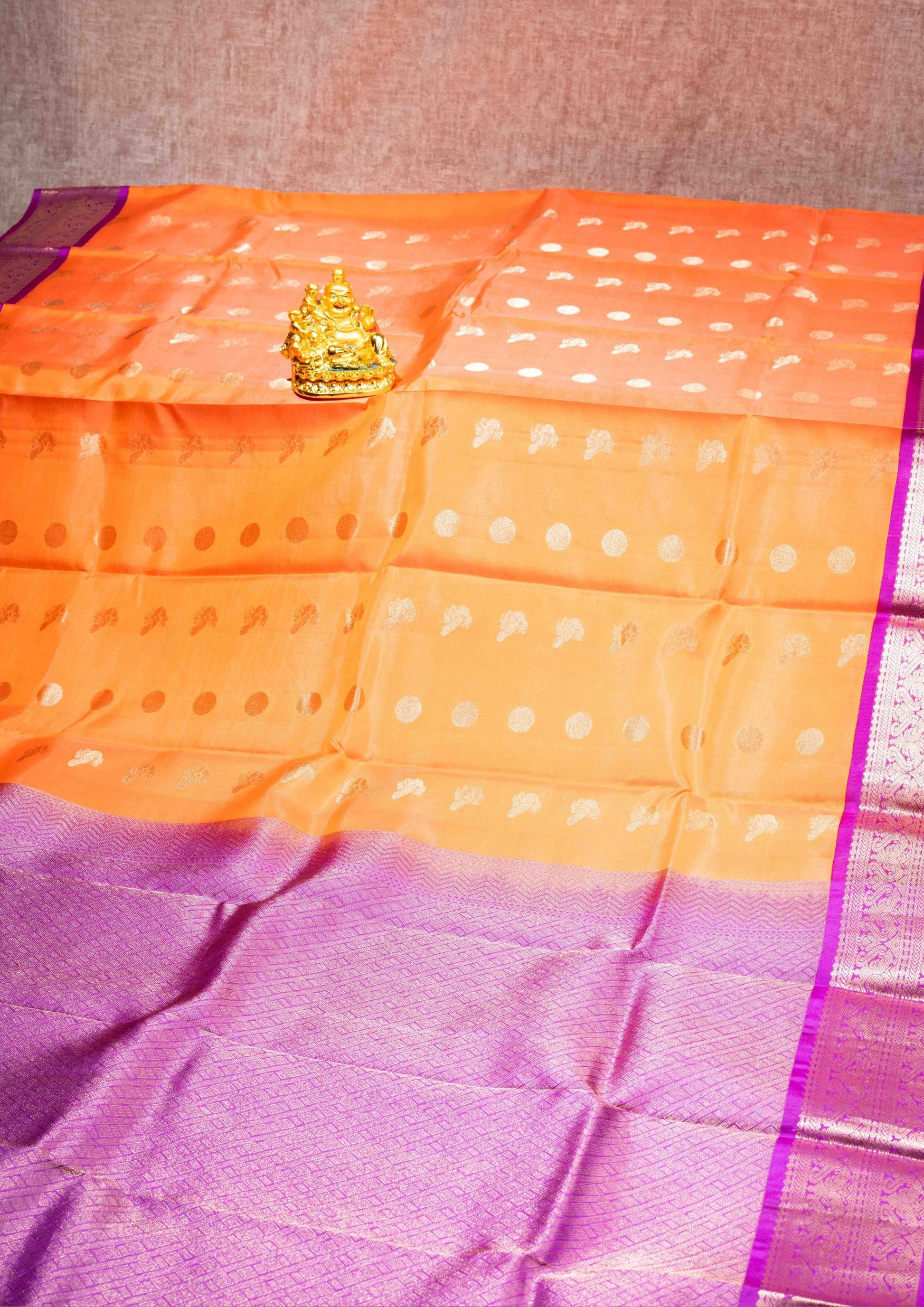 Orange Shade Kanjivaram Pure Silk Saree With Magenta Rose Blouse