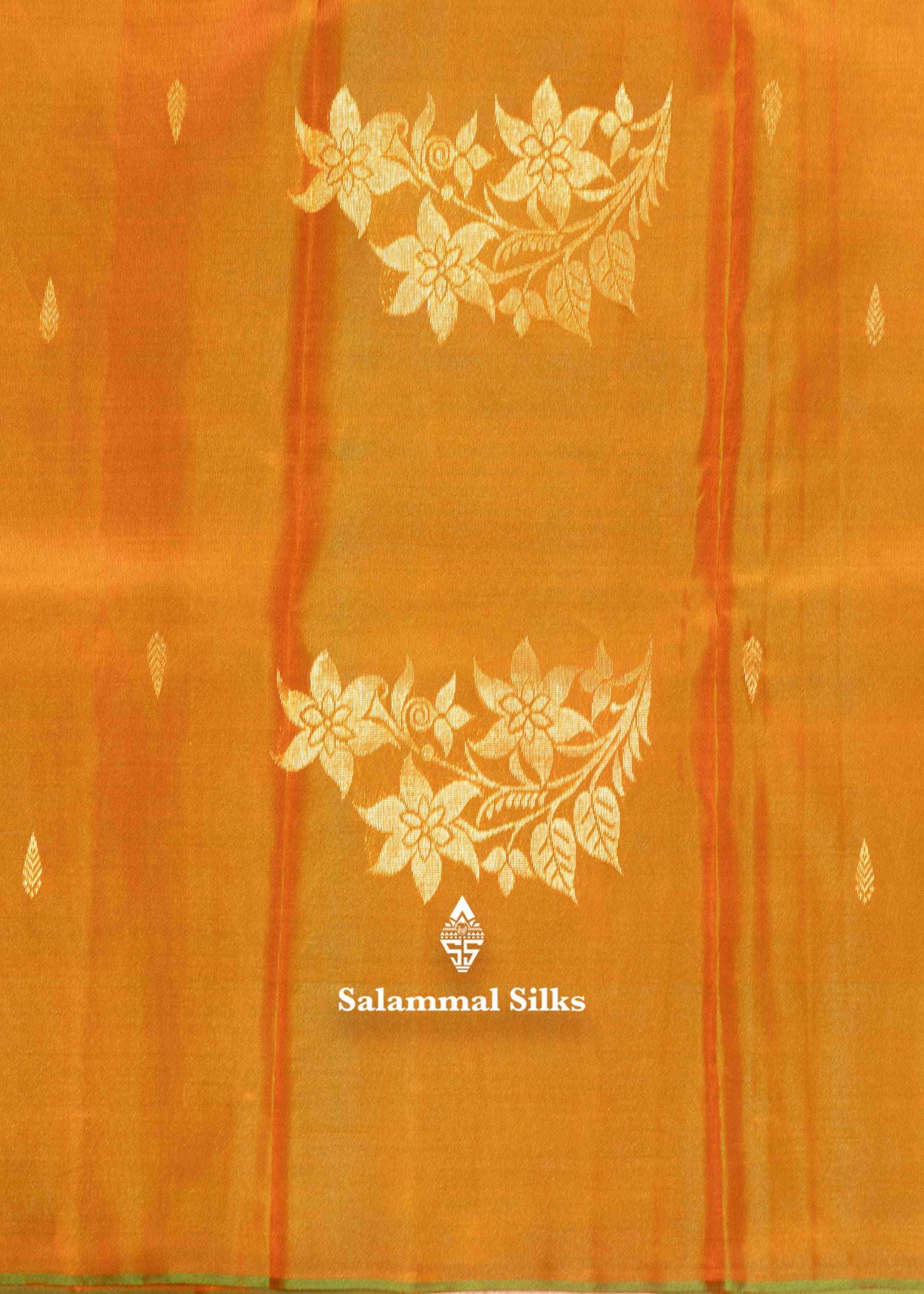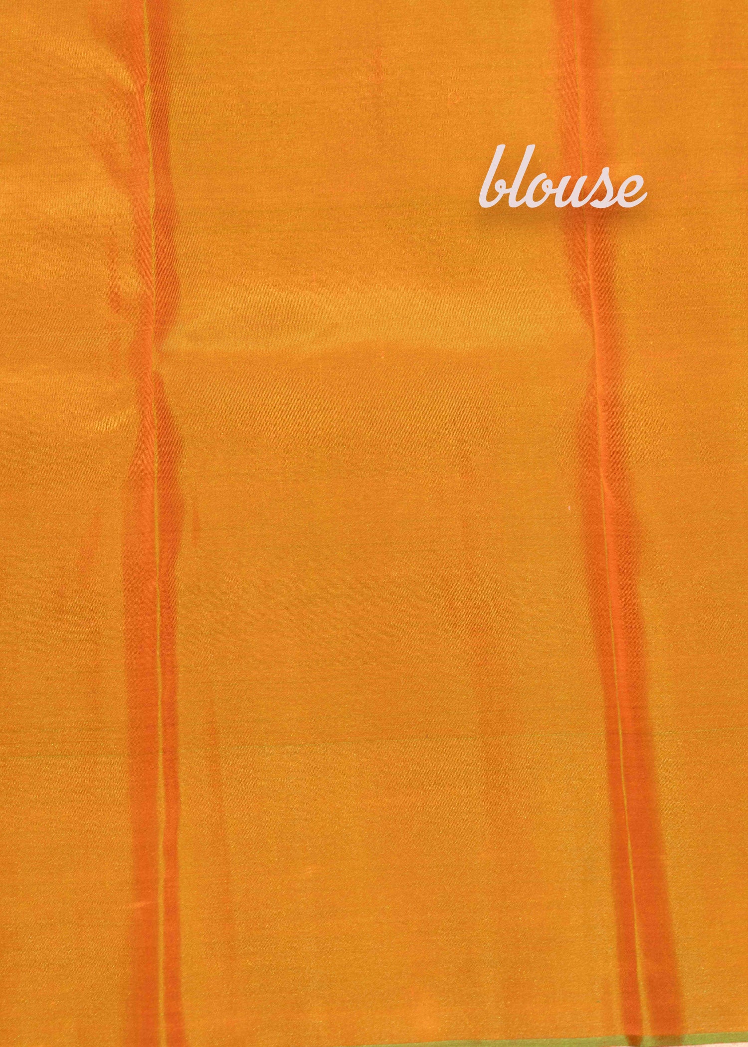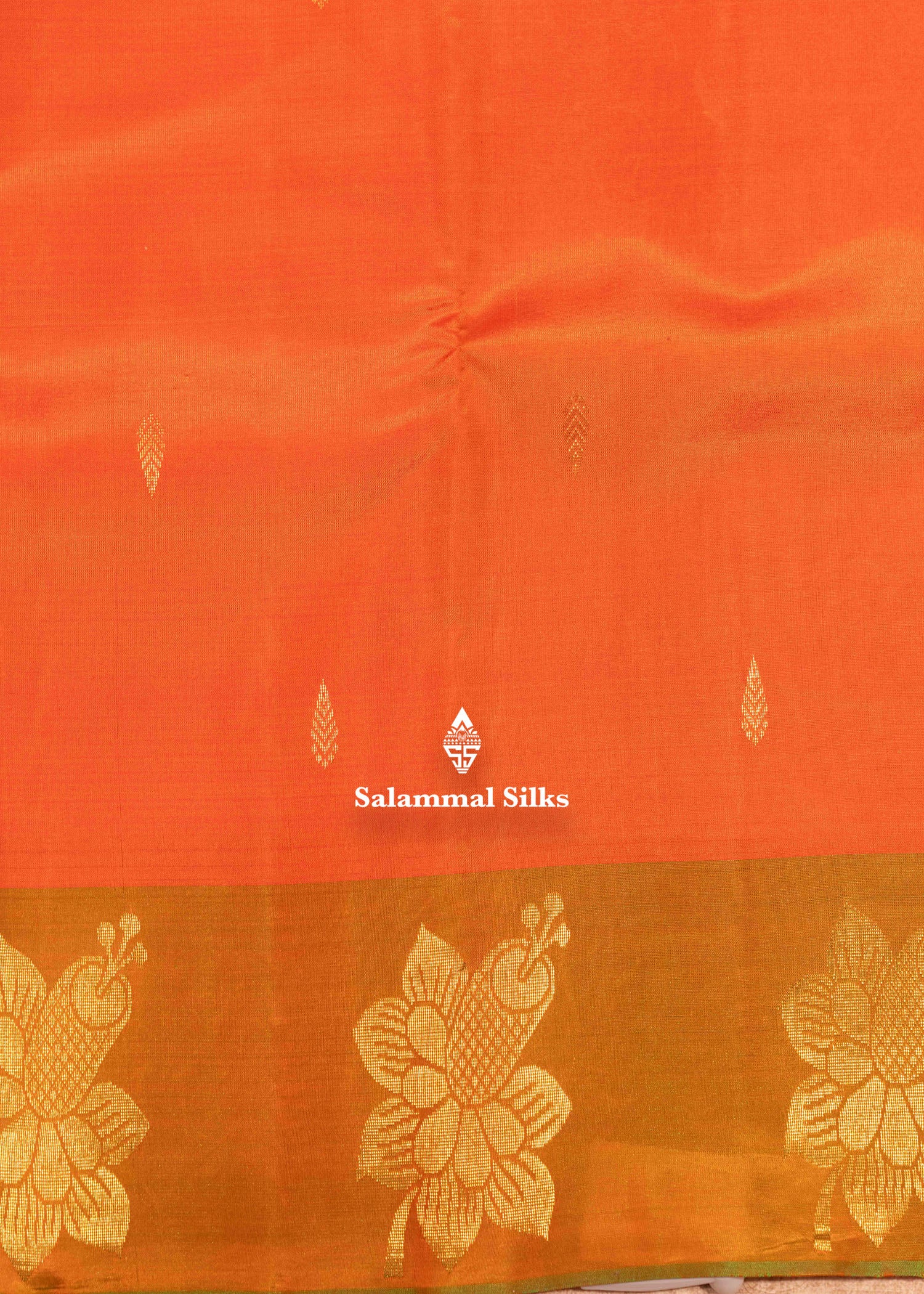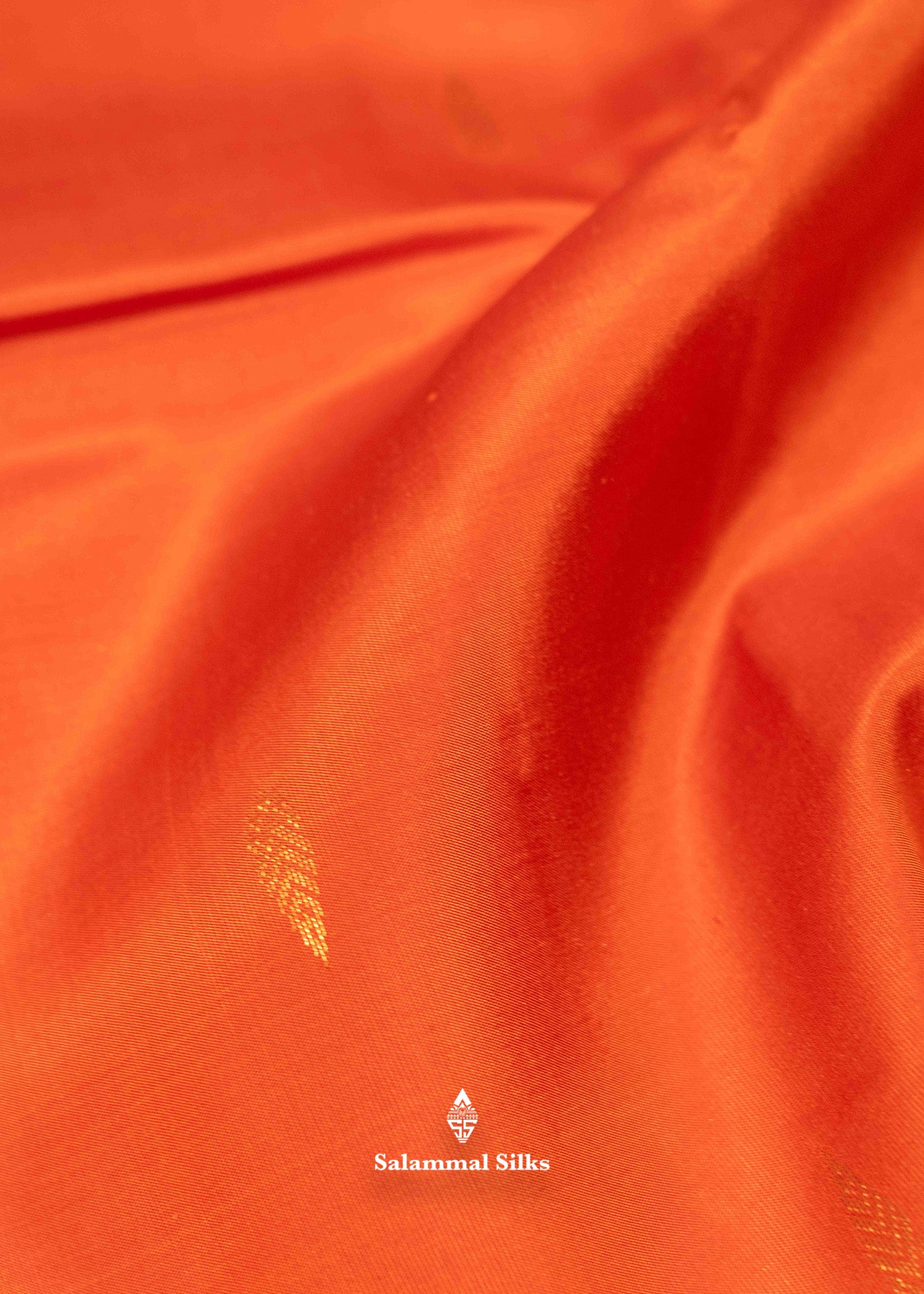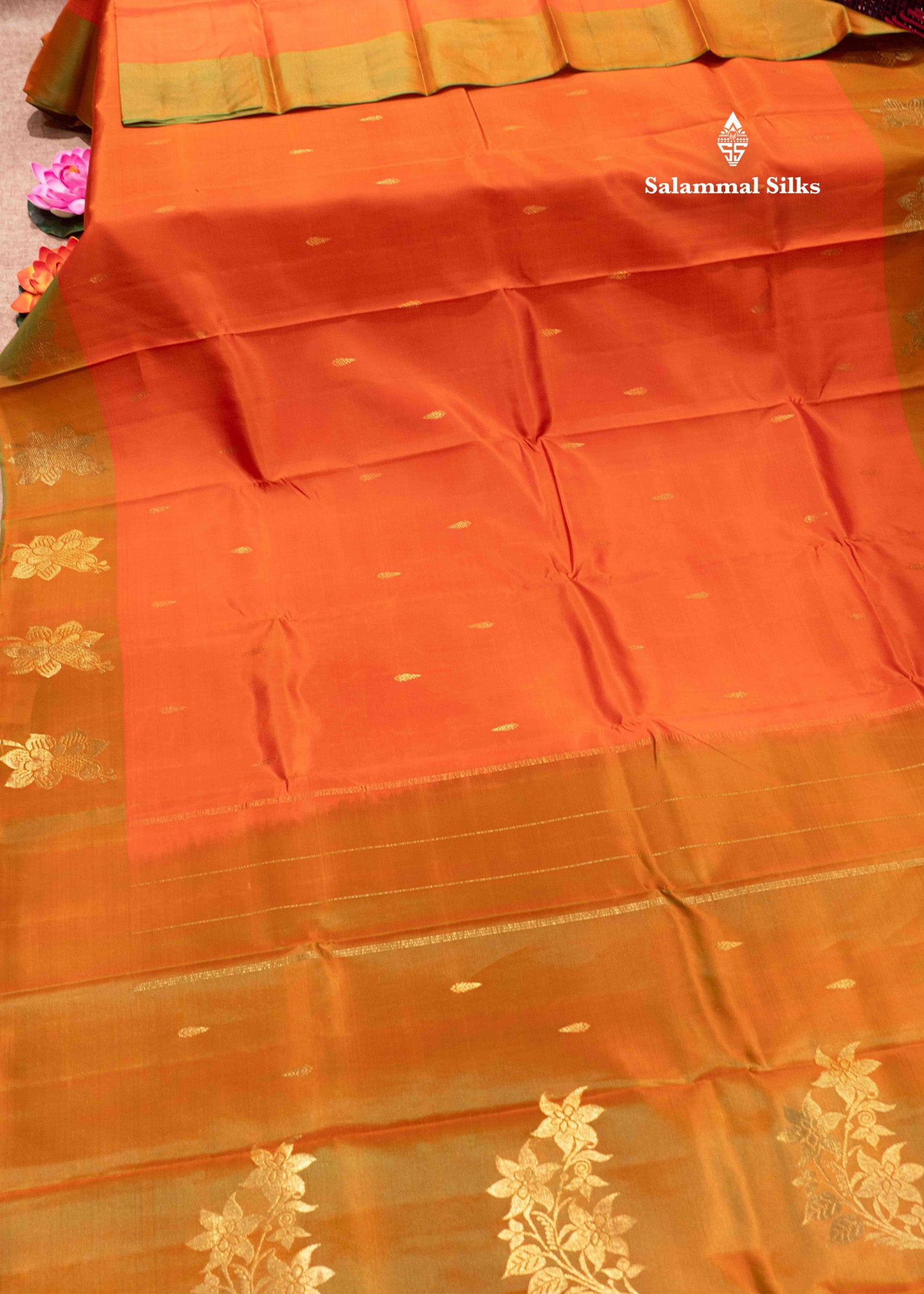 Orange Shade Pure Kanjivaram Silk Saree With Fancy Green Border