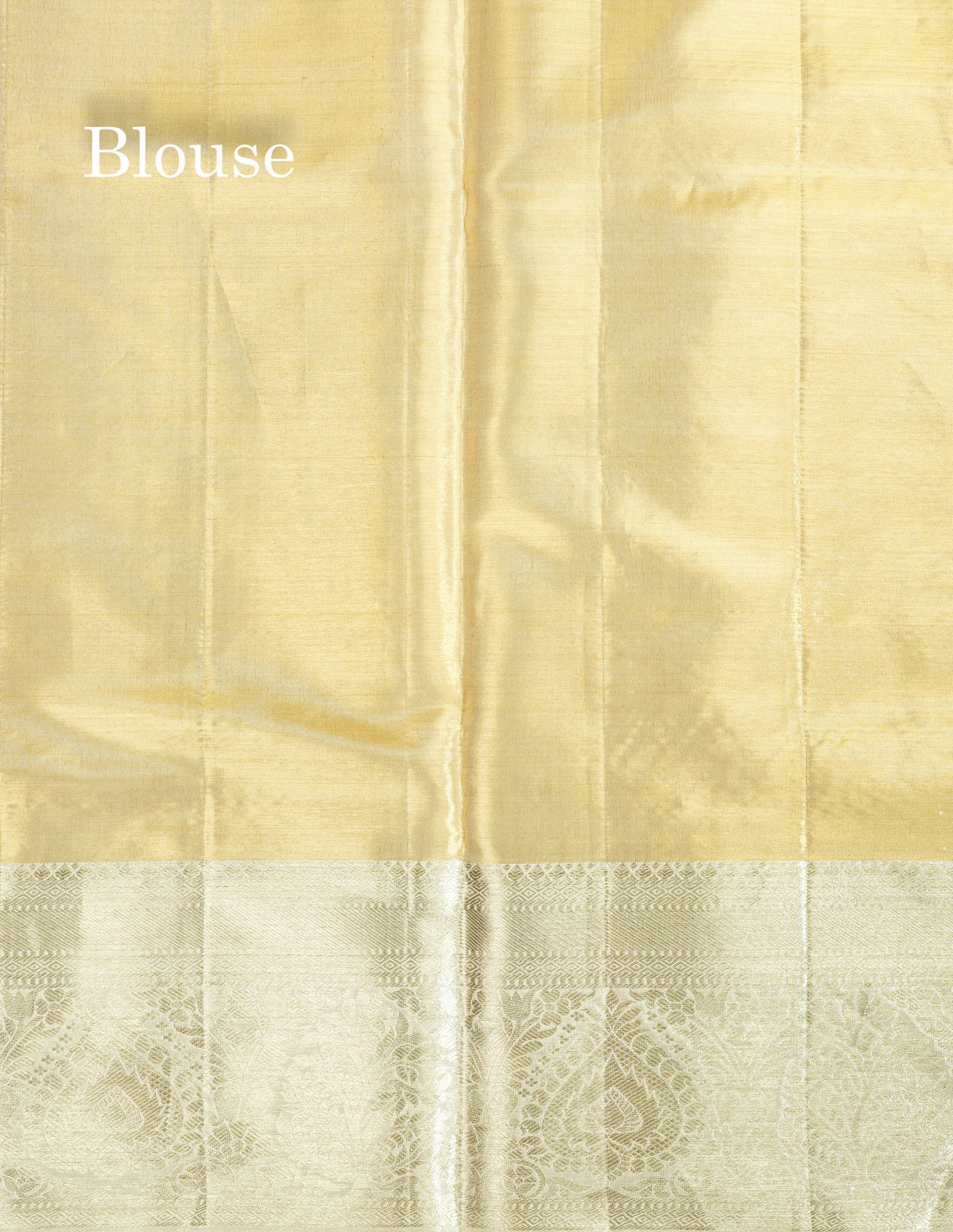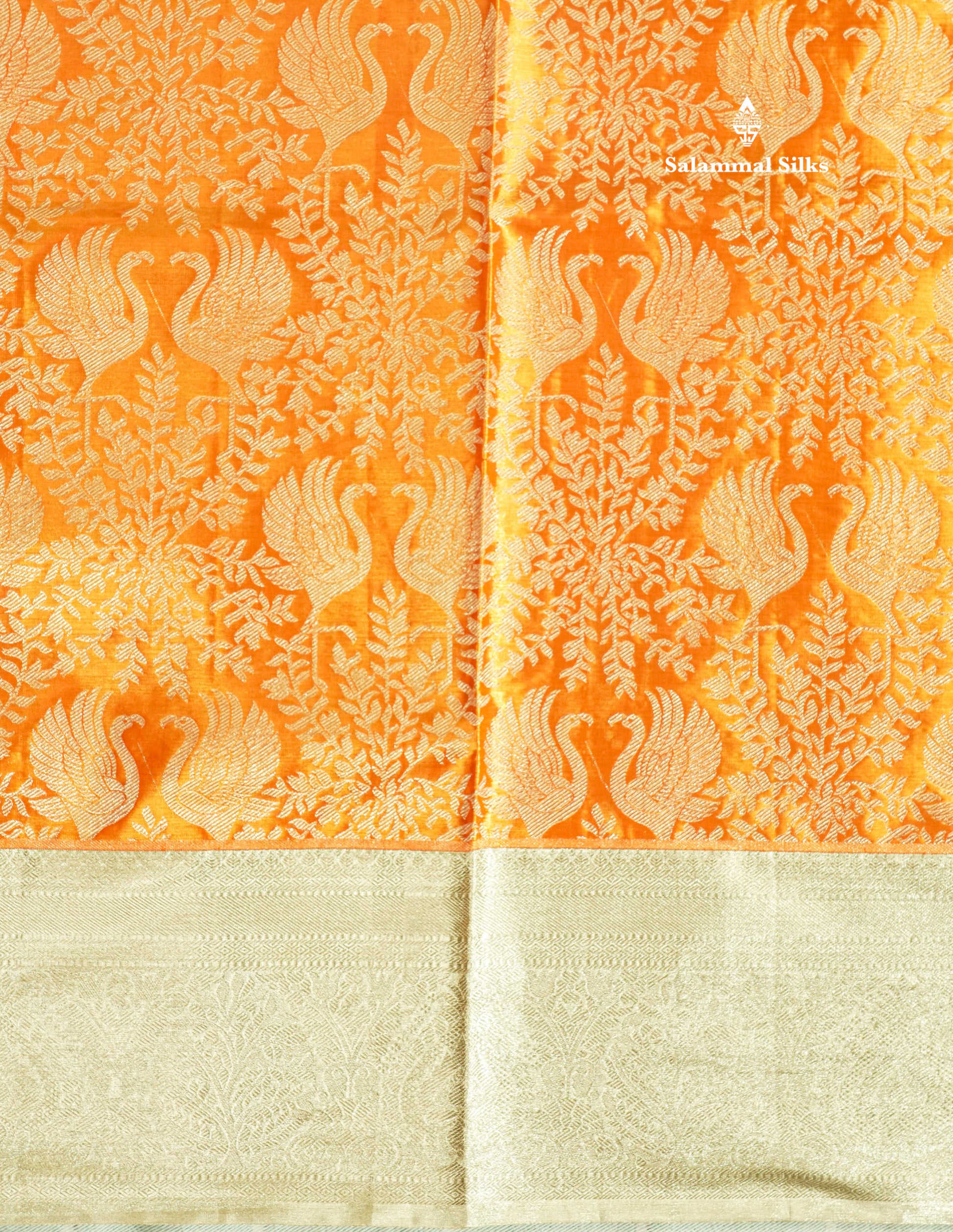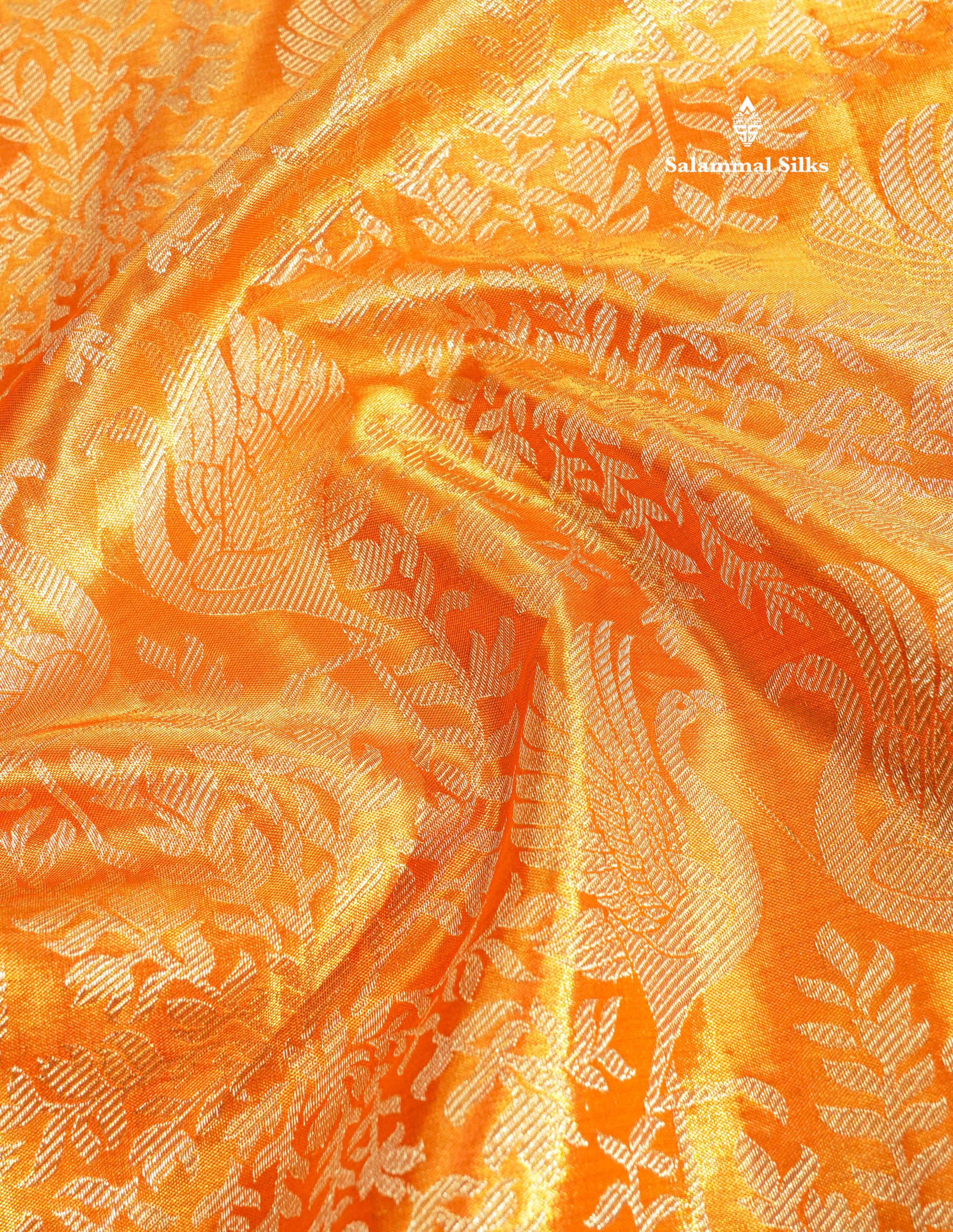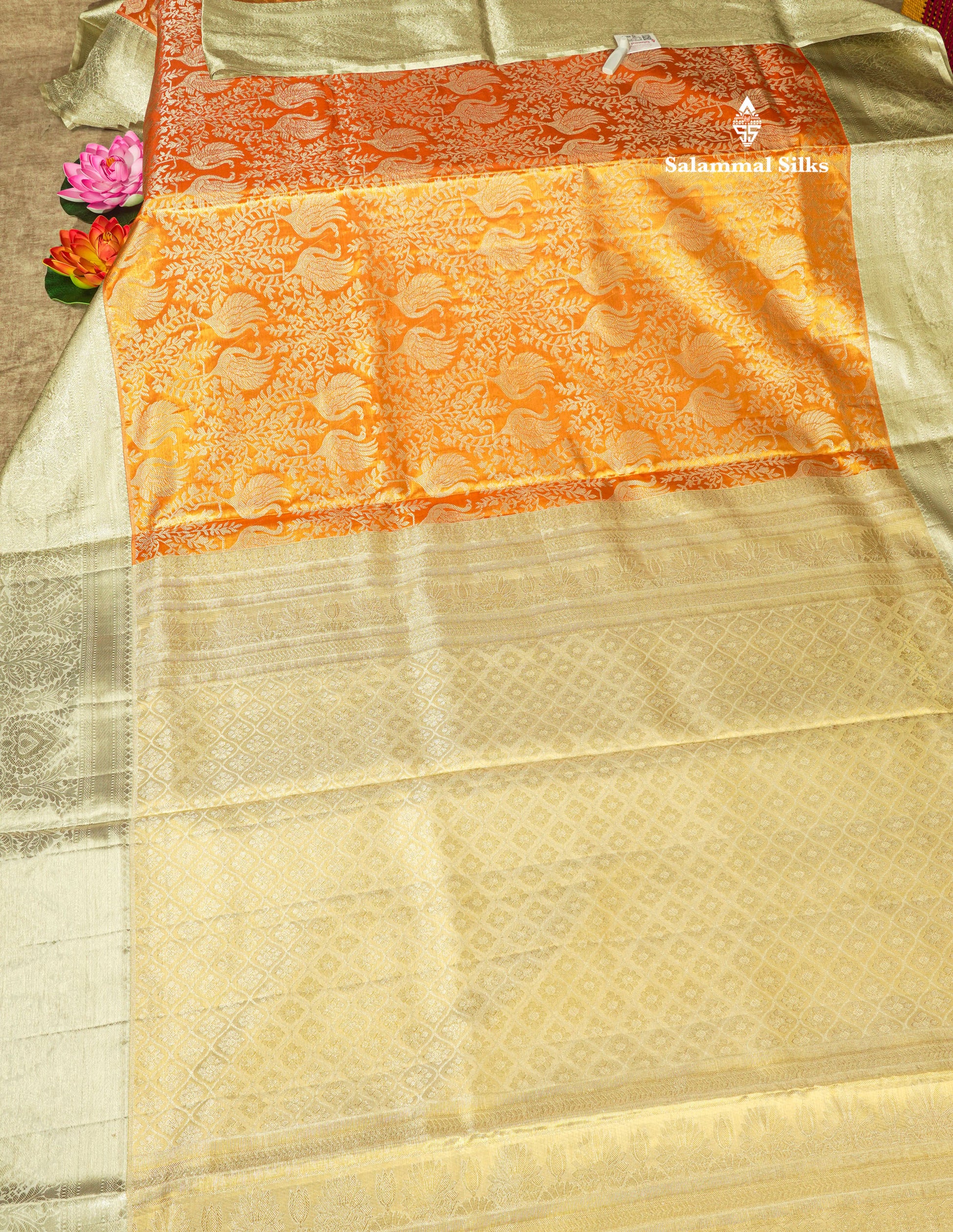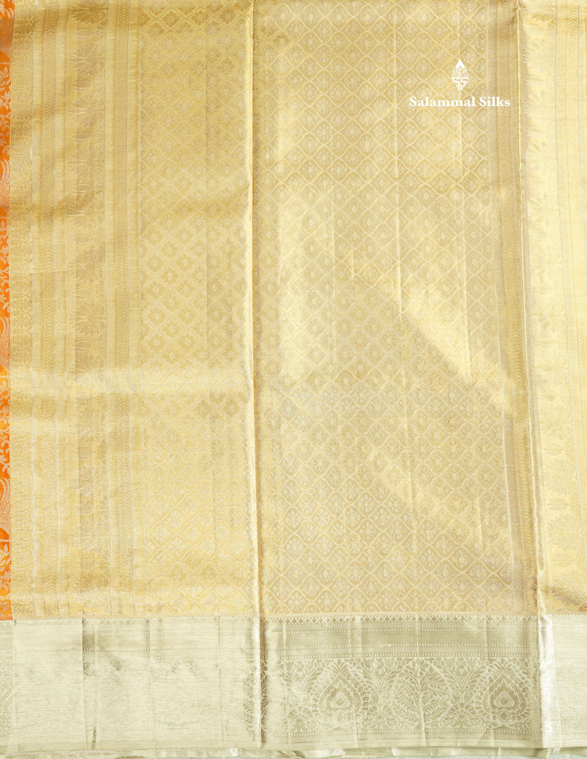 Orange Tissue Bridal Pure Kanjivaram Silk Saree With Contrast Silver Border