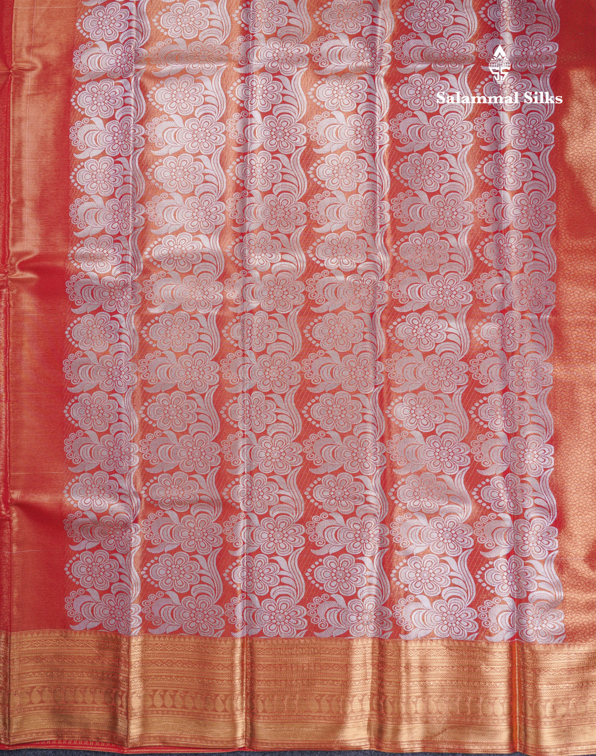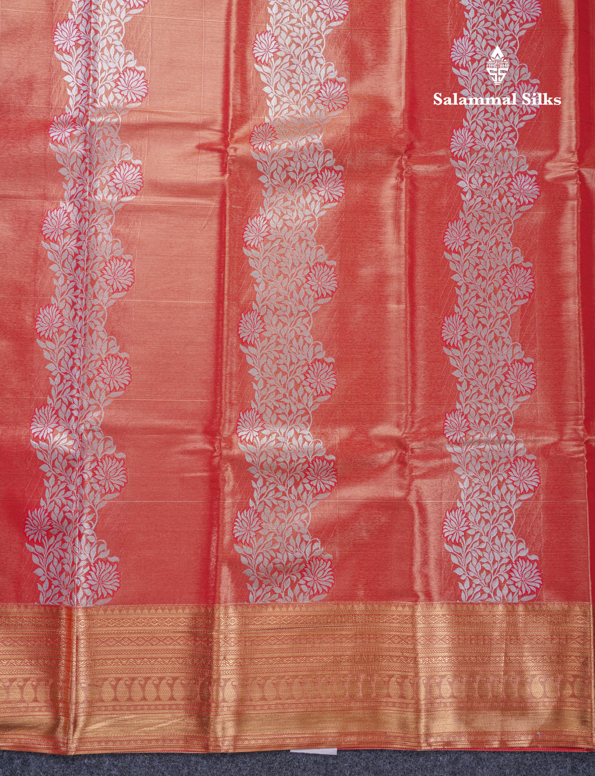 Orange Tissue Bridal Semi Silk Saree With Traditional Border