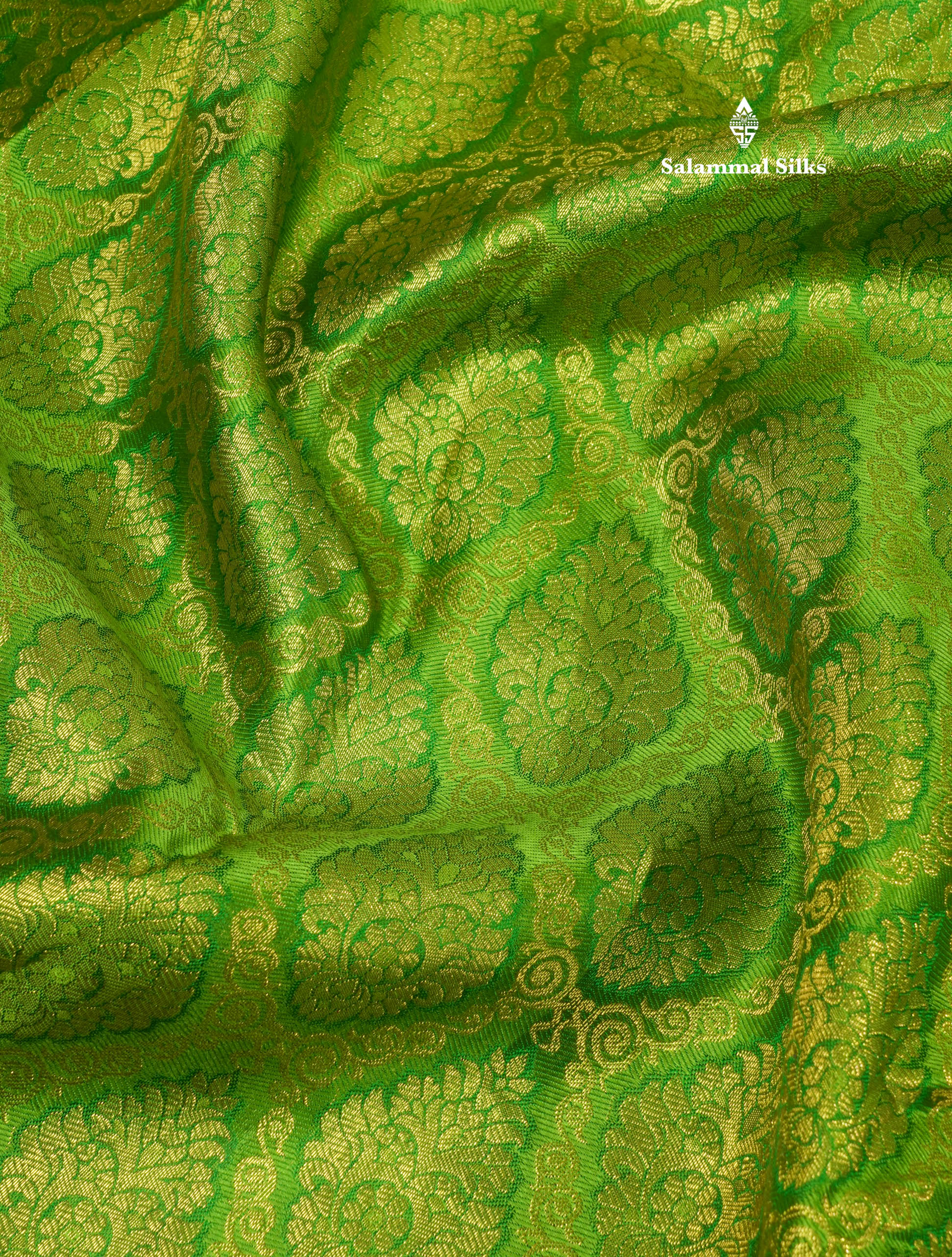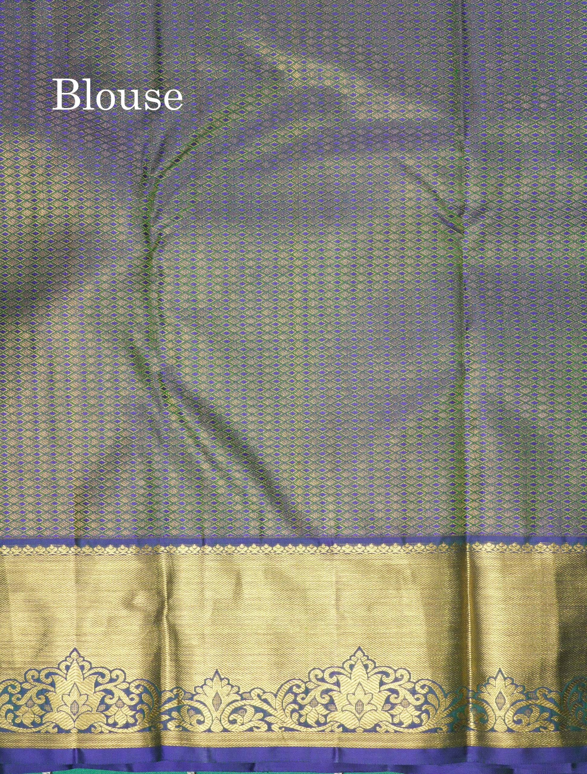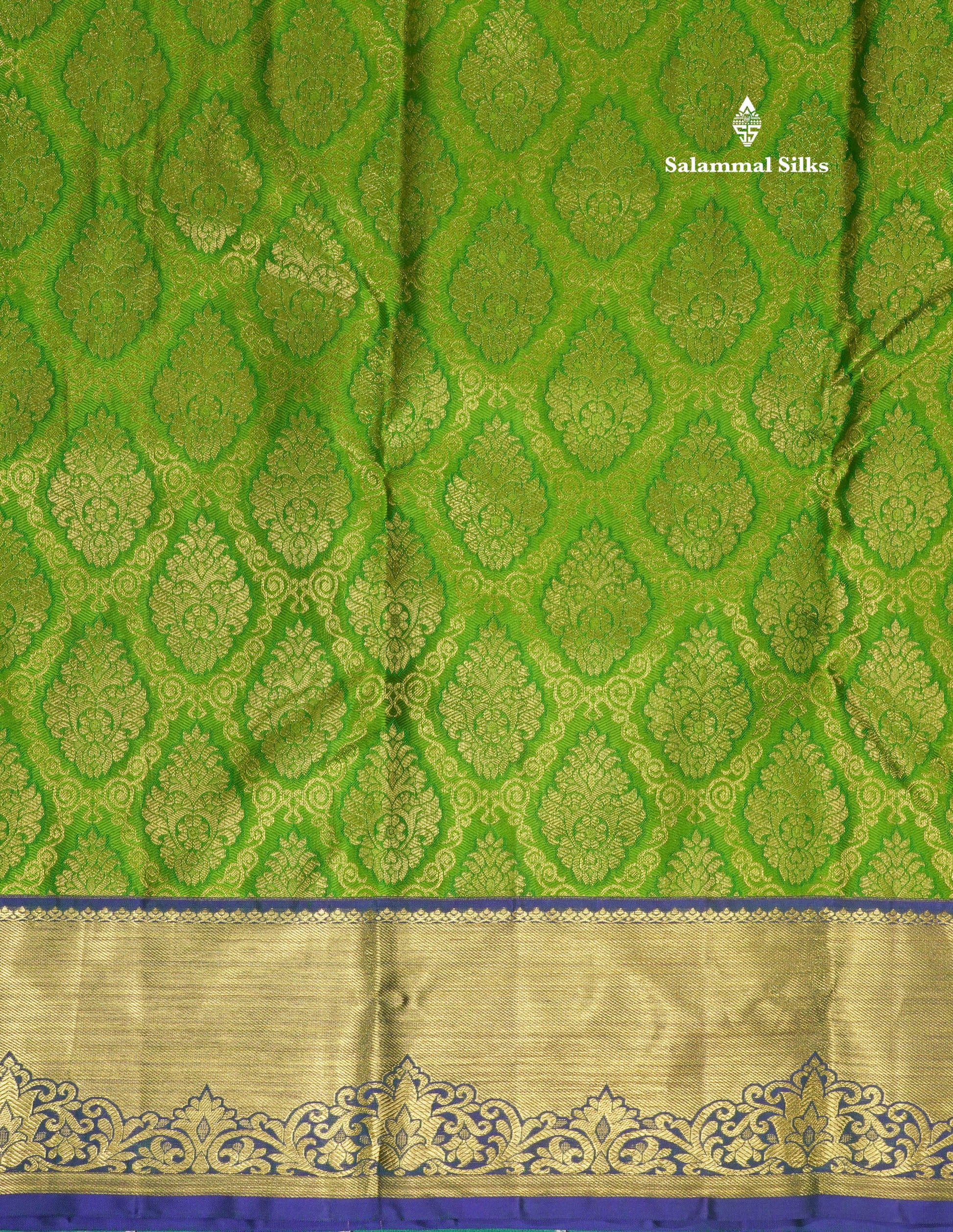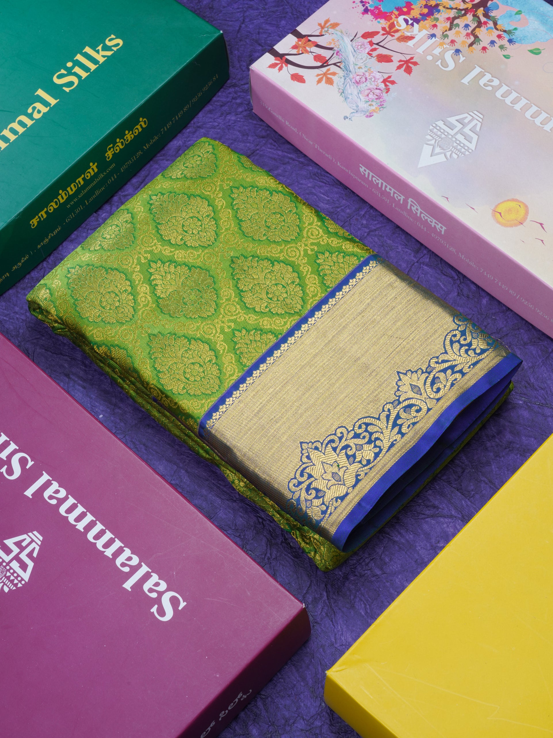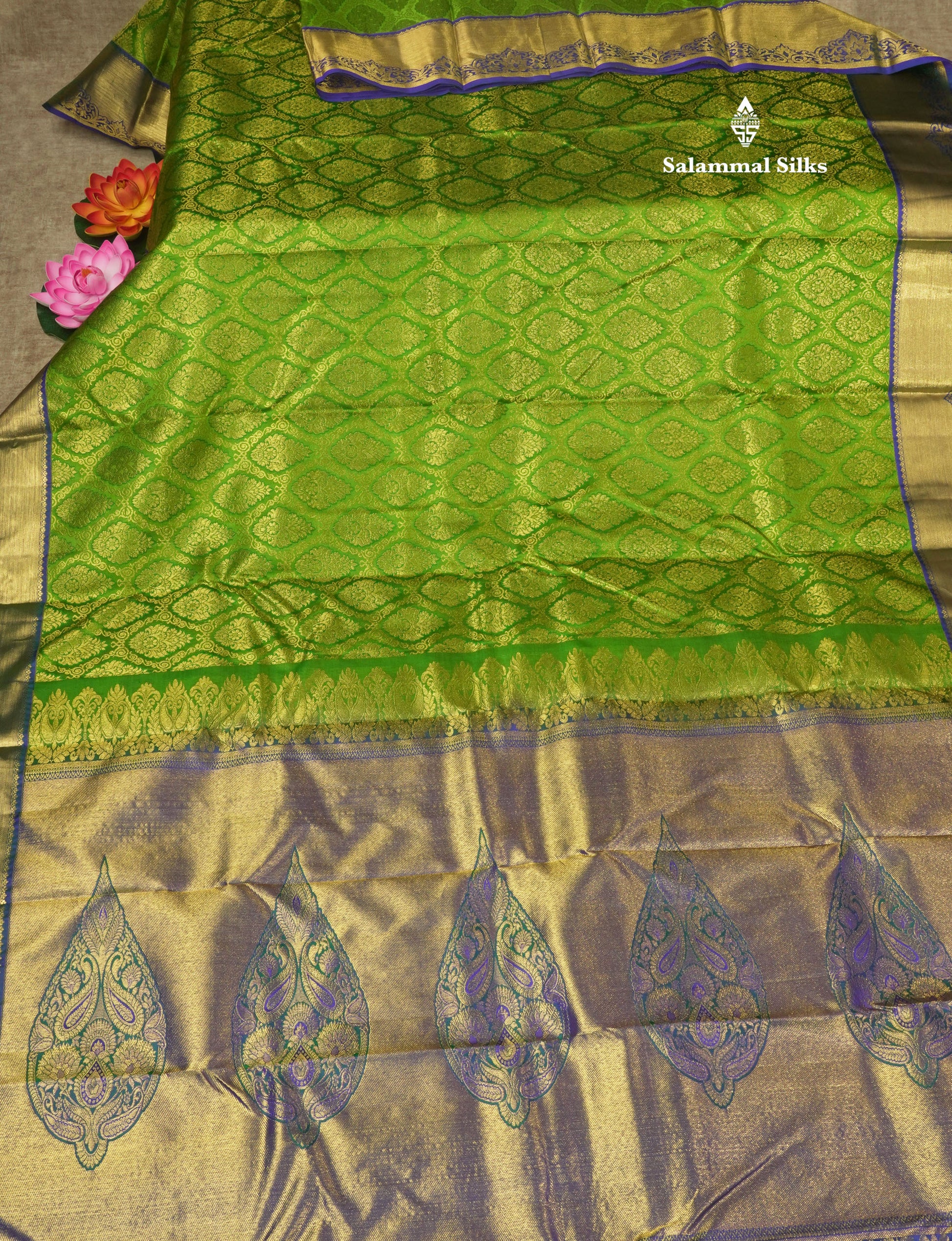 Parrot Green Beautiful Bridal Pure Kanjivaram Silk Saree With Contrast Royal Blue Border