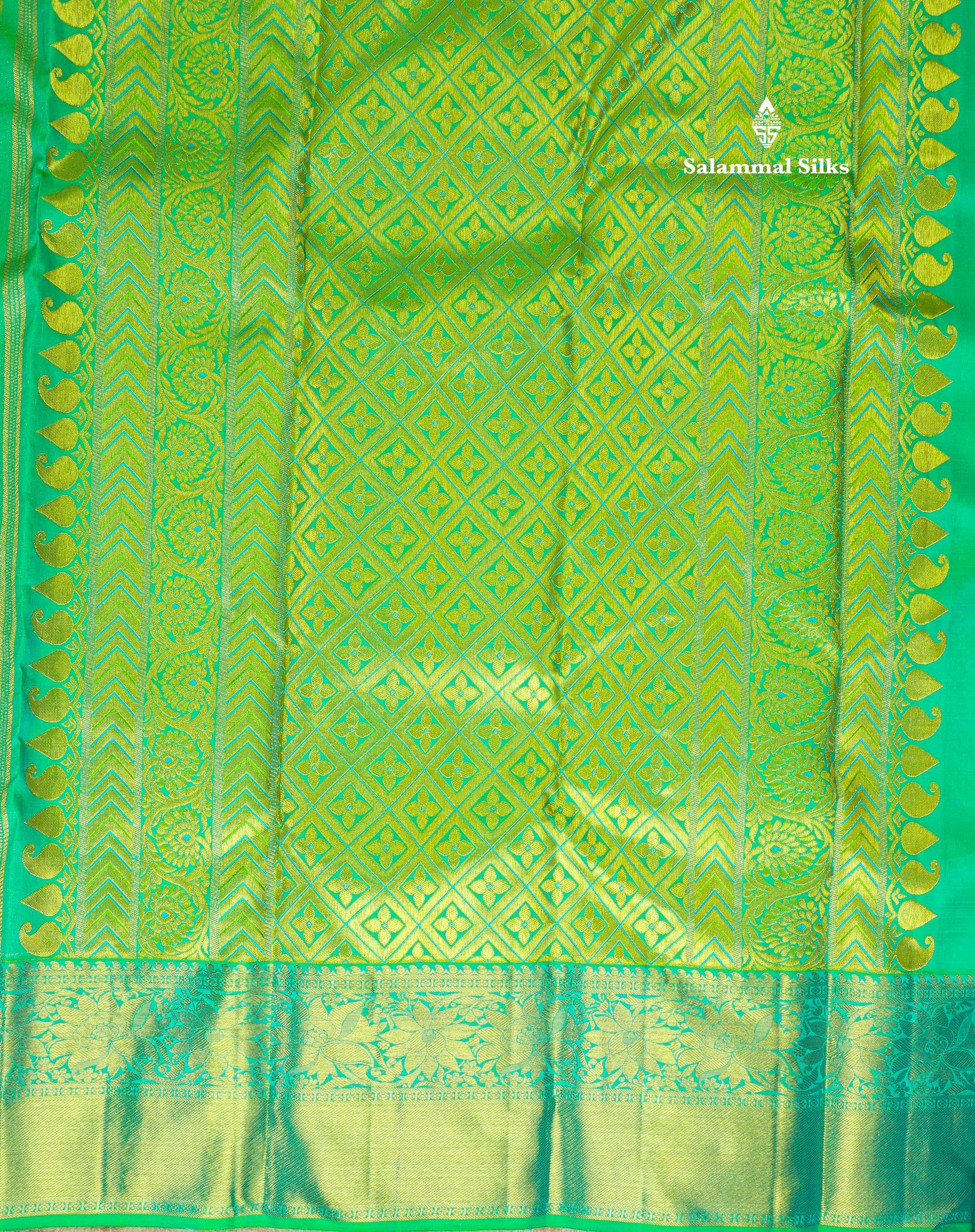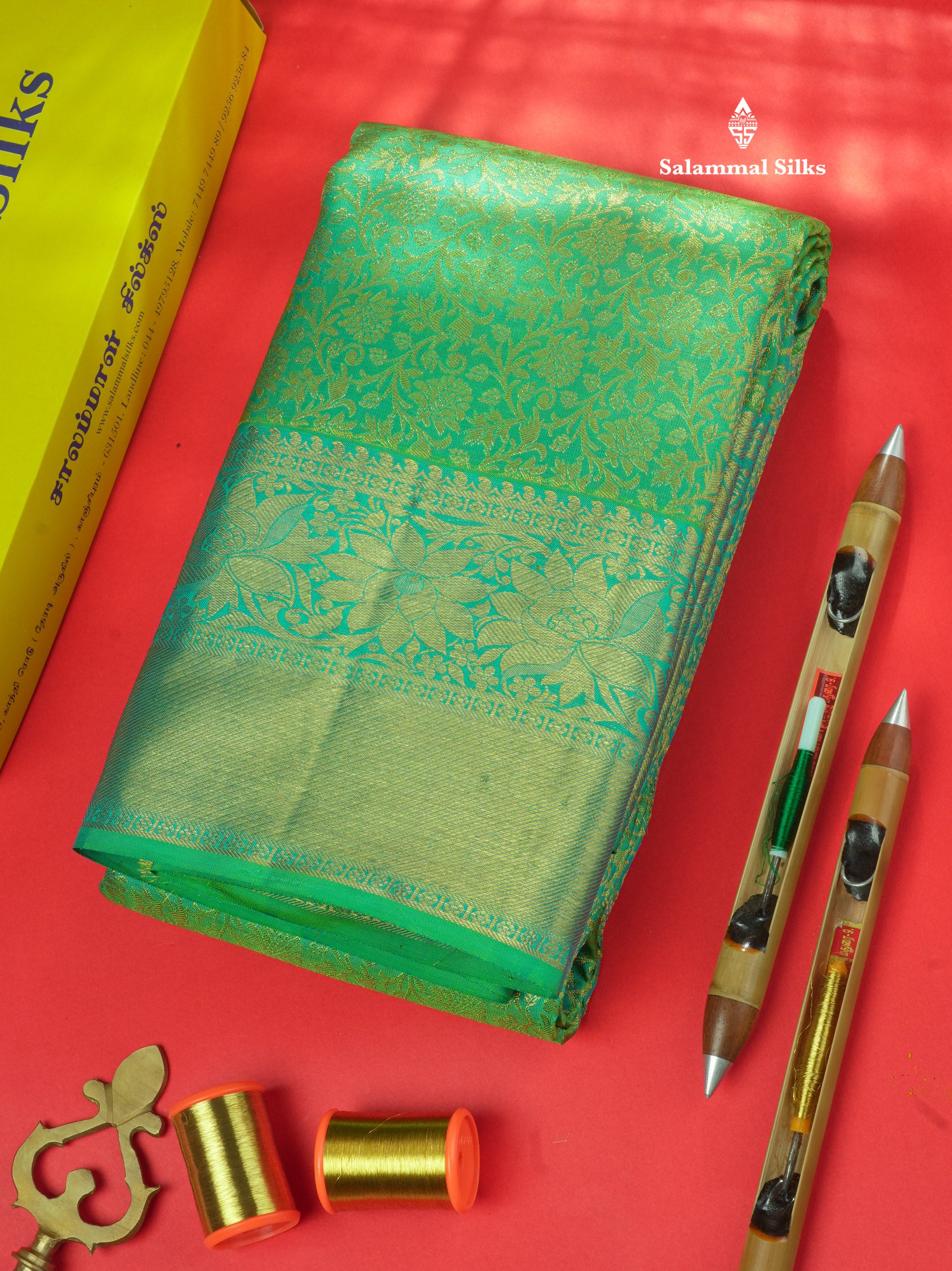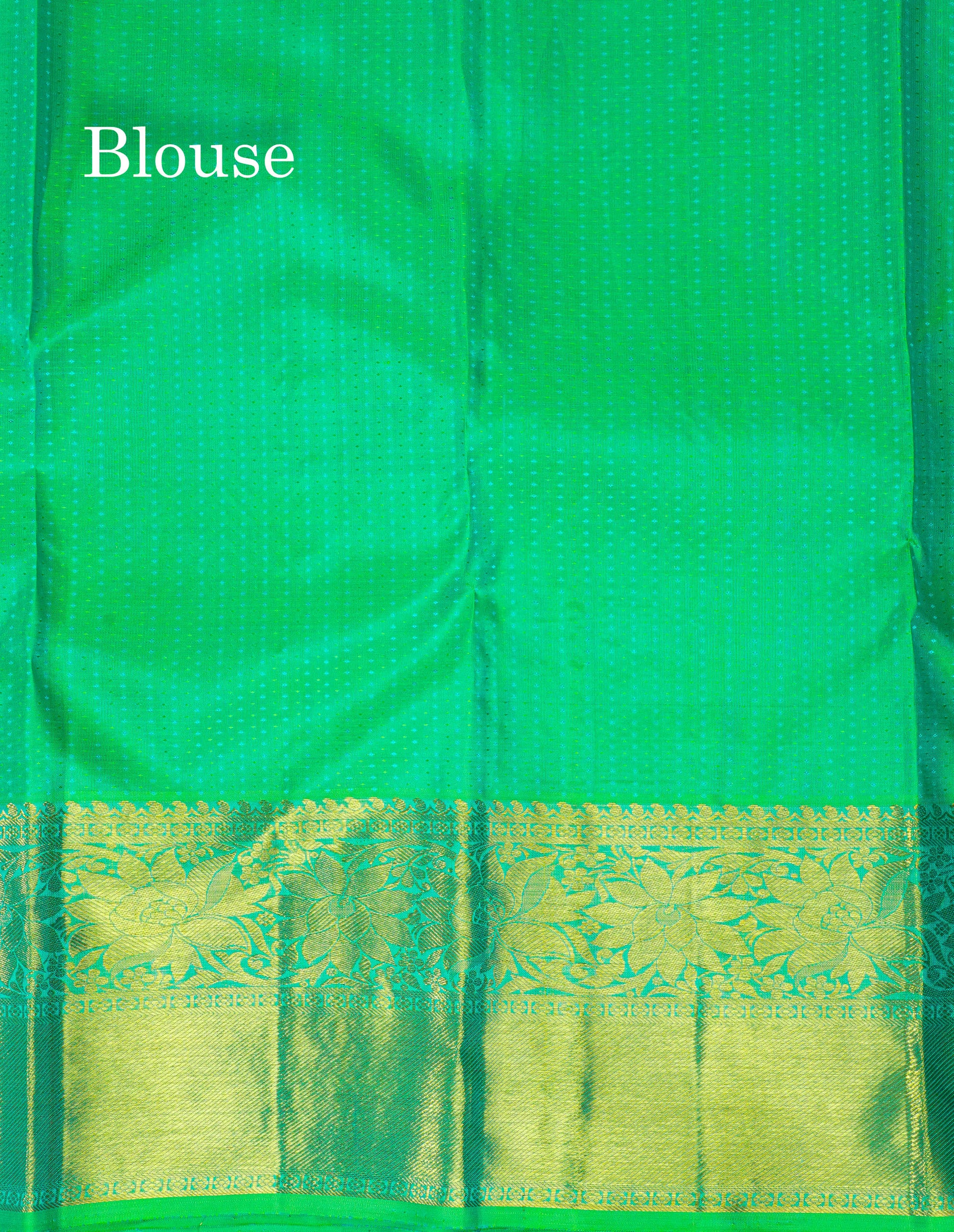 Parrot Green Pure Kanjivaram 2G Zari Silk Saree With Contrast Rexona Green Border