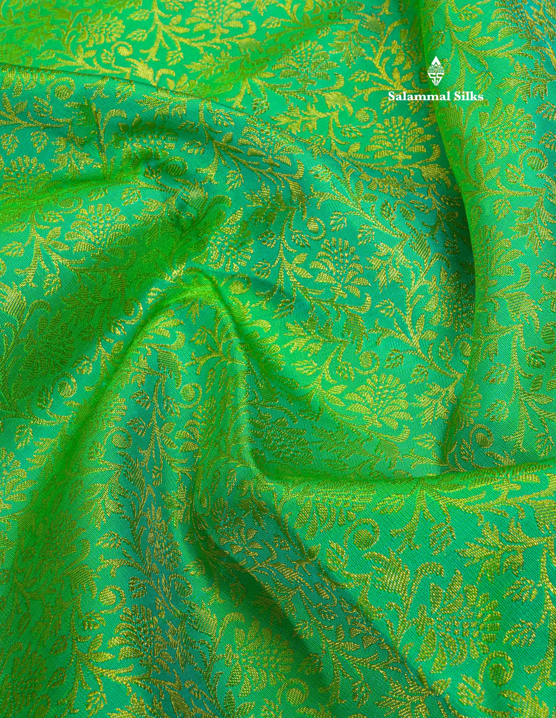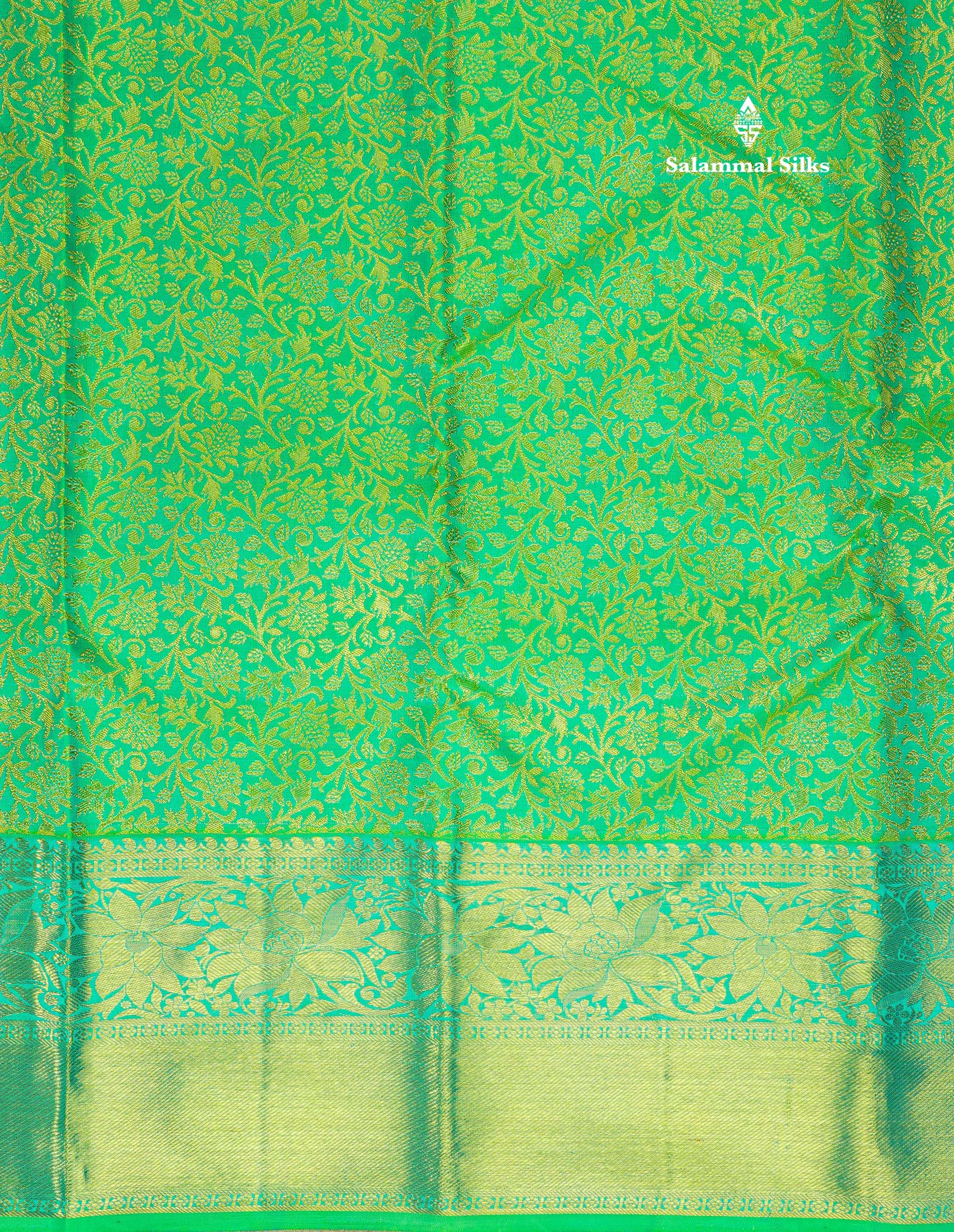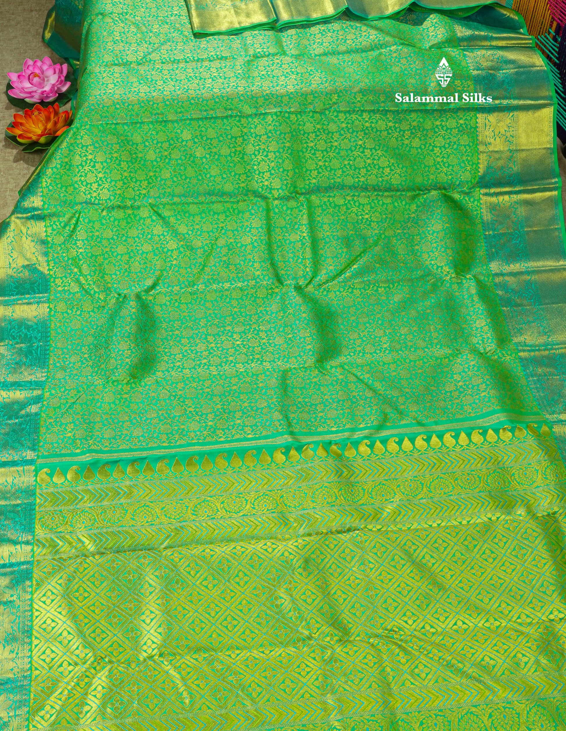 Parrot Green Pure Kanjivaram 2G Zari Silk Saree With Contrast Rexona Green Border
